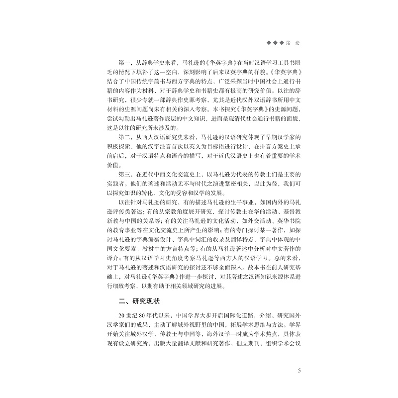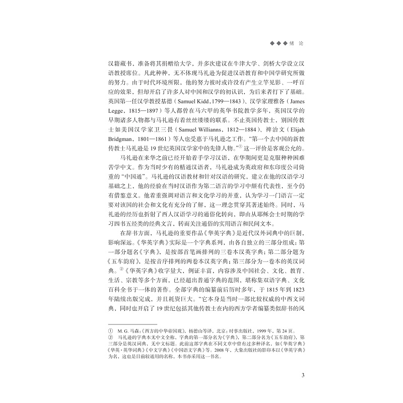 本书以马礼逊的《华英字典》为中心,考察字典宏观和微观的结构内容、编纂特点,字典音注和释义的底层,中西编者对中文参考文献的选择与利用,探析编纂者与字典文本映现的文化图景,清代小学类书籍的使用情况,以及19世纪初中西接触中汉语知识的转化和文化的交融。经由对马礼逊所用的中文文献之梳理,可了解《华英字典》释义渊源、汉语知识构建的脉络与倾向,尝试揭示马礼逊博大开明的视野、于中国本土文献上的勤勉努力,以及对西方学界摒除有关中国知识和传统学术的固有偏见所具有的意义。