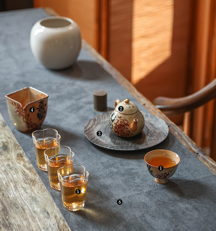 茶香记 红志野书法手绘见喜高足鸡心杯60ml景德镇陶瓷茶杯主人杯