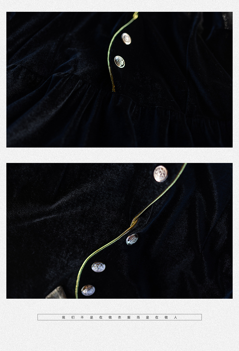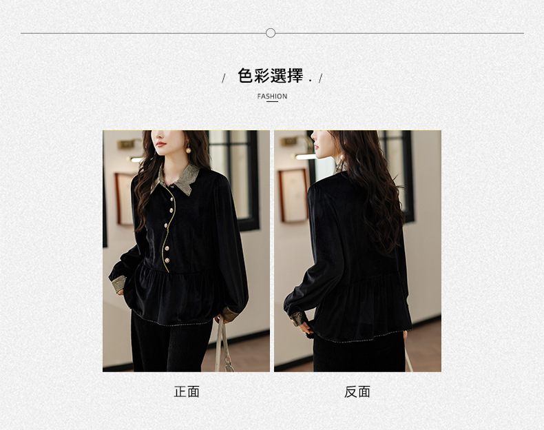 AHM msdm2801时尚优雅丝绒拼接纽扣小衫翻领上衣 商品图4