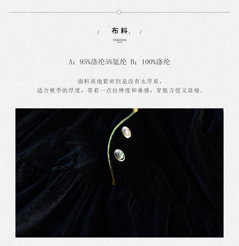 AHM msdm2801时尚优雅丝绒拼接纽扣小衫翻领上衣 商品图2