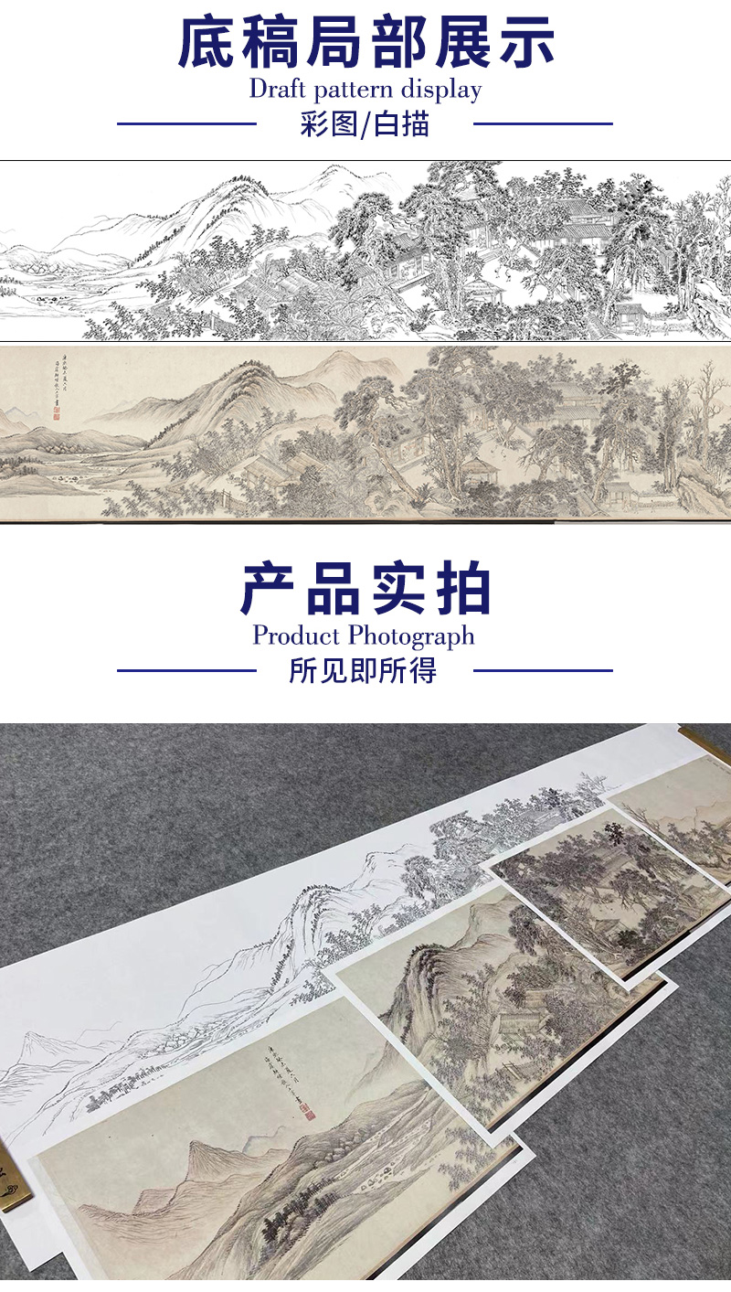 【长卷】工笔山水画白描底稿古画长卷王翚《松乔堂图》多种白描尺寸可选G036
