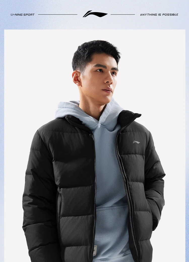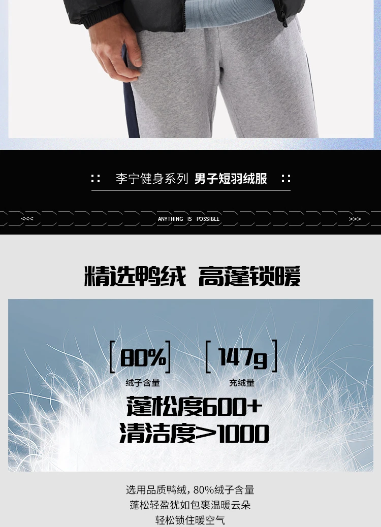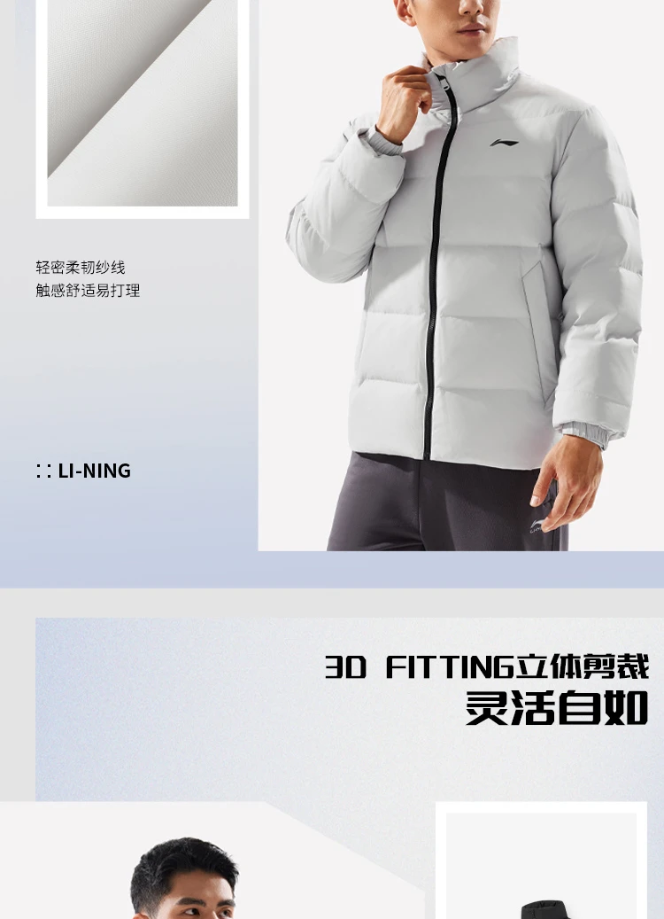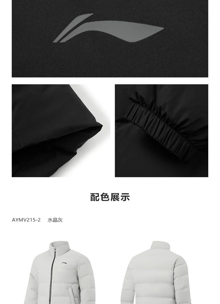 李宁男子防泼水立体裁剪鸭绒短羽绒服AYMV215