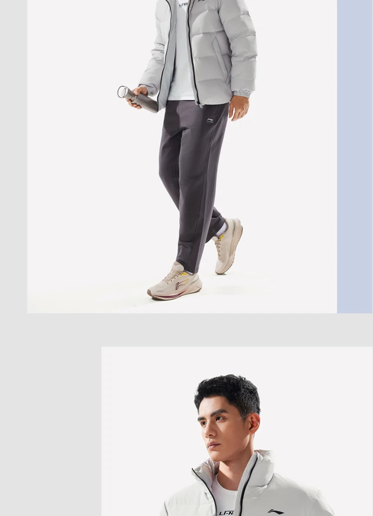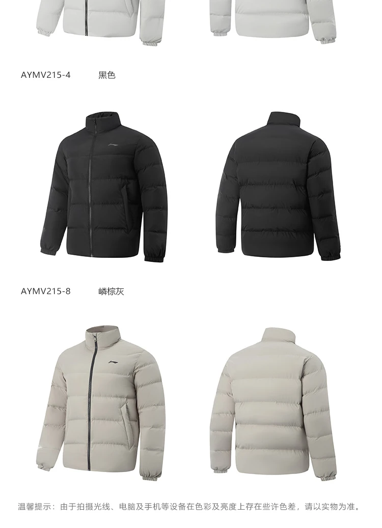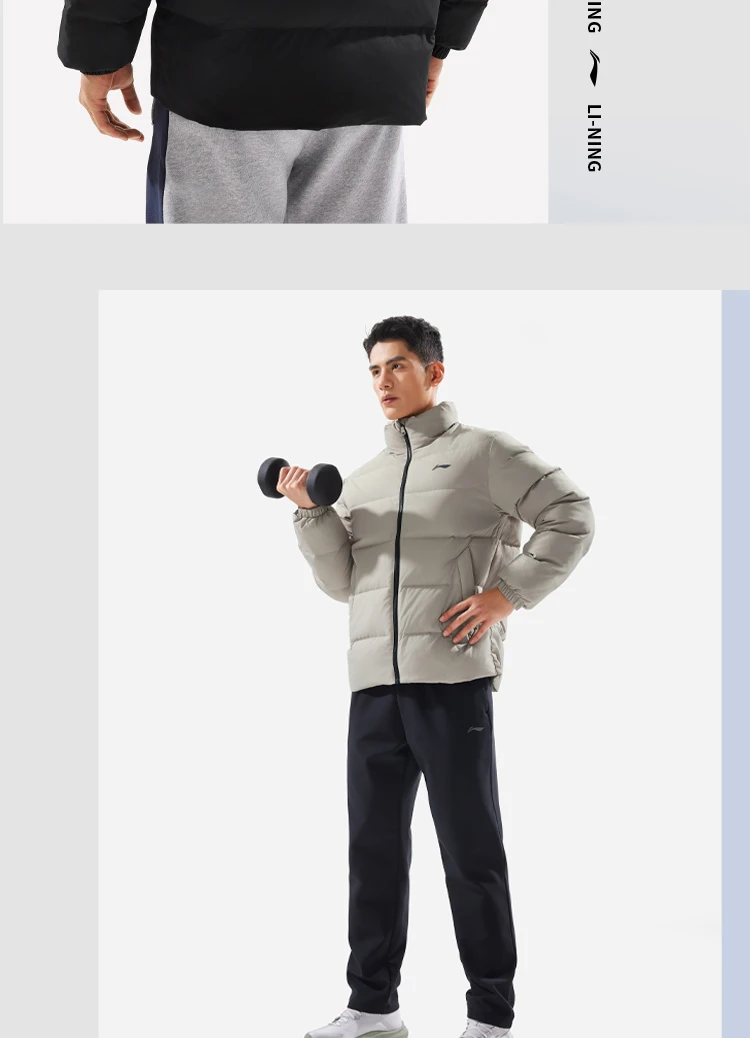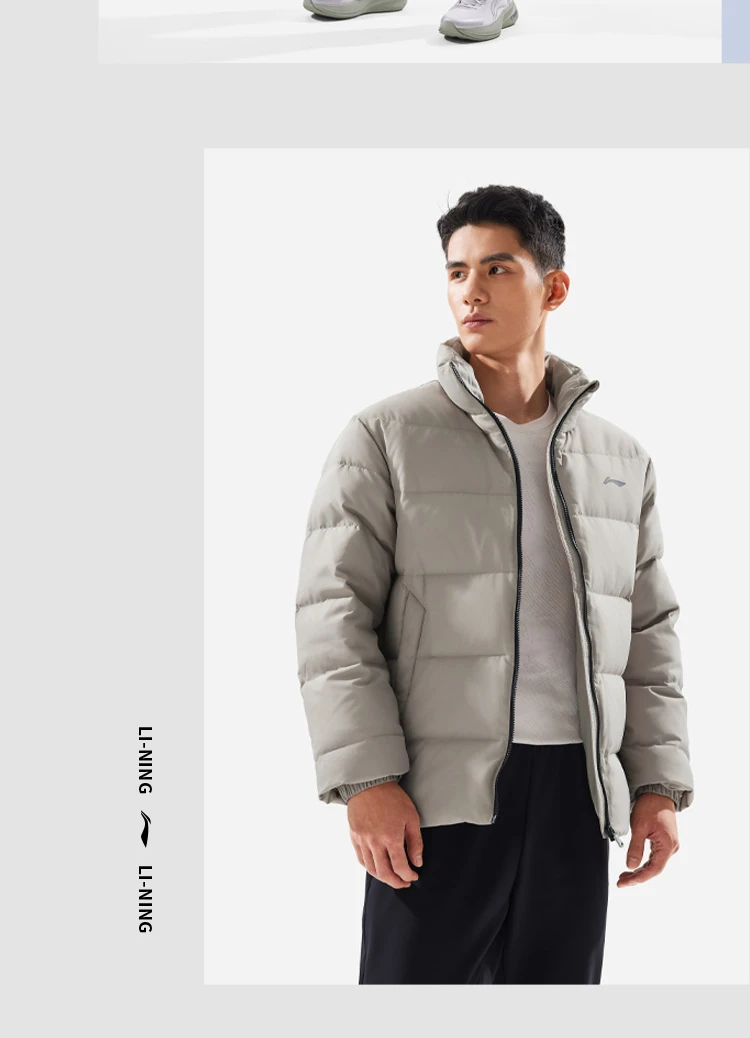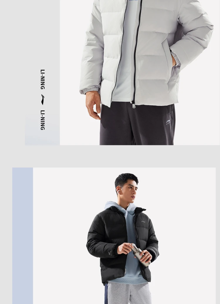 李宁男子防泼水立体裁剪鸭绒短羽绒服AYMV215