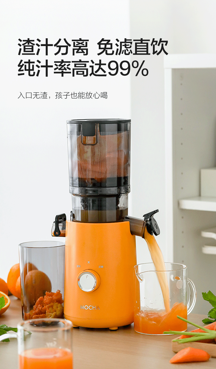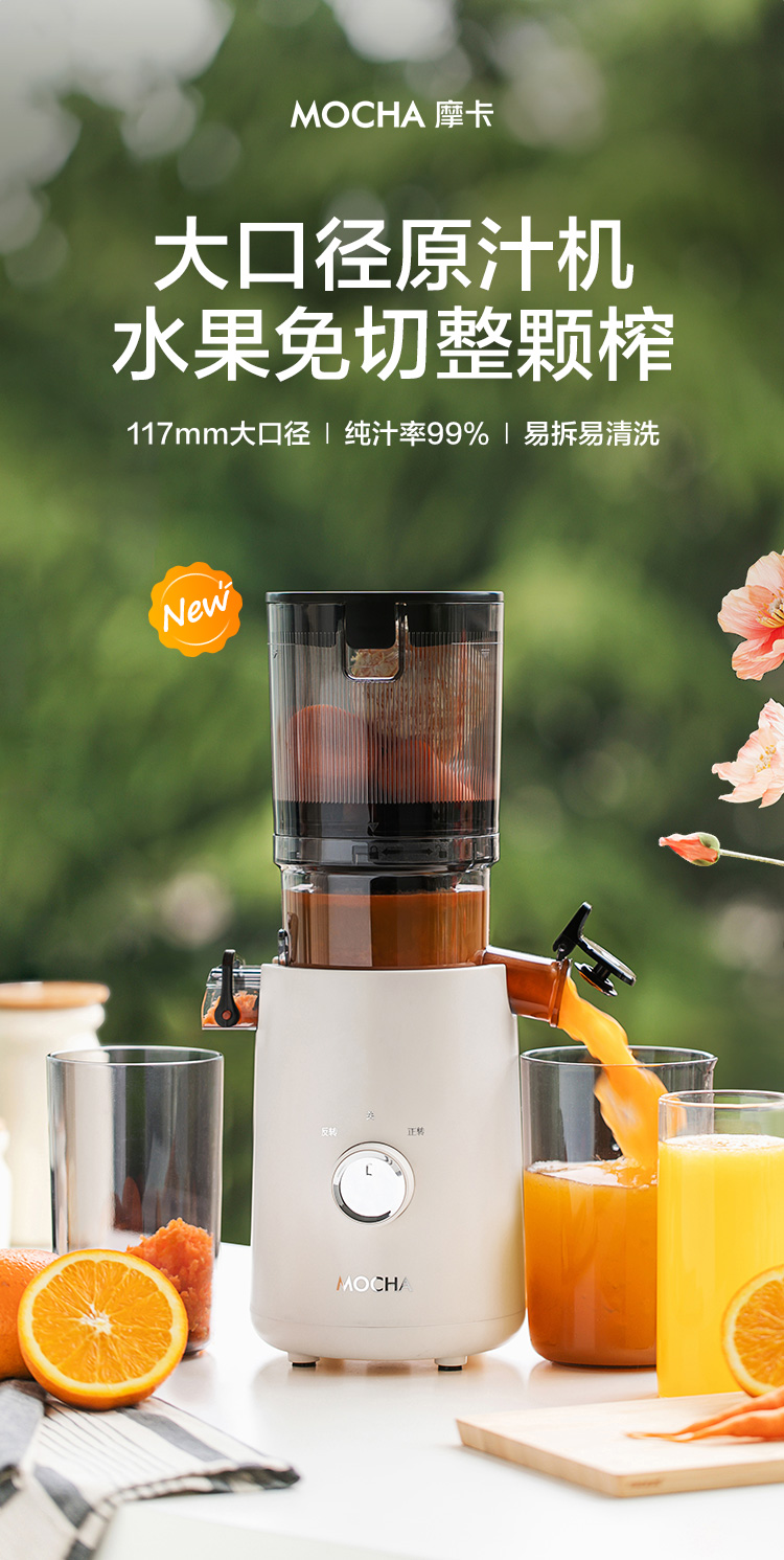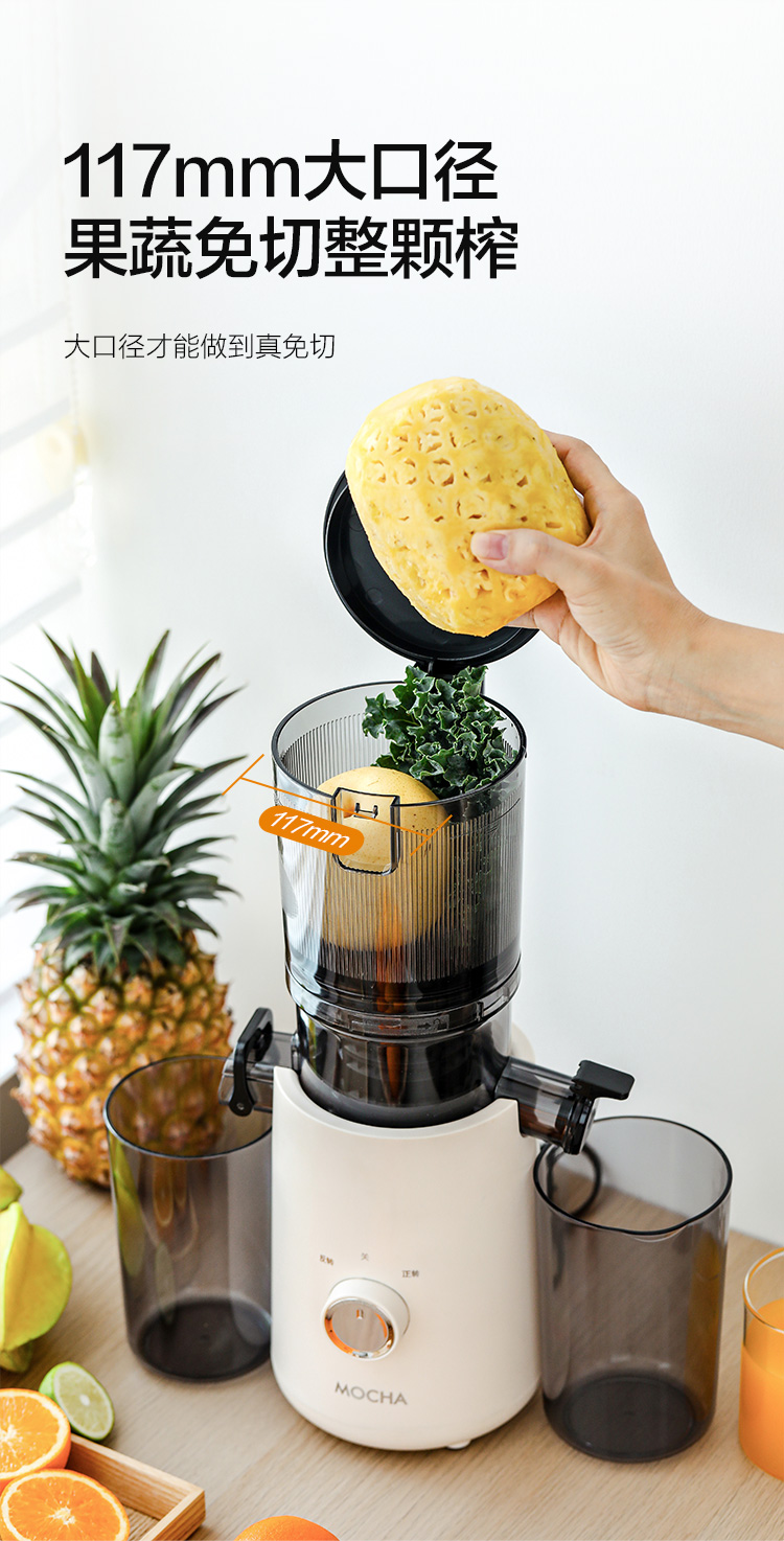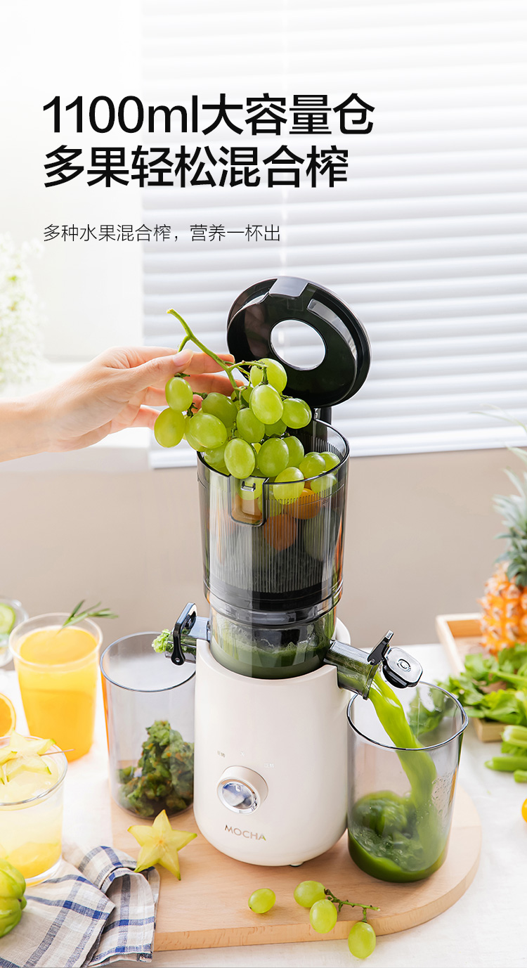 【水果免切速颗榨】MOCHA摩卡大口径原汁杯MC-178 易拆易清洗 117mm大口径 纯汁率99% 1100ml容量仓 0.2mm细滤网零渣感 汁渣分离免过滤 果蔬汁/姜汁/冰激凌