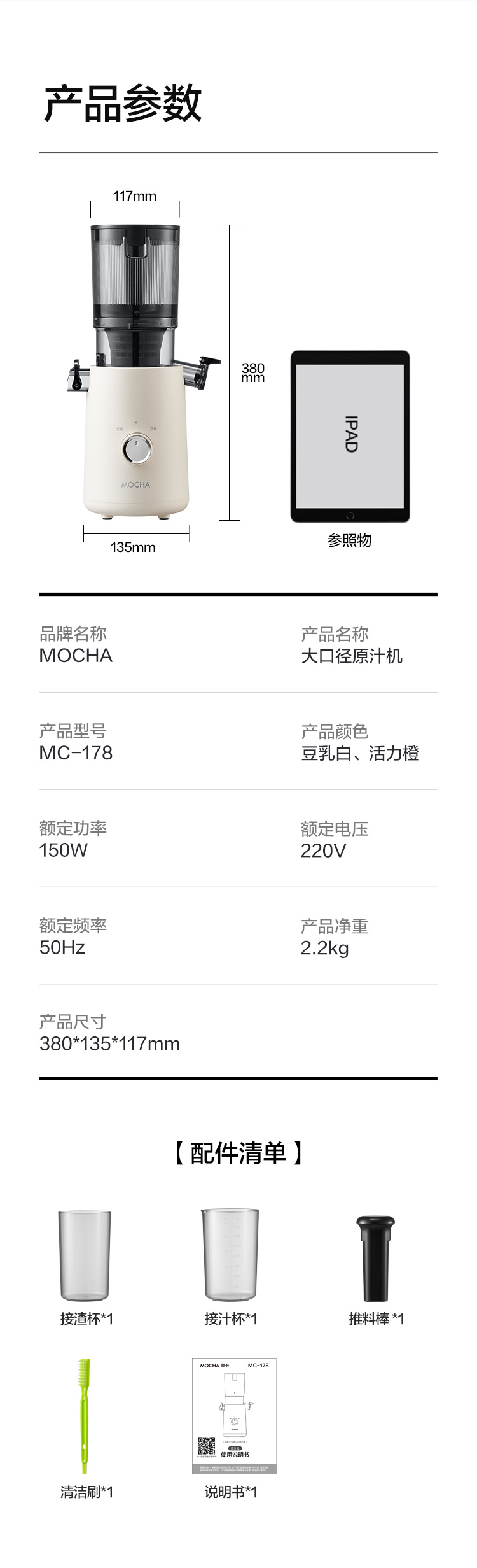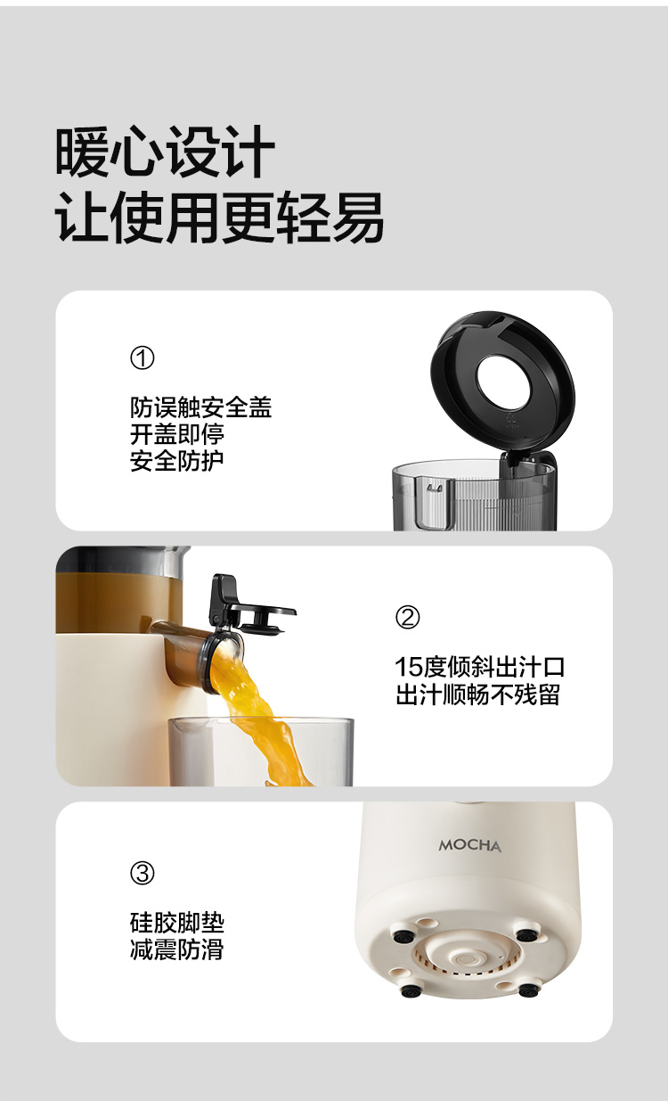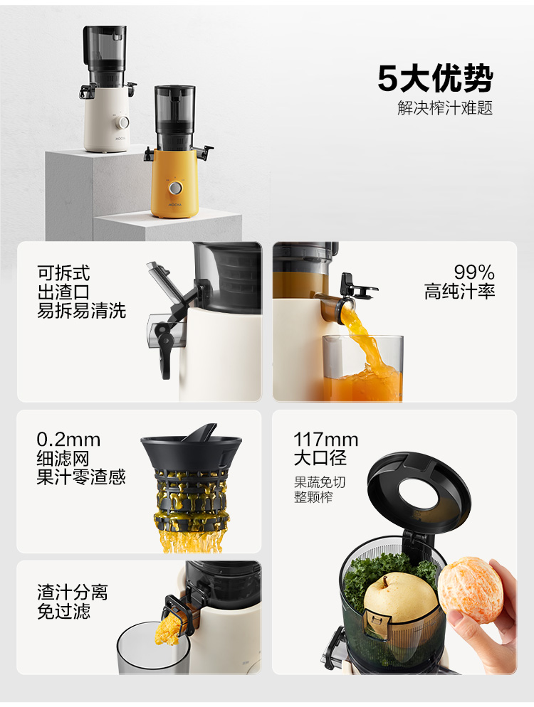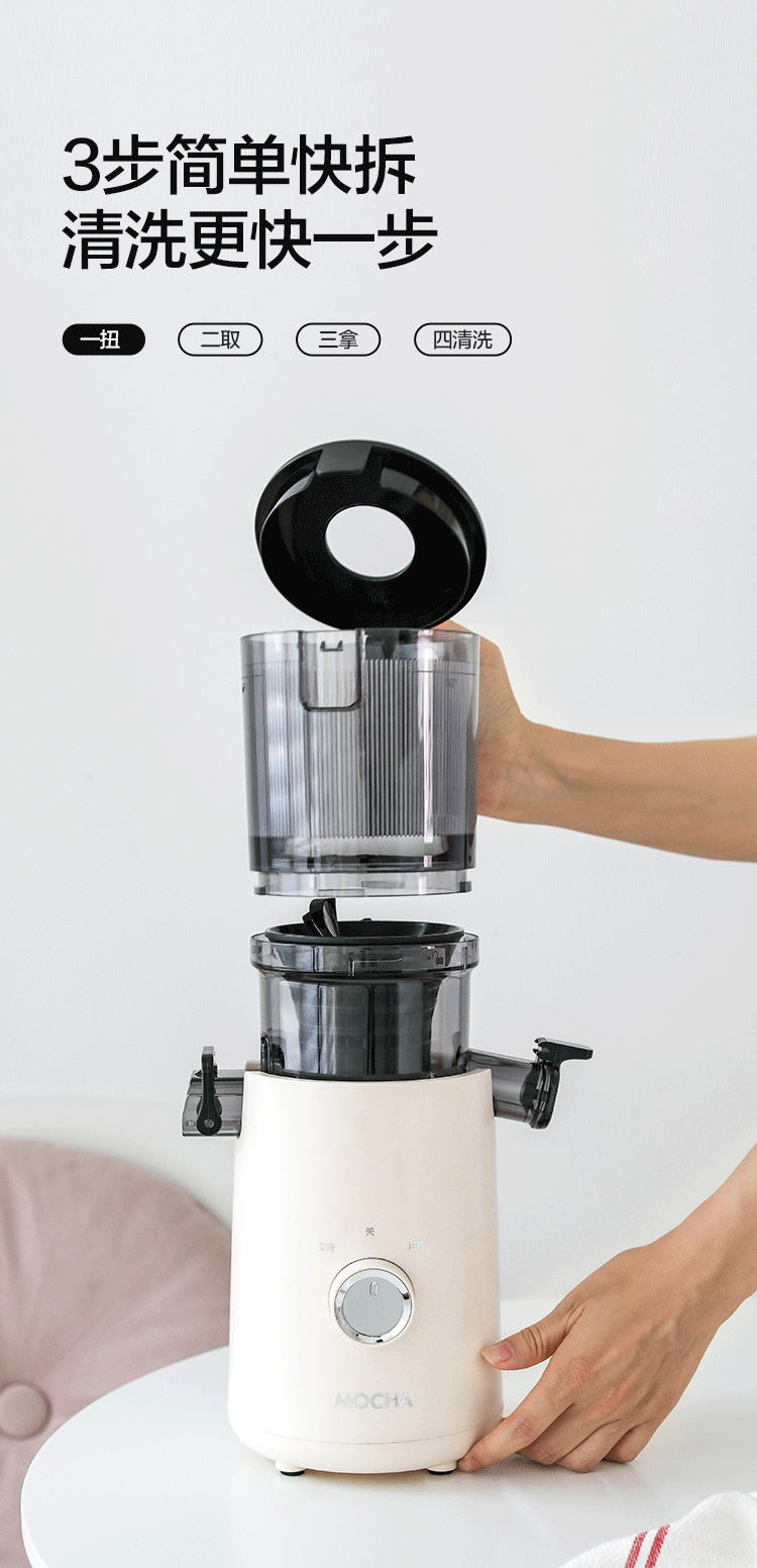 【水果免切速颗榨】MOCHA摩卡大口径原汁杯MC-178 易拆易清洗 117mm大口径 纯汁率99% 1100ml容量仓 0.2mm细滤网零渣感 汁渣分离免过滤 果蔬汁/姜汁/冰激凌