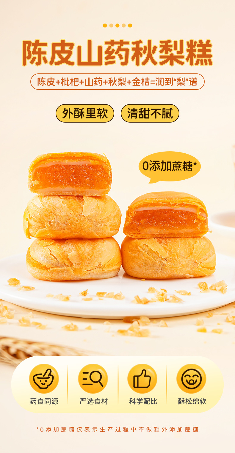 0蔗糖,润喉肺【外酥里嫩,润到‘梨’谱】陈皮山药秋梨糕枇杷膏酥皮金桔果肉无蔗糖零食代餐。ha