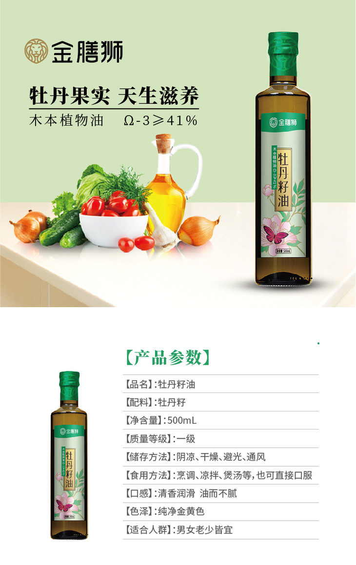【常州馆】金膳狮牡丹籽油食用油正品牡丹籽油健康食用油