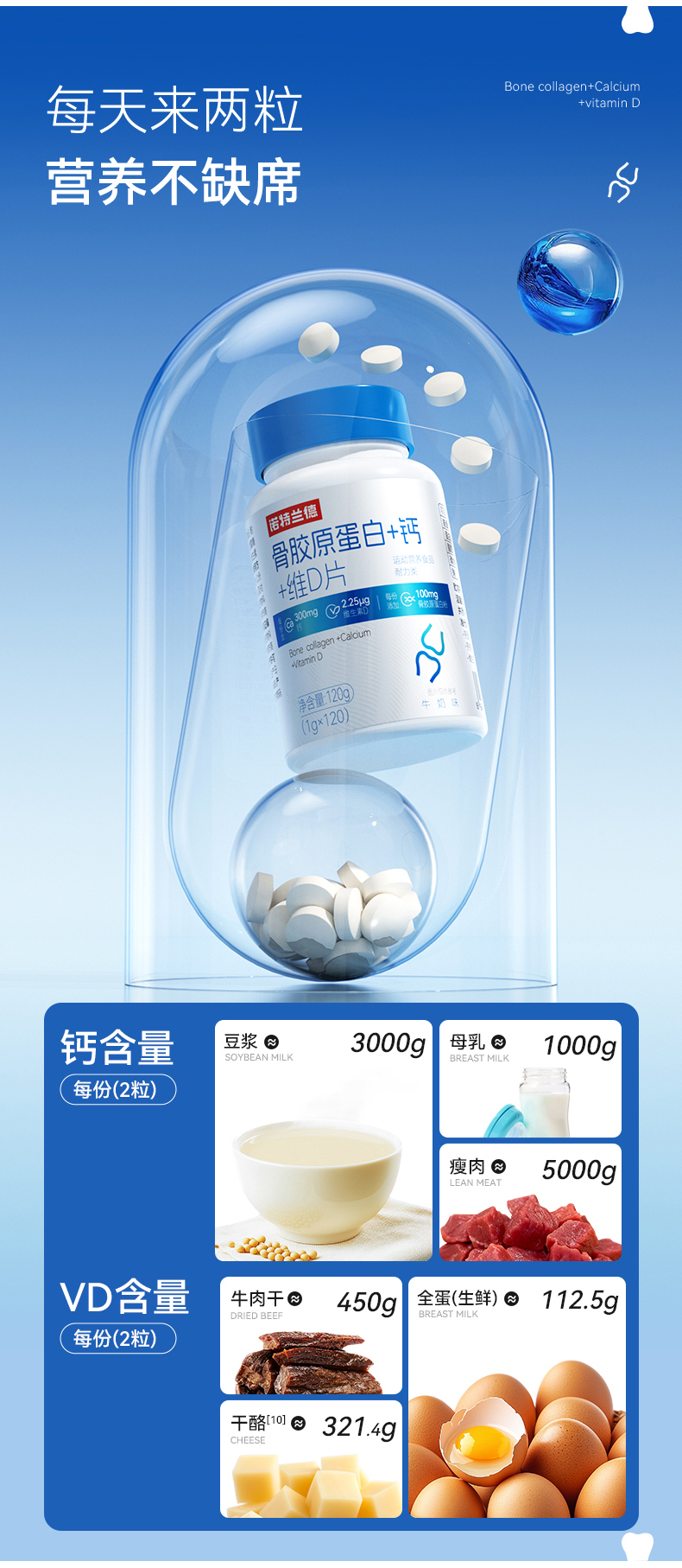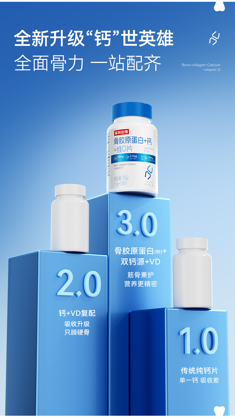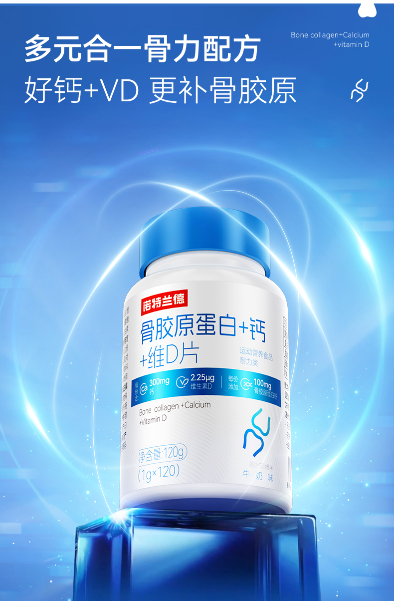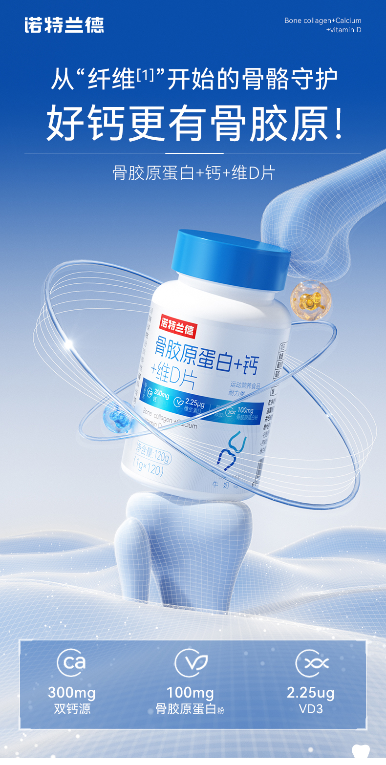 严选 | 诺特兰德骨胶原蛋白+钙+维D片 120粒/瓶 全面骨力一站配齐