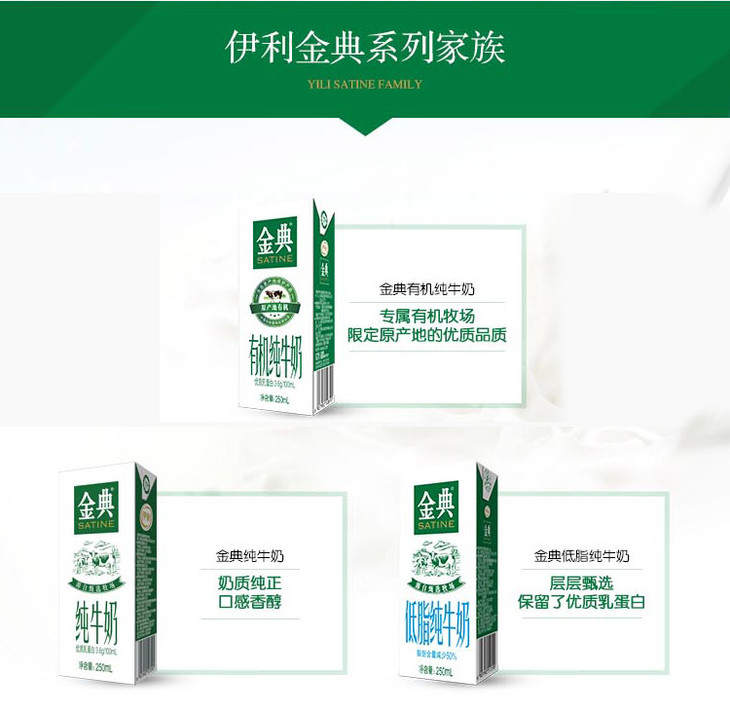 金典低脂奶、纯牛奶、有机奶50ml*12盒