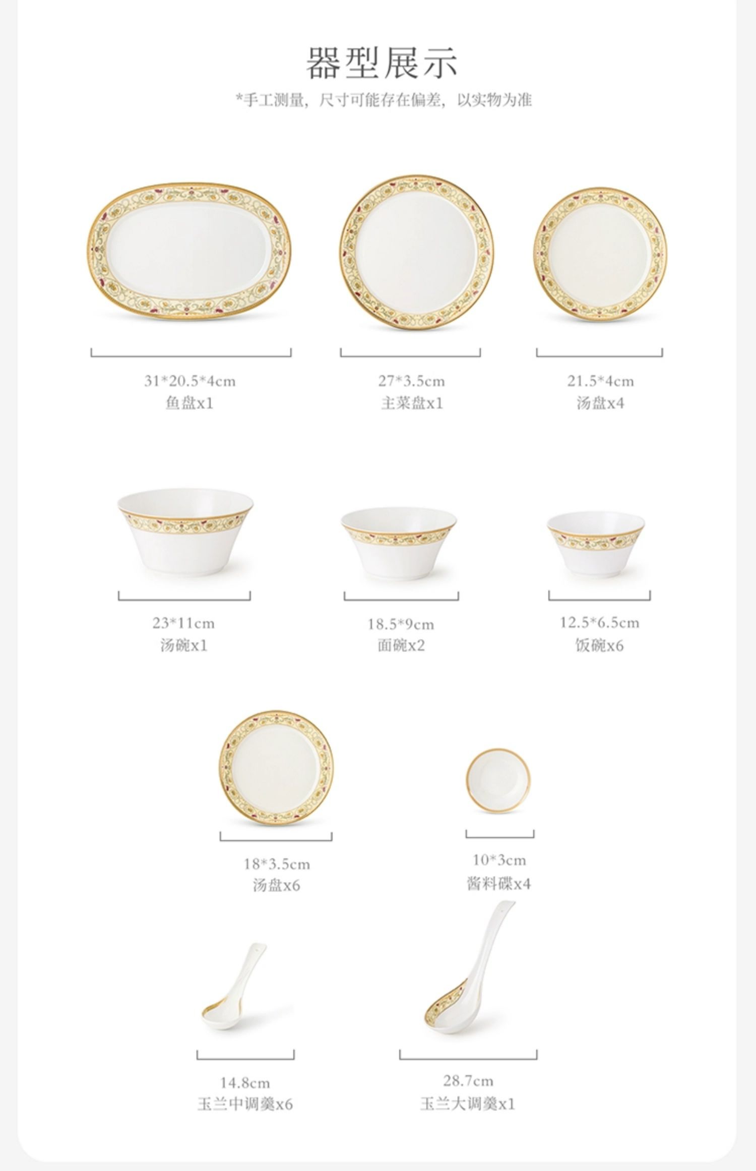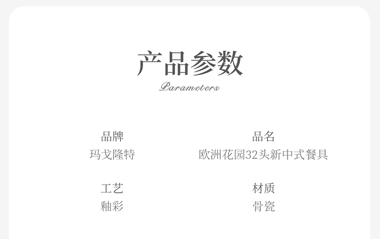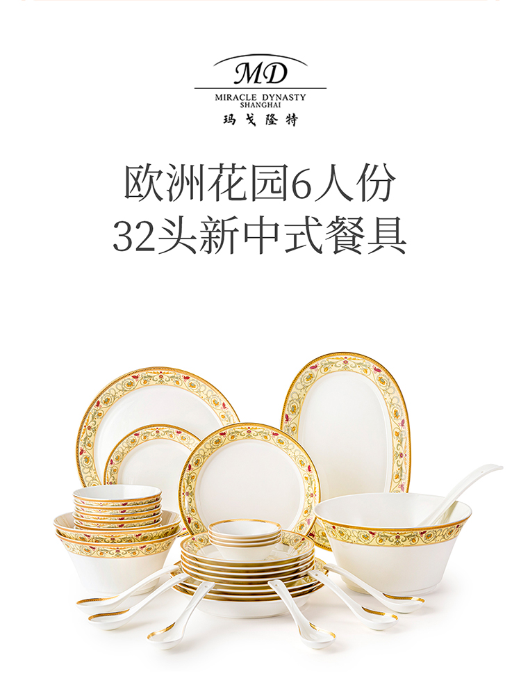 【玛戈隆特】欧洲花园高档家用碗盘碟骨瓷餐具套装组合6人份礼盒装