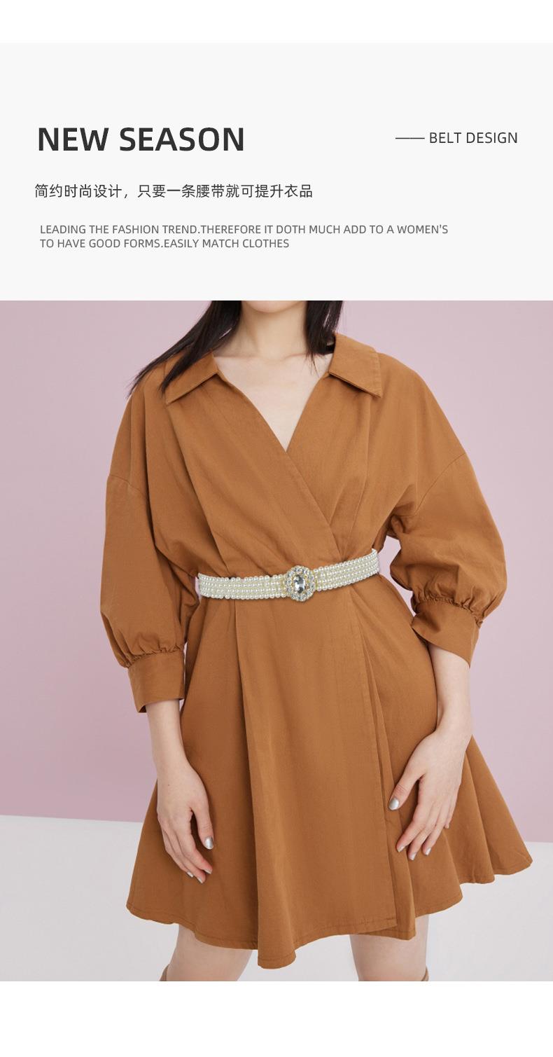 【ins风超出片】2026全新珍珠装饰腰带时尚甜美连衣裙松紧弹力