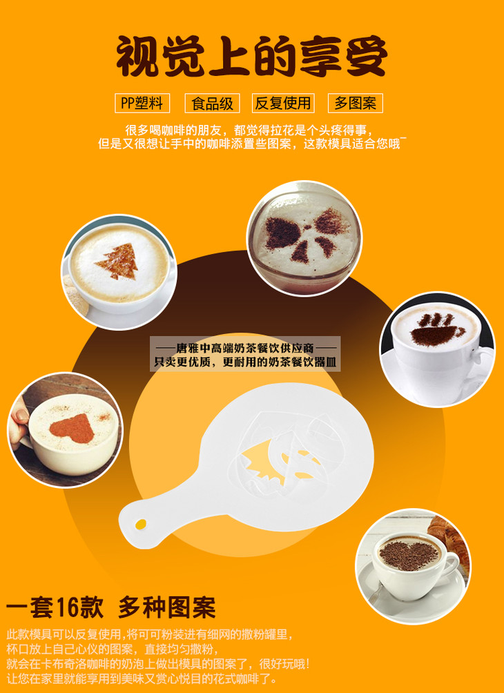 拉花模具 16图/套 奶盖雪顶模具 花式咖啡模具 咖啡印花模型 16枚