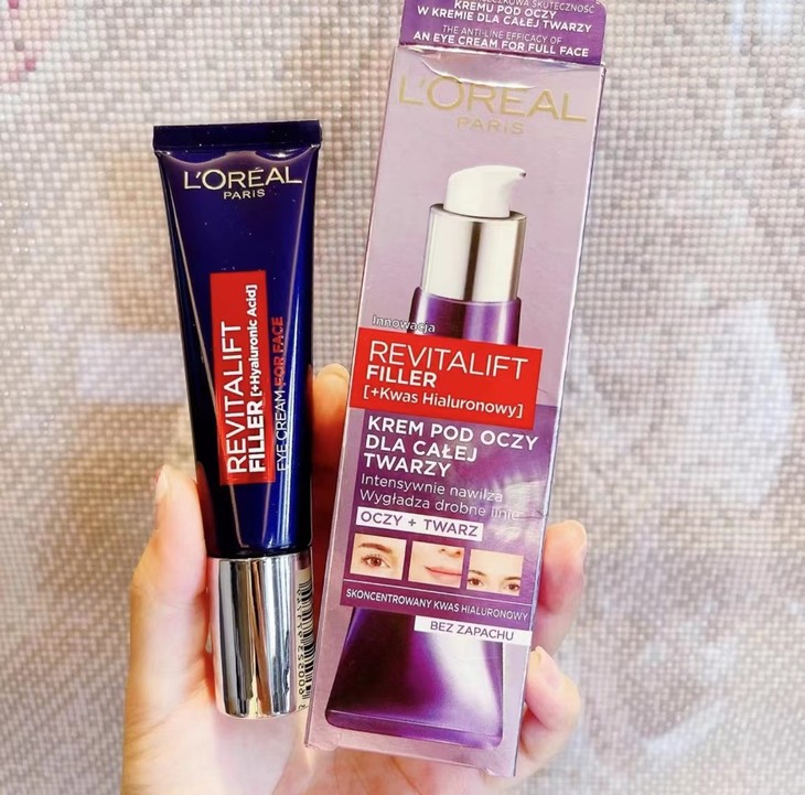 👑欧莱雅玻尿酸眼霜30ml 👍 一霜✌🏻用。📣高浓度玻尿酸以及玻色因✨。 🈶效全脸淡化细纹、紧致肌肤☁️、淡化黑眼圈👀,⭕补水保湿眼周及脸部肌肤。 ✨按压头设计,方便又卫生🍃。 🙌真正的性价比之王👑