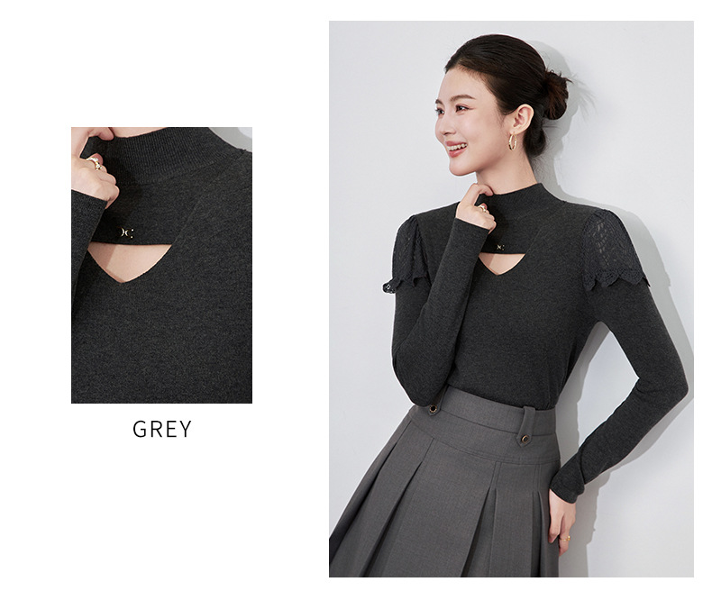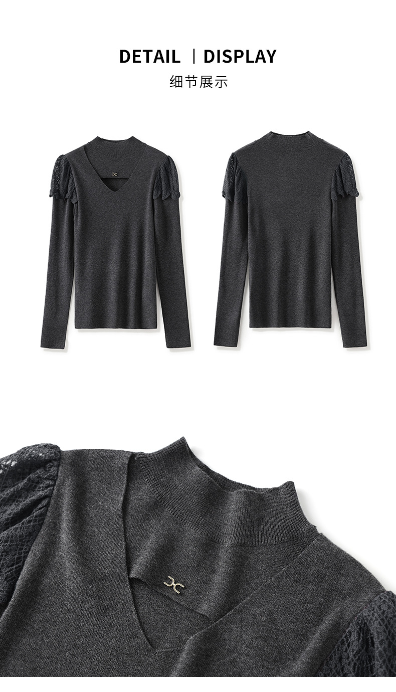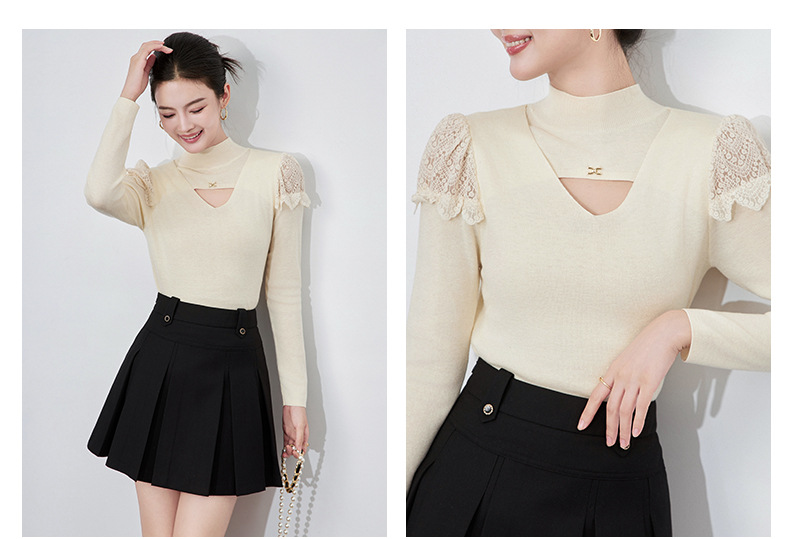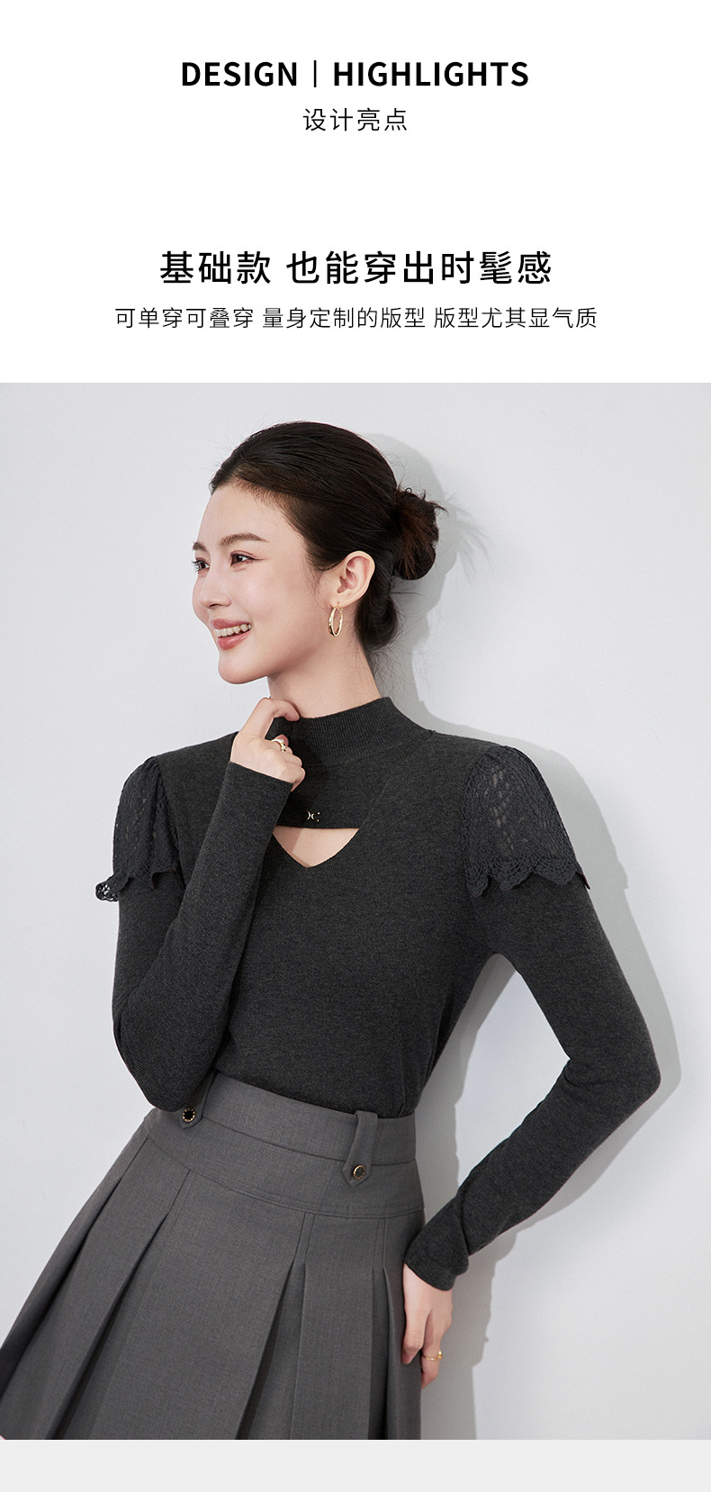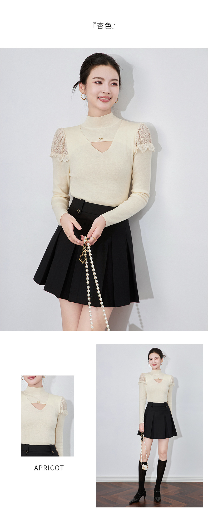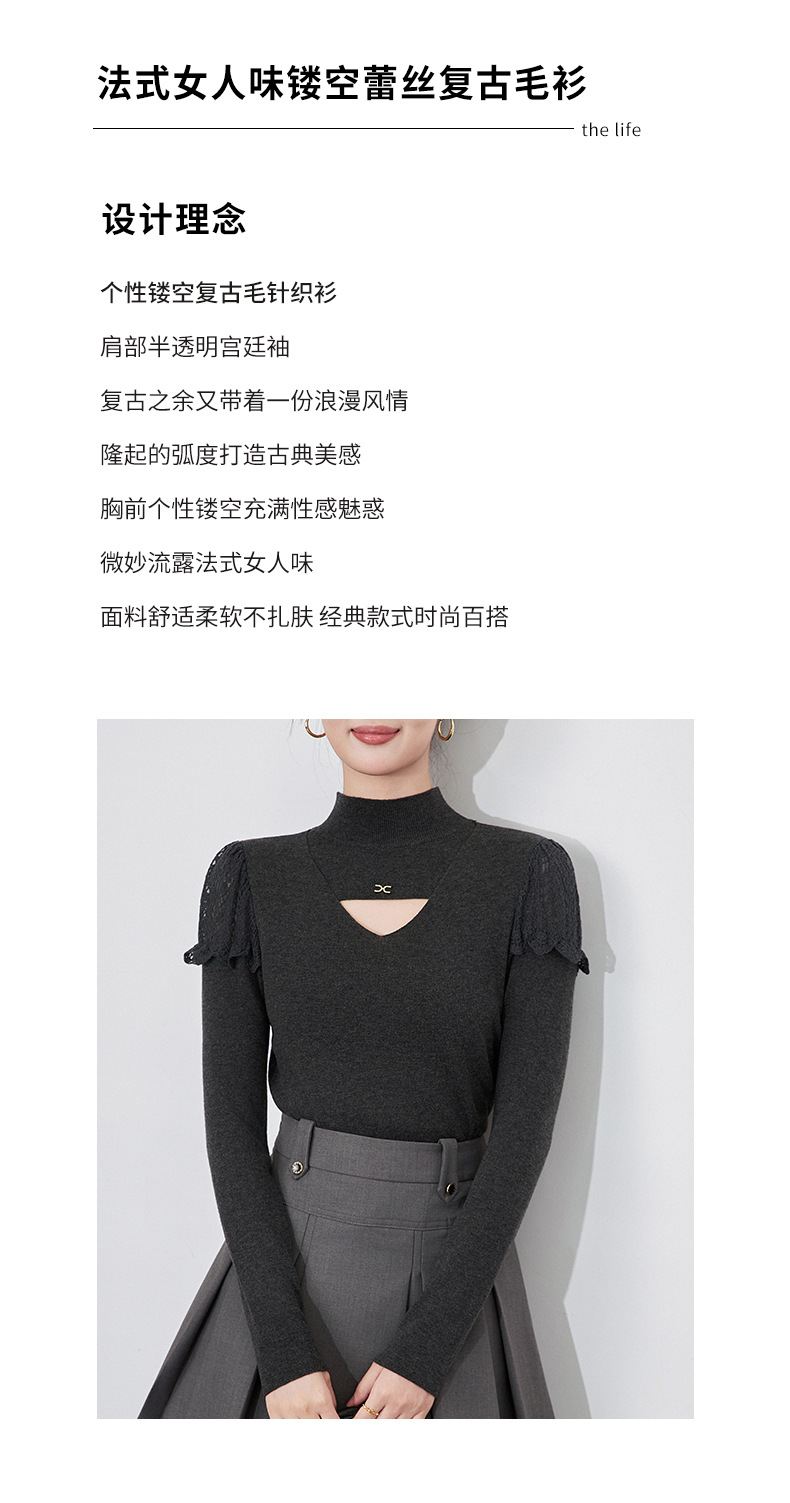 【高货wl】全新升级【铂金会员165/天猫219/差价54】(81300) 洛诗琳秋冬新款蕾丝拼接半高领镂空洋气修身针织衫