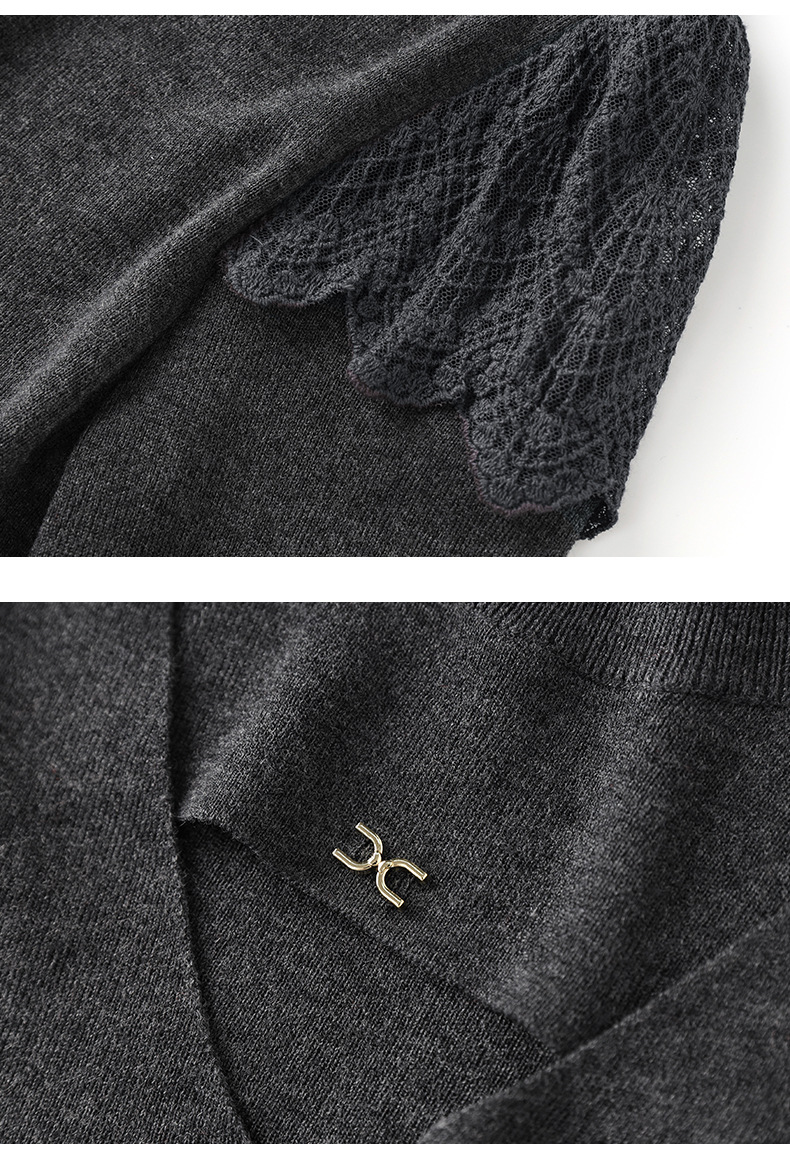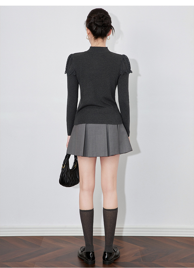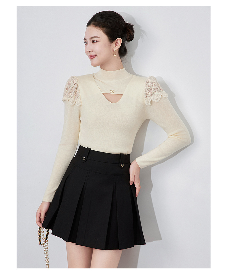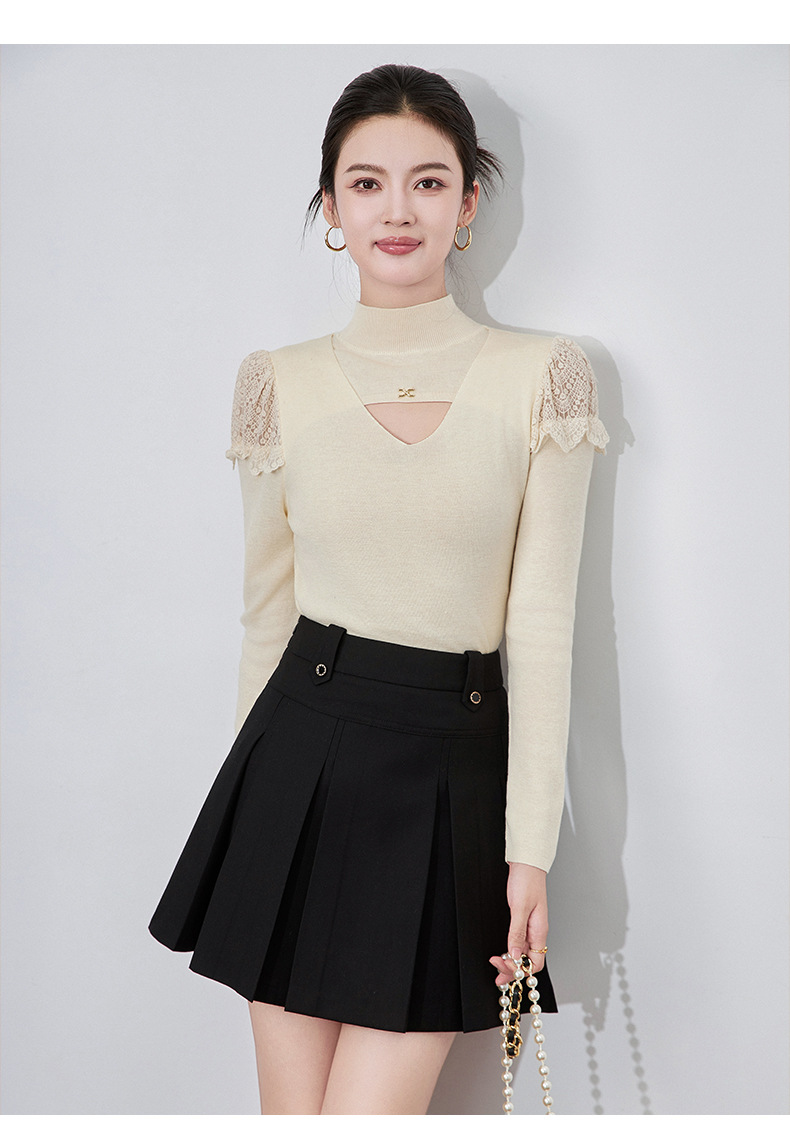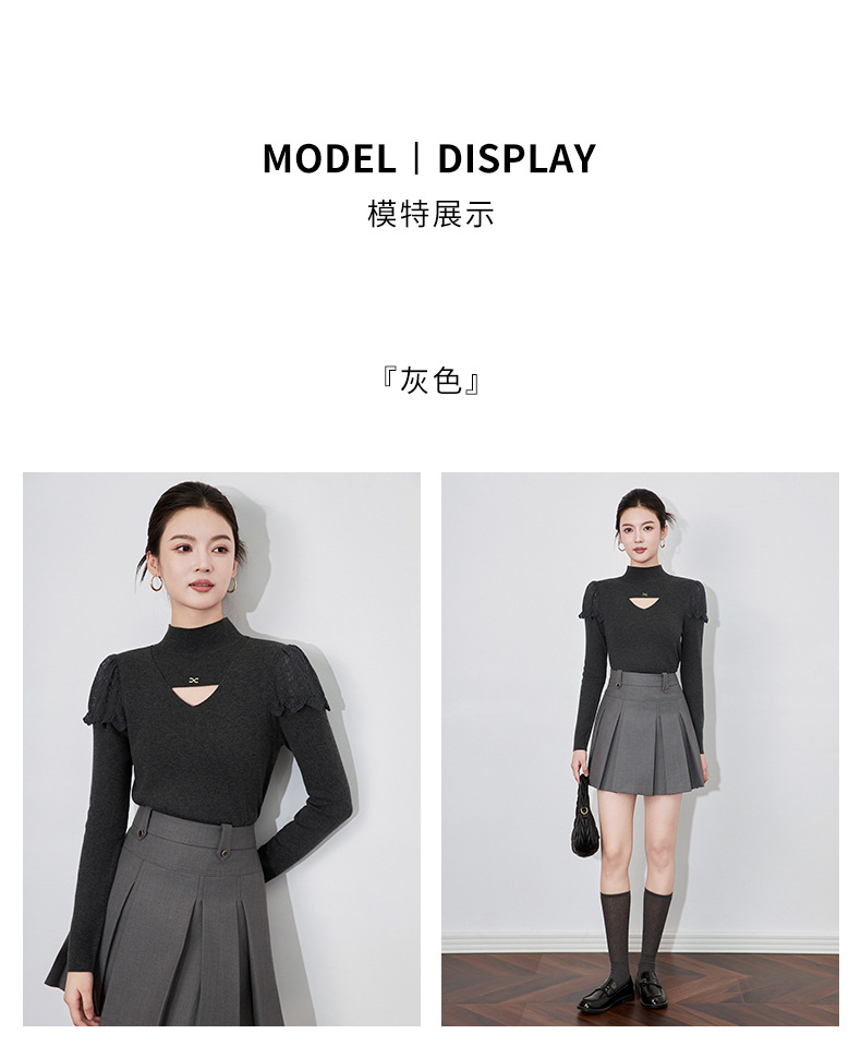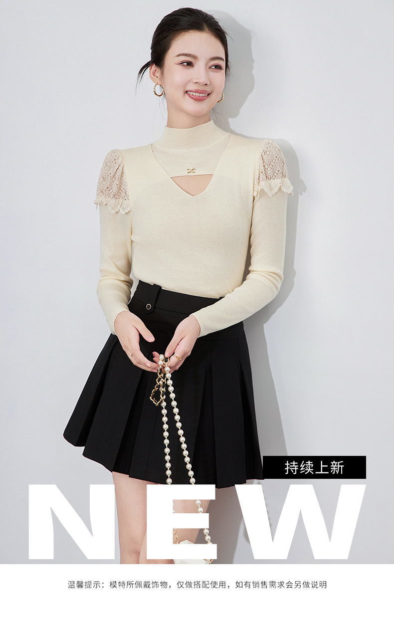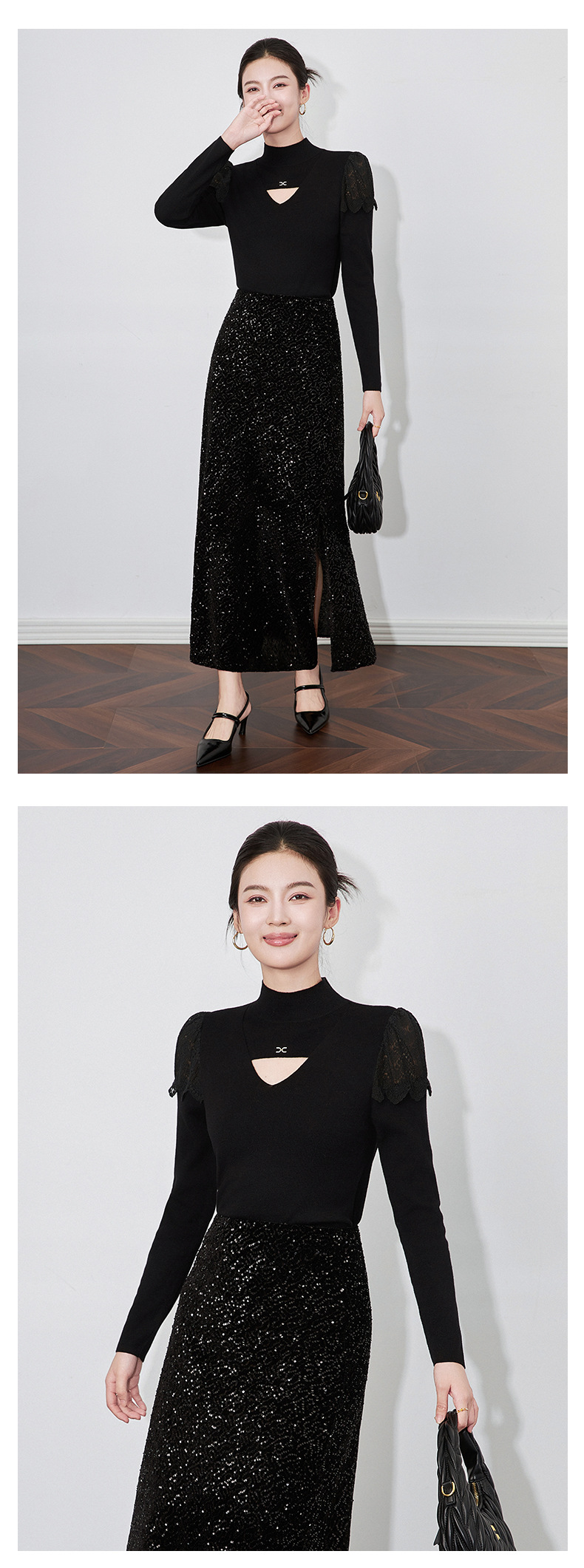 【高货wl】全新升级【铂金会员165/天猫219/差价54】(81300) 洛诗琳秋冬新款蕾丝拼接半高领镂空洋气修身针织衫