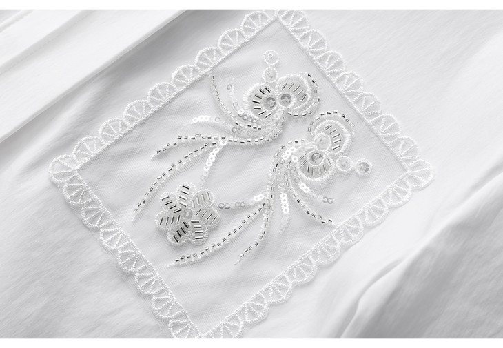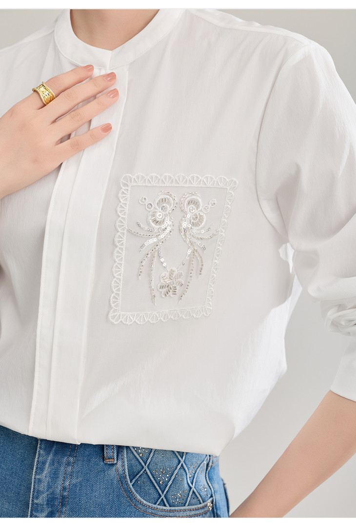 简约淡雅天丝棉钉珠亮片刺绣宽松衬衫 WL2602306