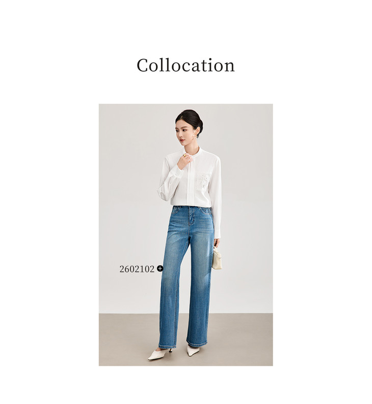 简约淡雅天丝棉钉珠亮片刺绣宽松衬衫 WL2602306 商品图3