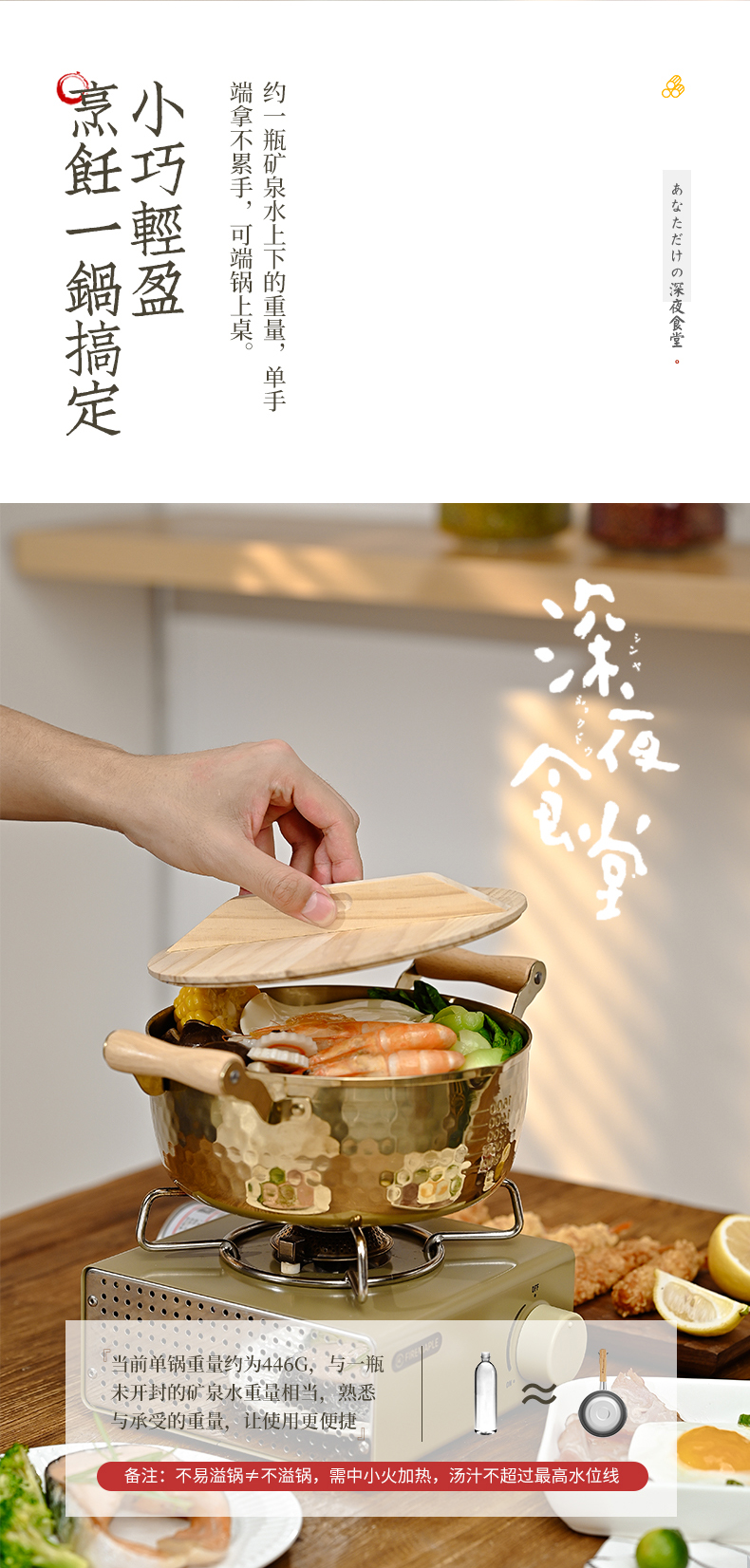 神田钛金双耳雪平锅奶锅辅食锅18cm/20cm 玻璃盖木盖随机发