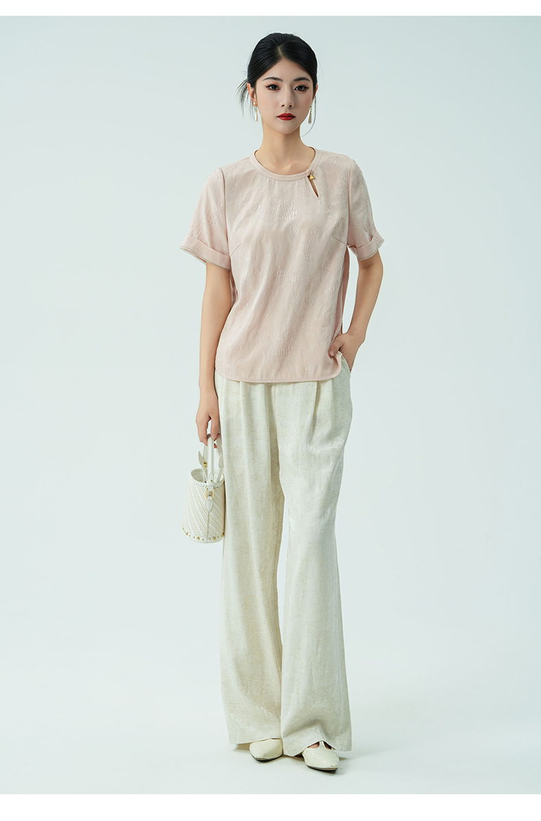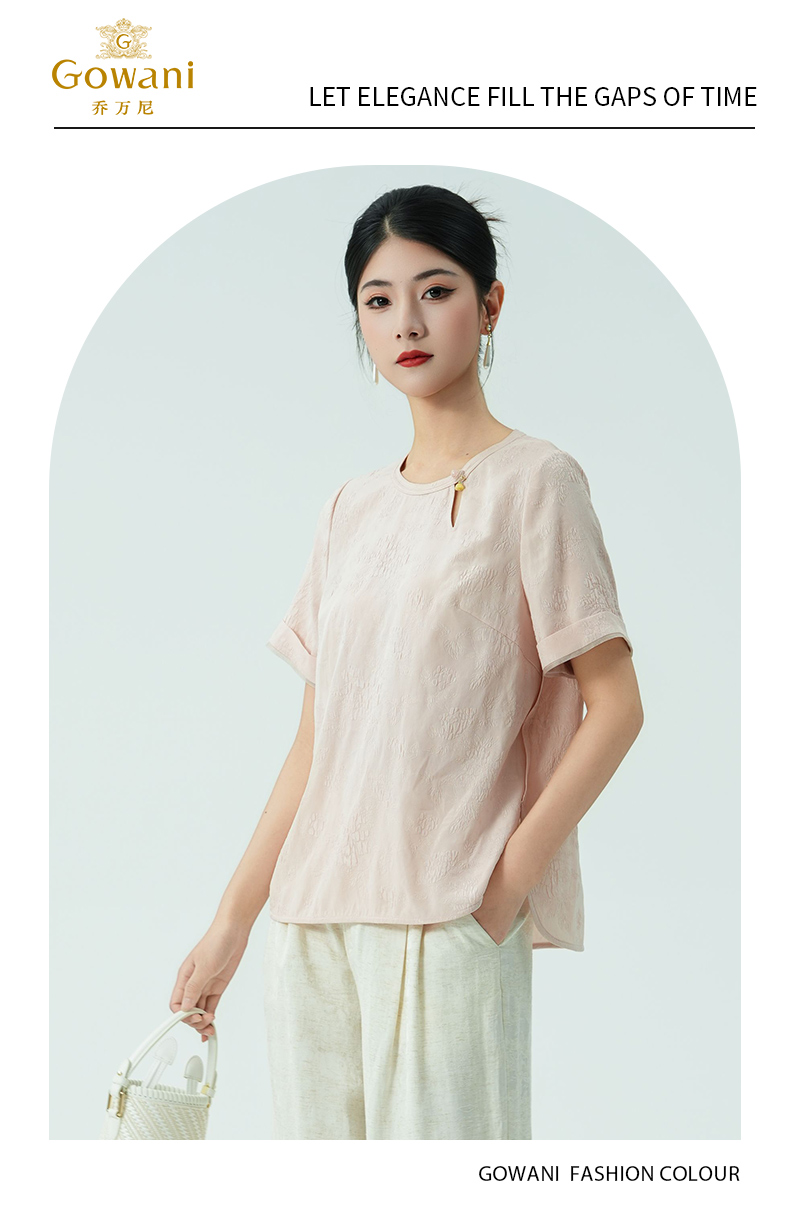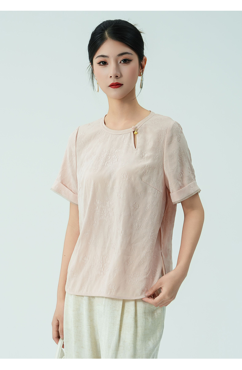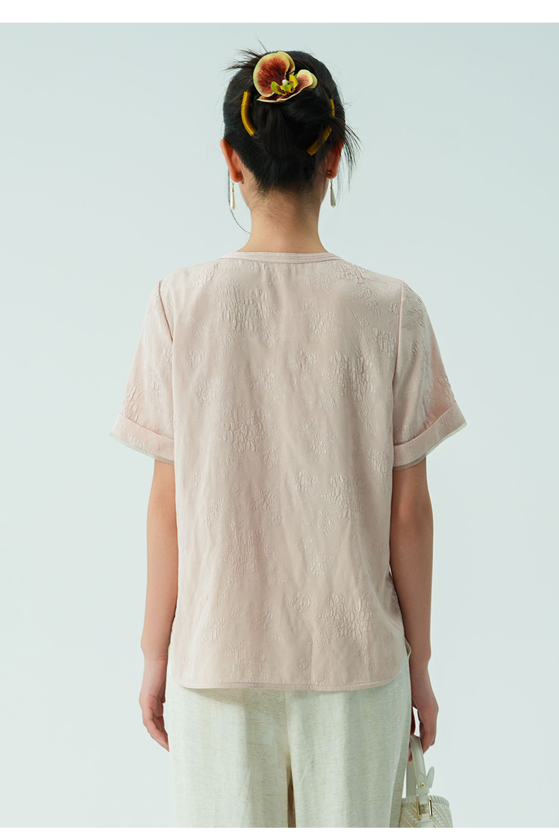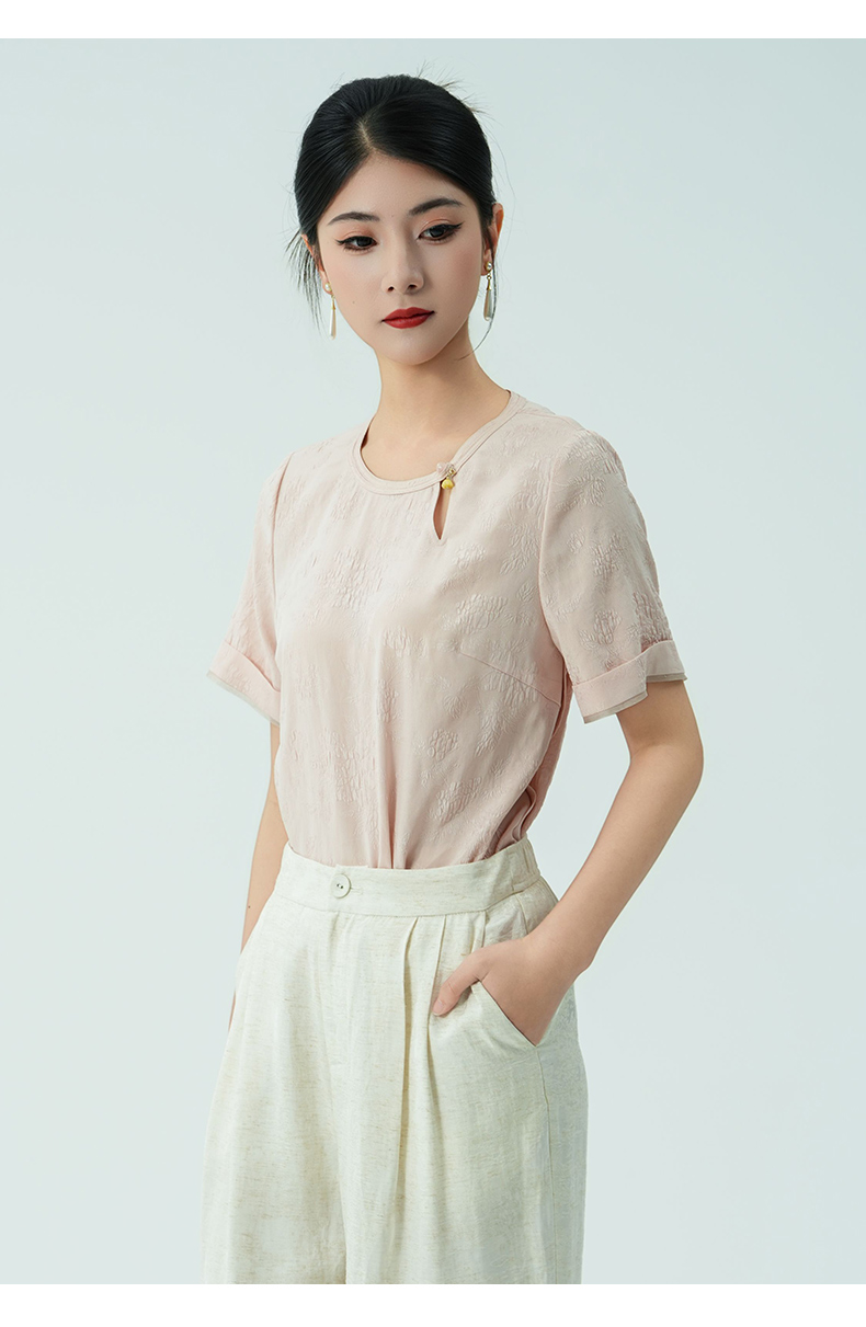 乔万尼新品改良新中式提花冠乐绉真丝衬衫ED2C416