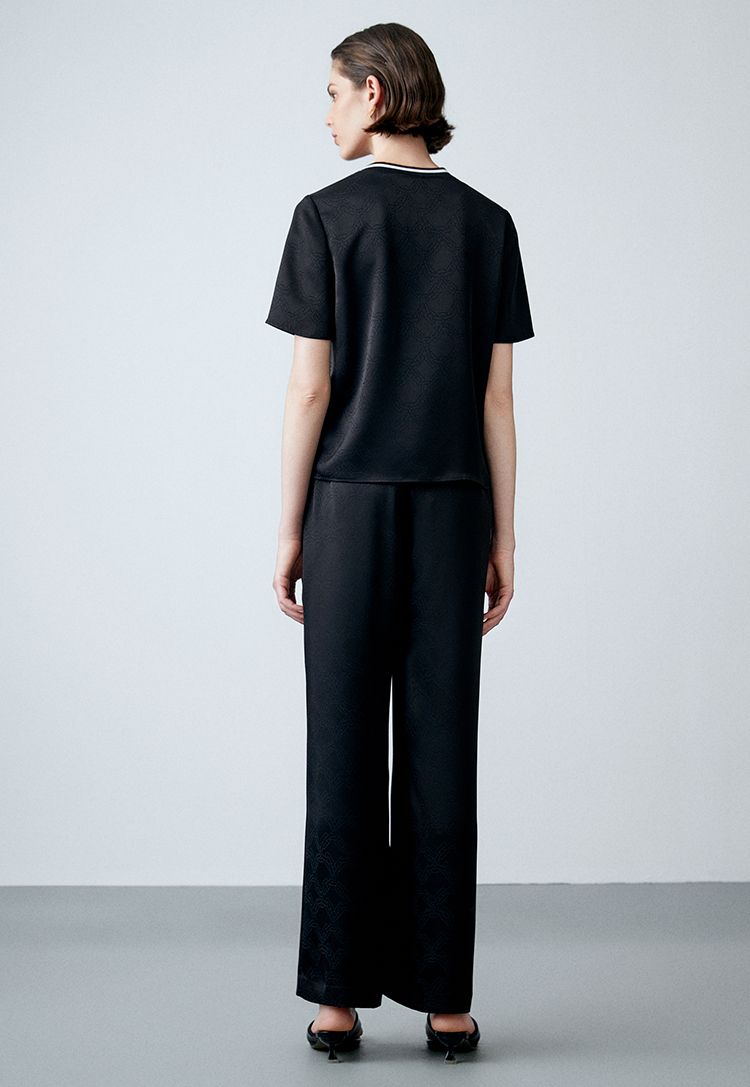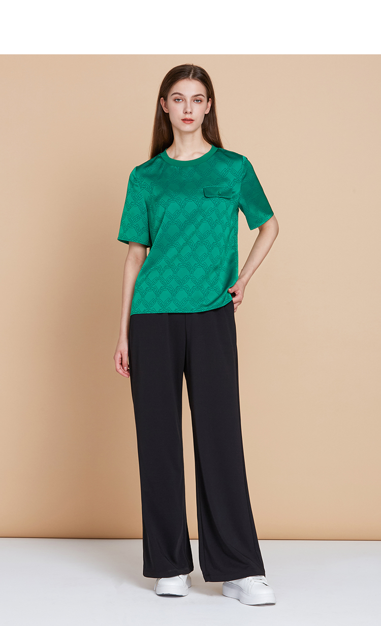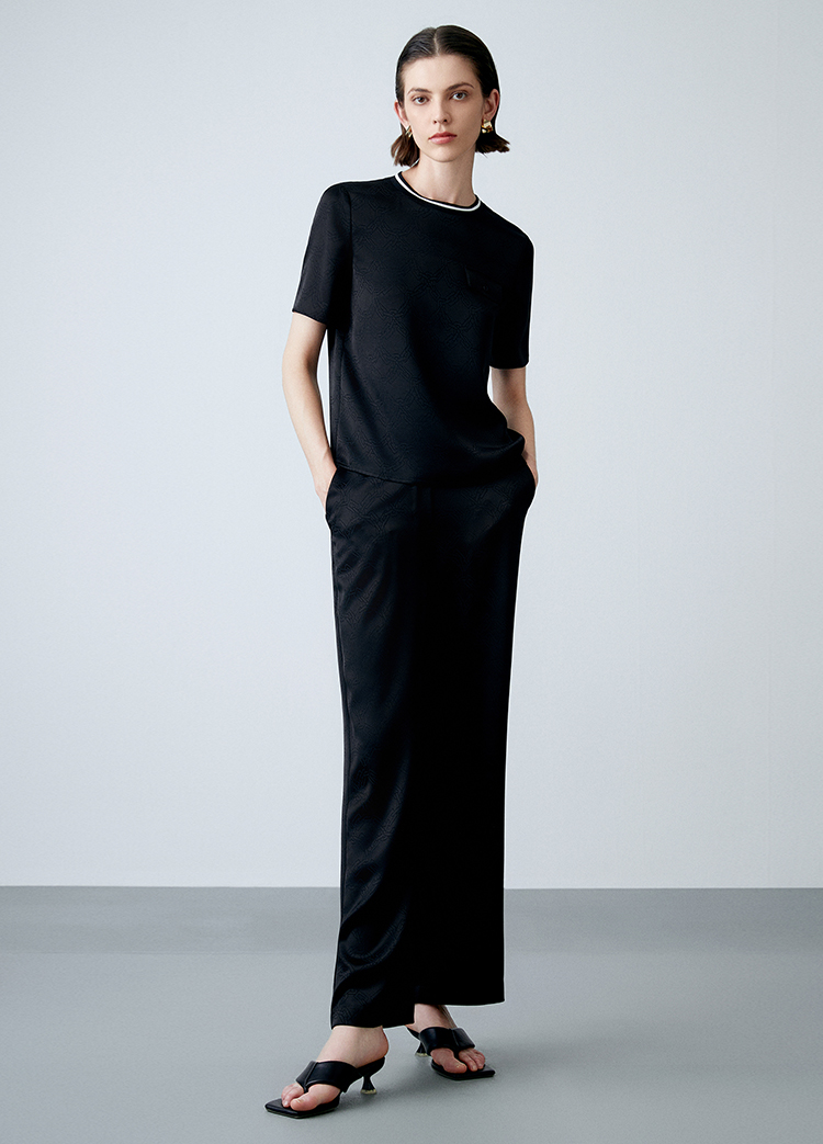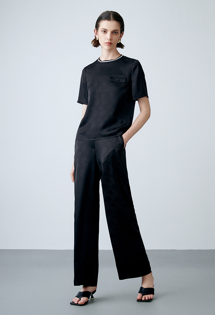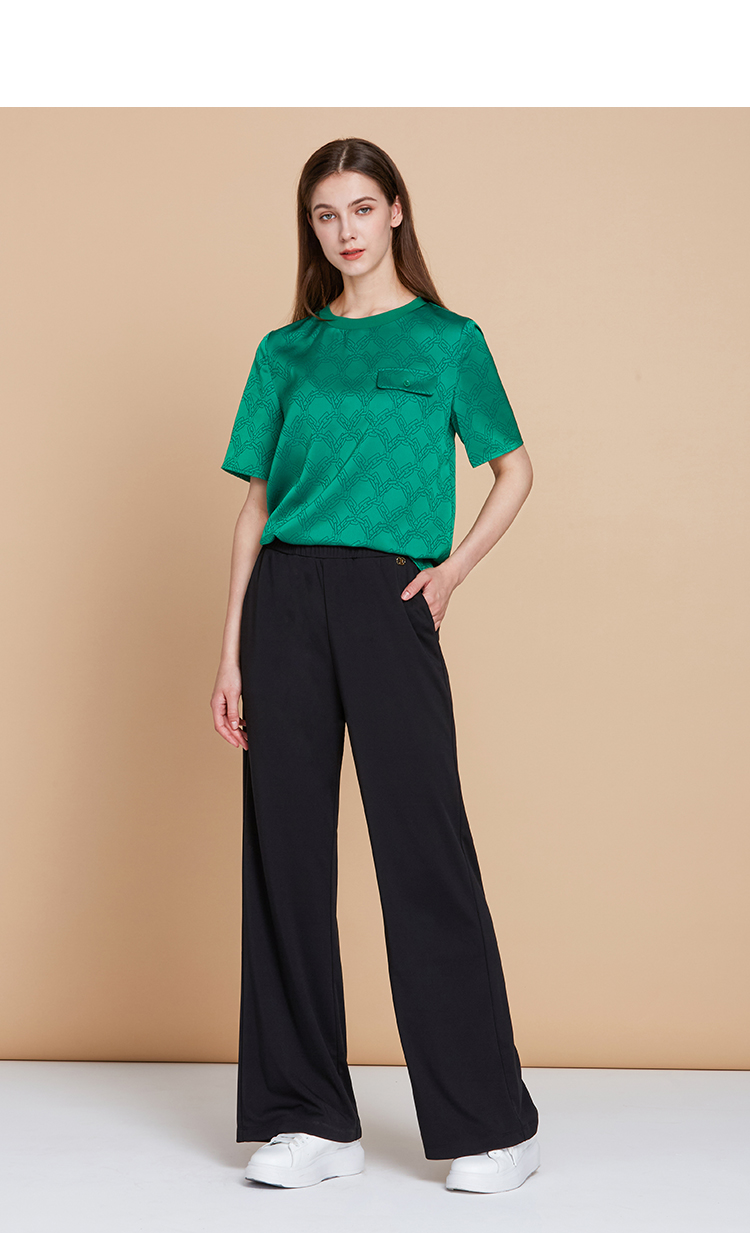 EITIE爱特爱春季新款高腰微喇显瘦OL通勤百搭干练纯色休闲裤A2305113