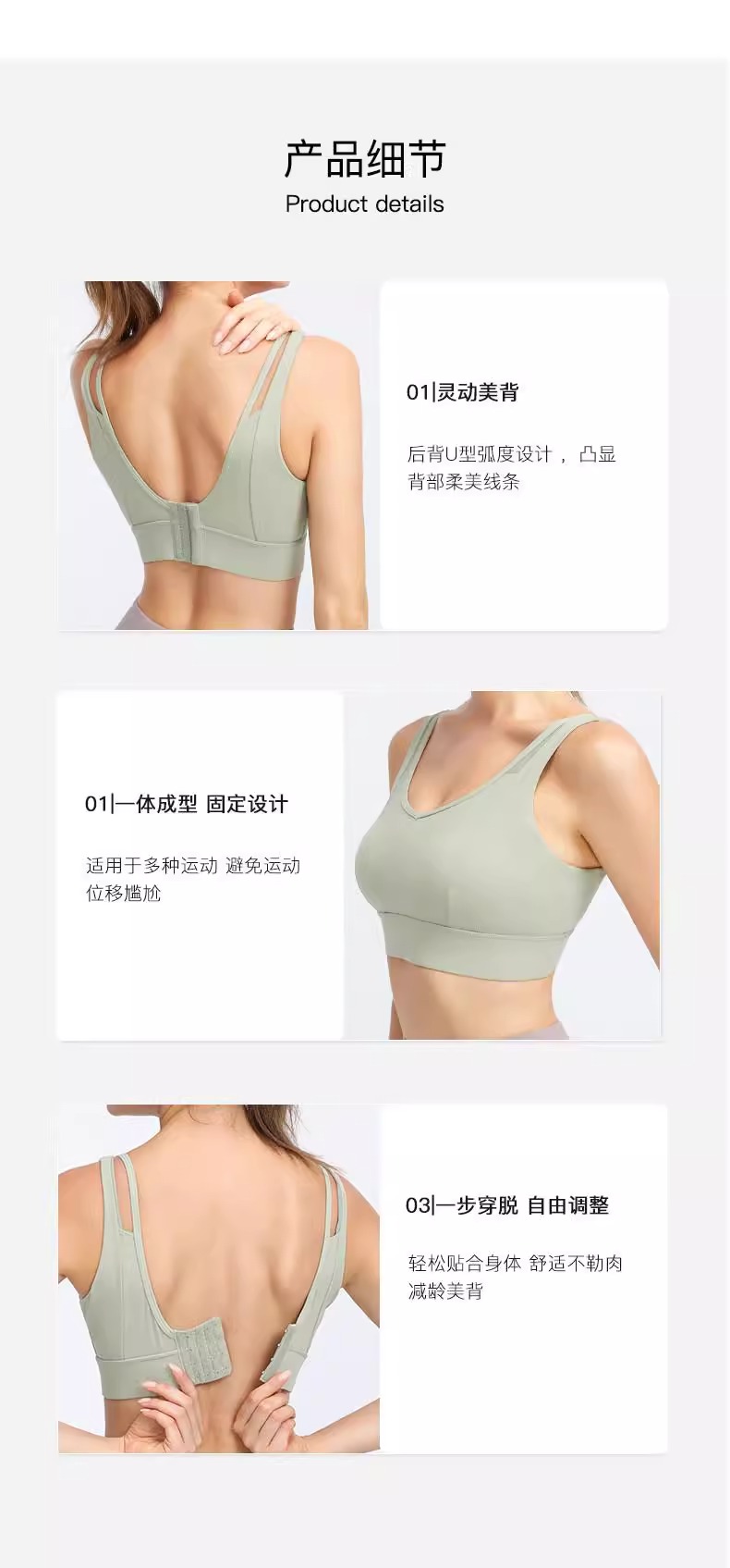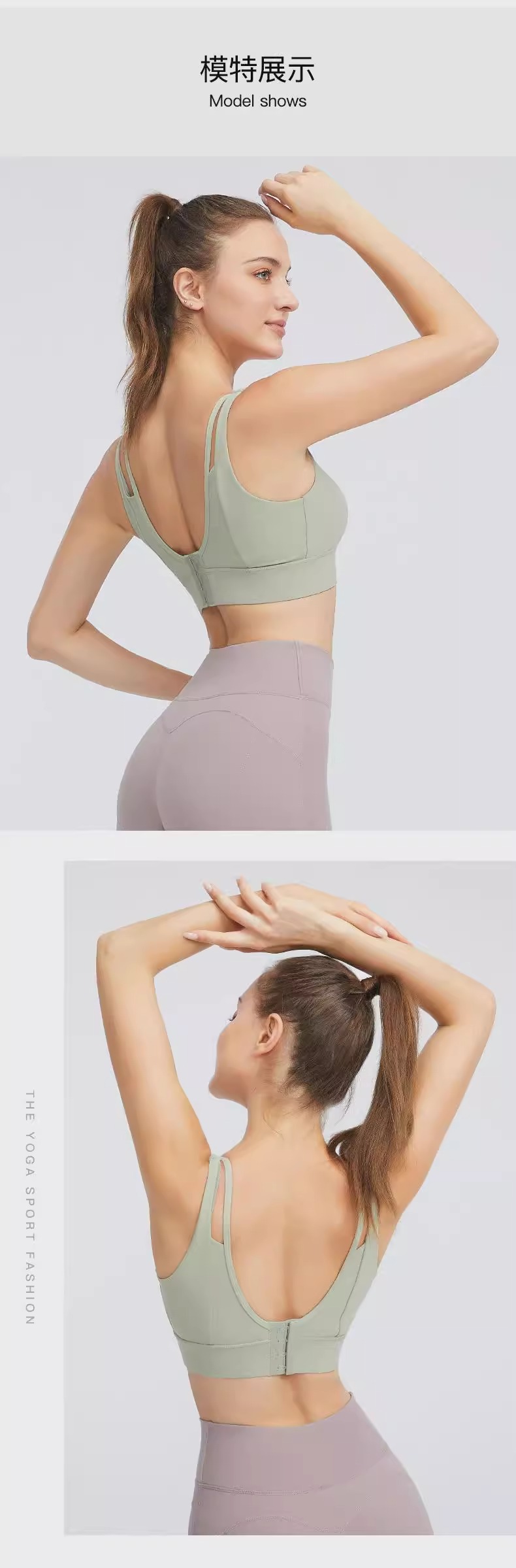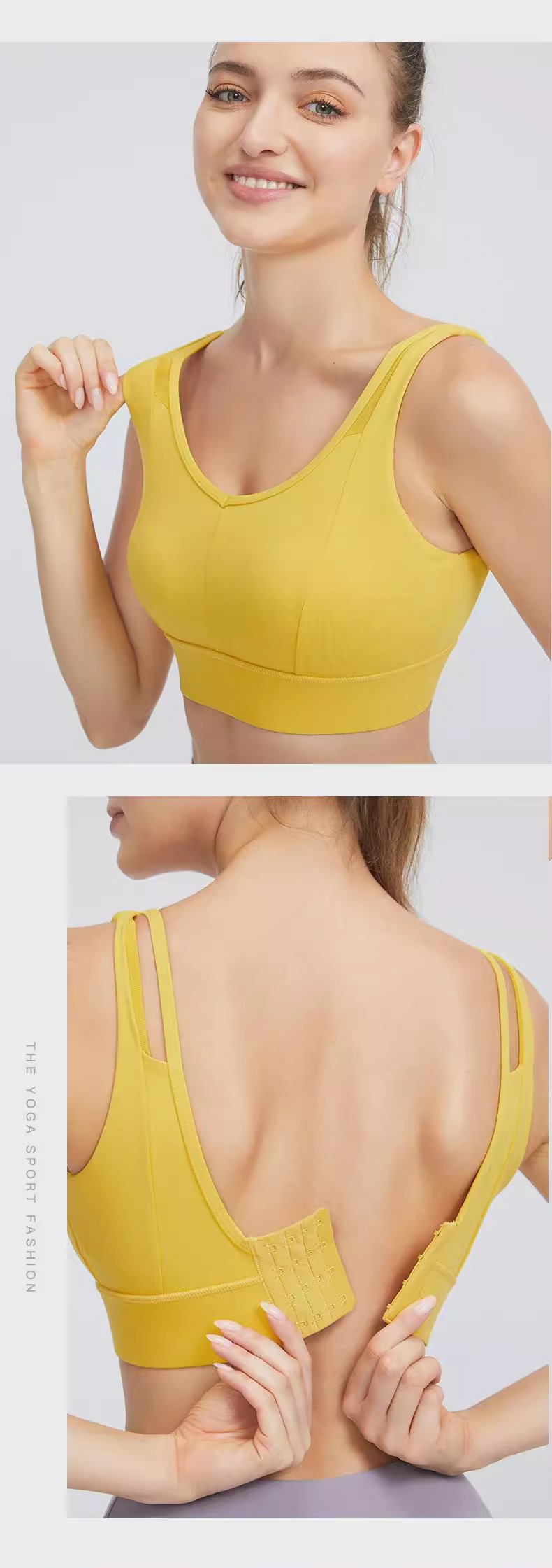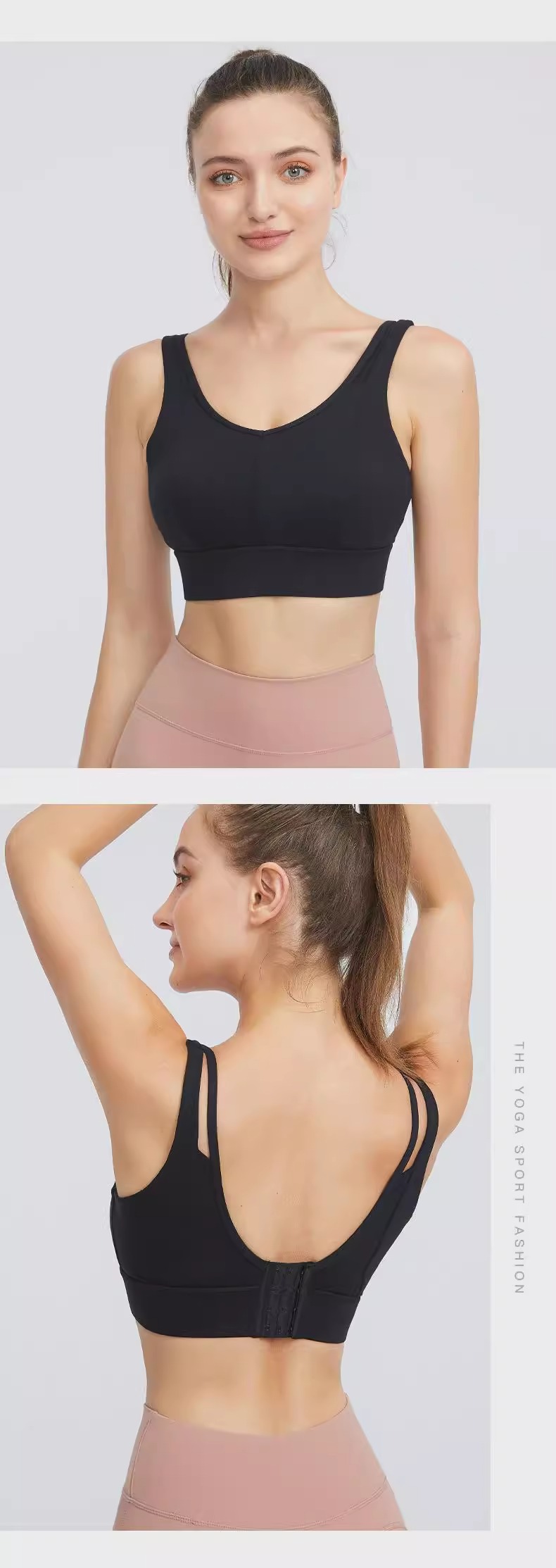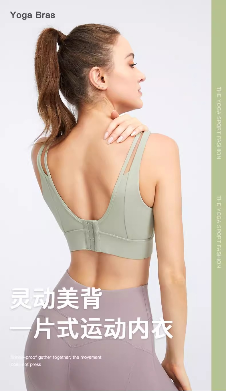 跃牌(呗咪纷纷系列)大码瑜伽内衣后扣易穿脱V字美背运动文胸固定罩杯WX091