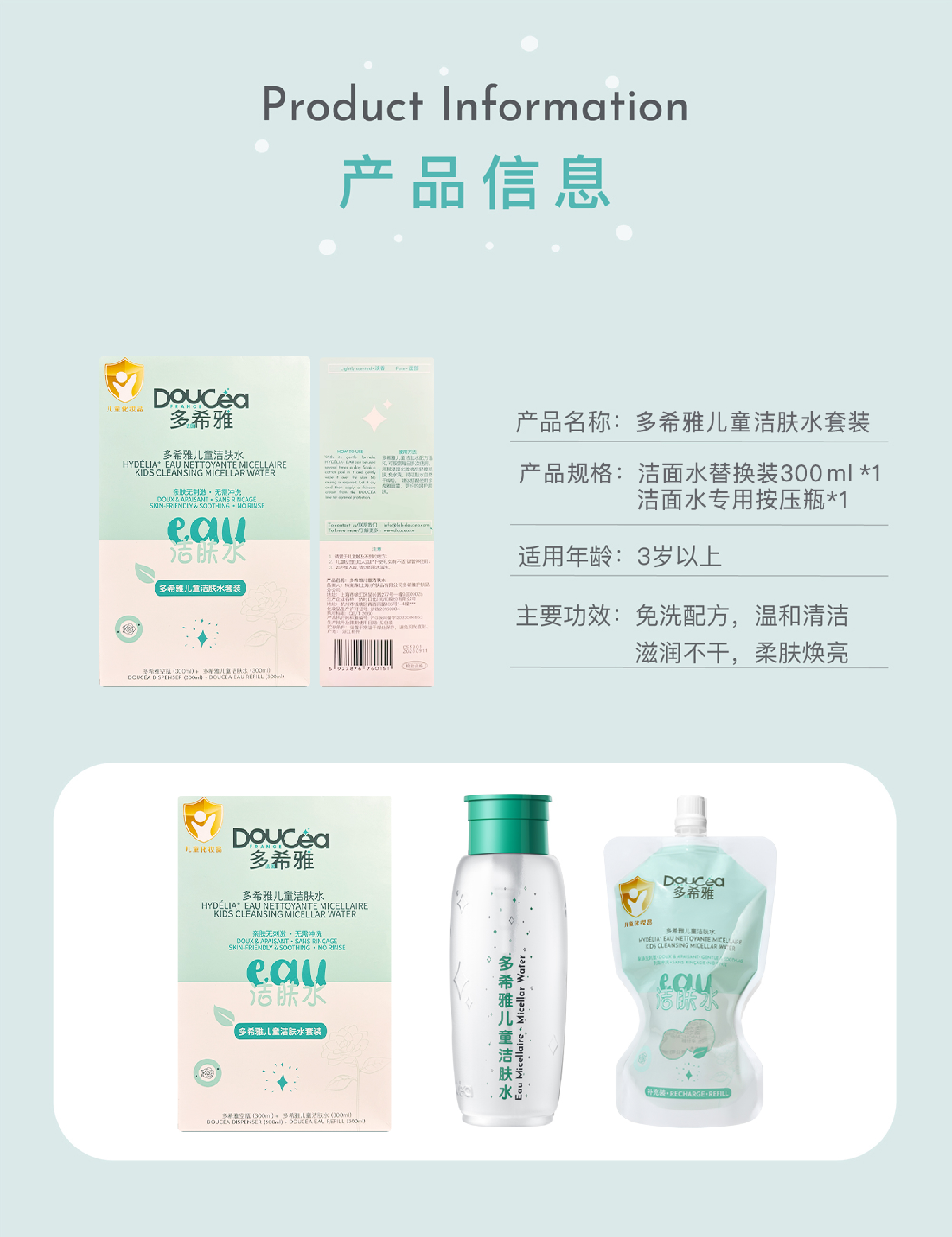 【暖妈专属】Doucea多希雅 · 儿童洁肤水套装温和清洁 滋润保湿 敏感肌适用