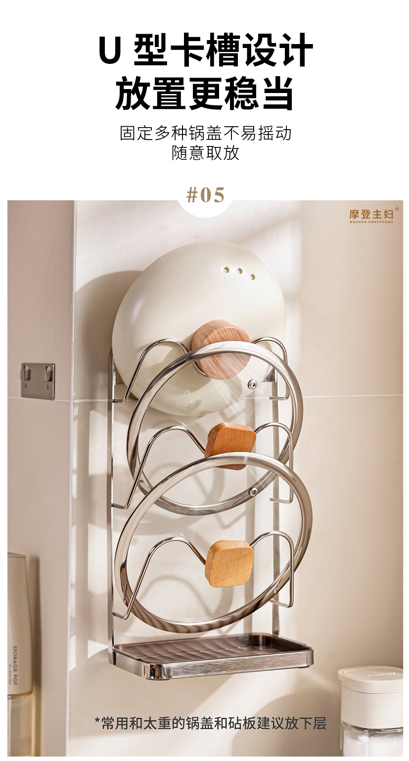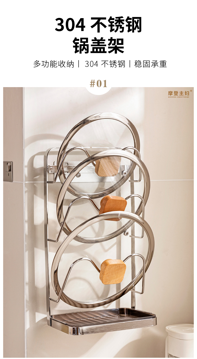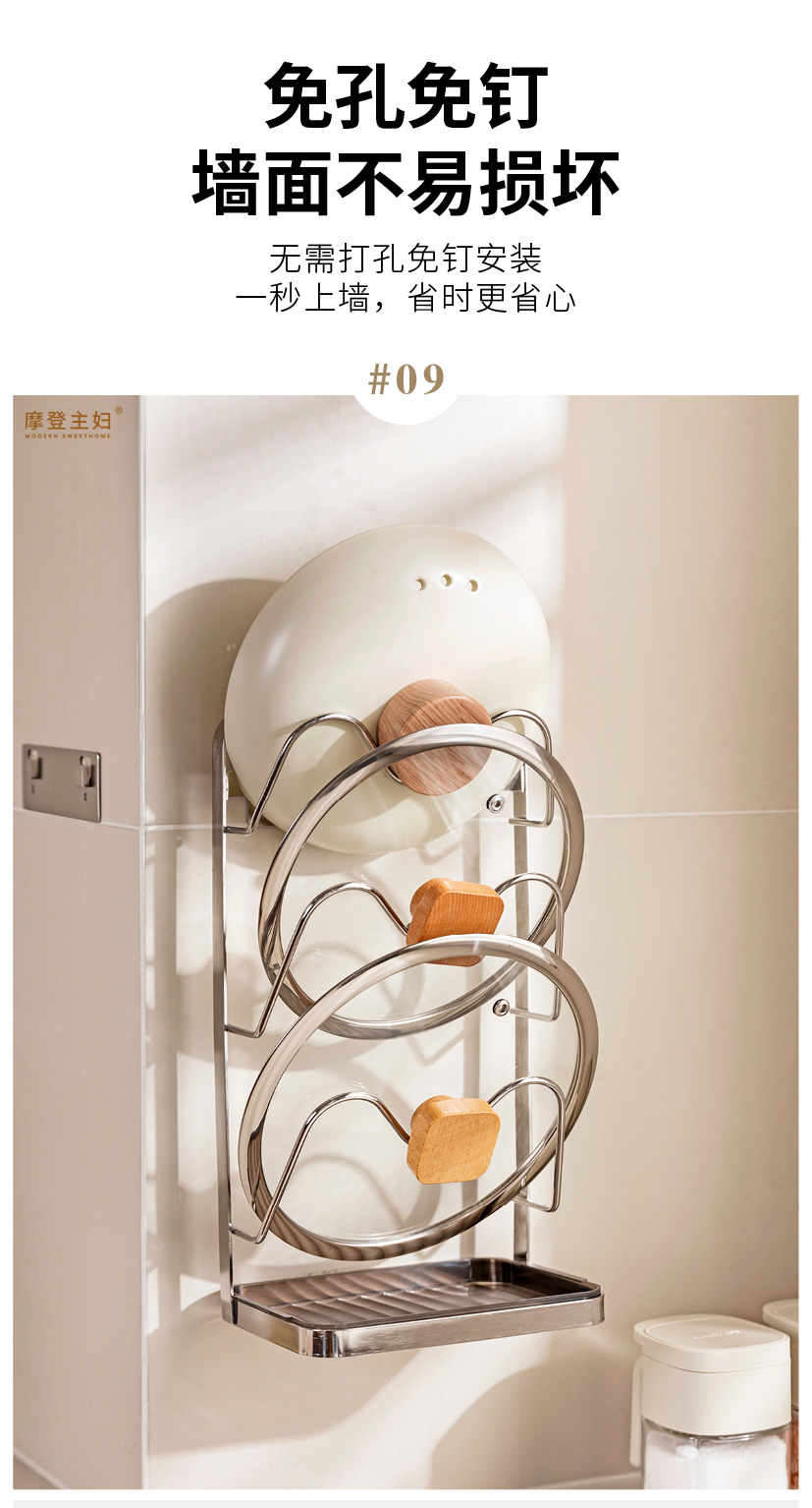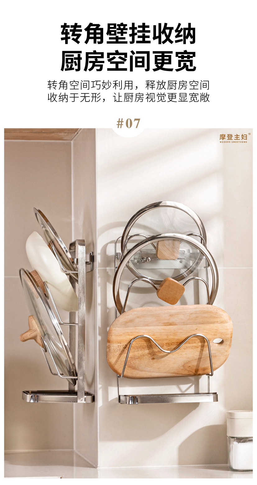摩登主妇304不锈钢锅盖架台面砧板架壁挂式置物架菜板锅盖放置器