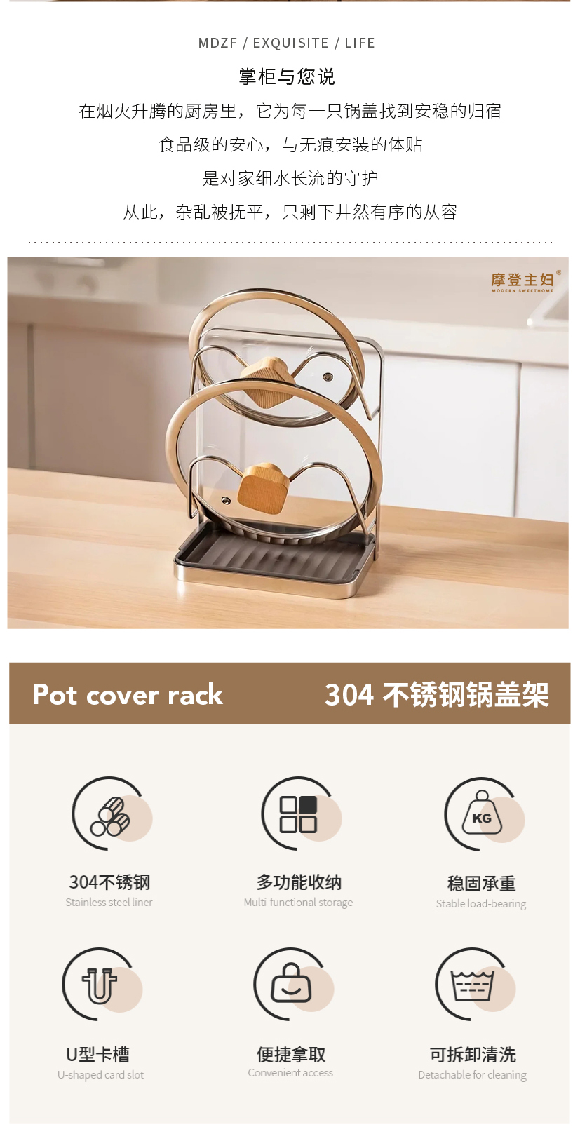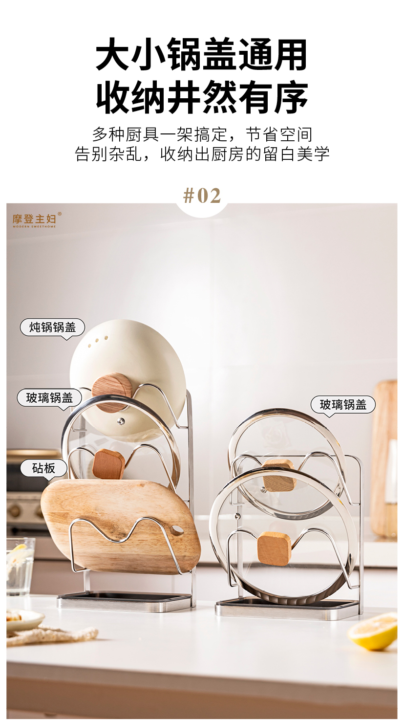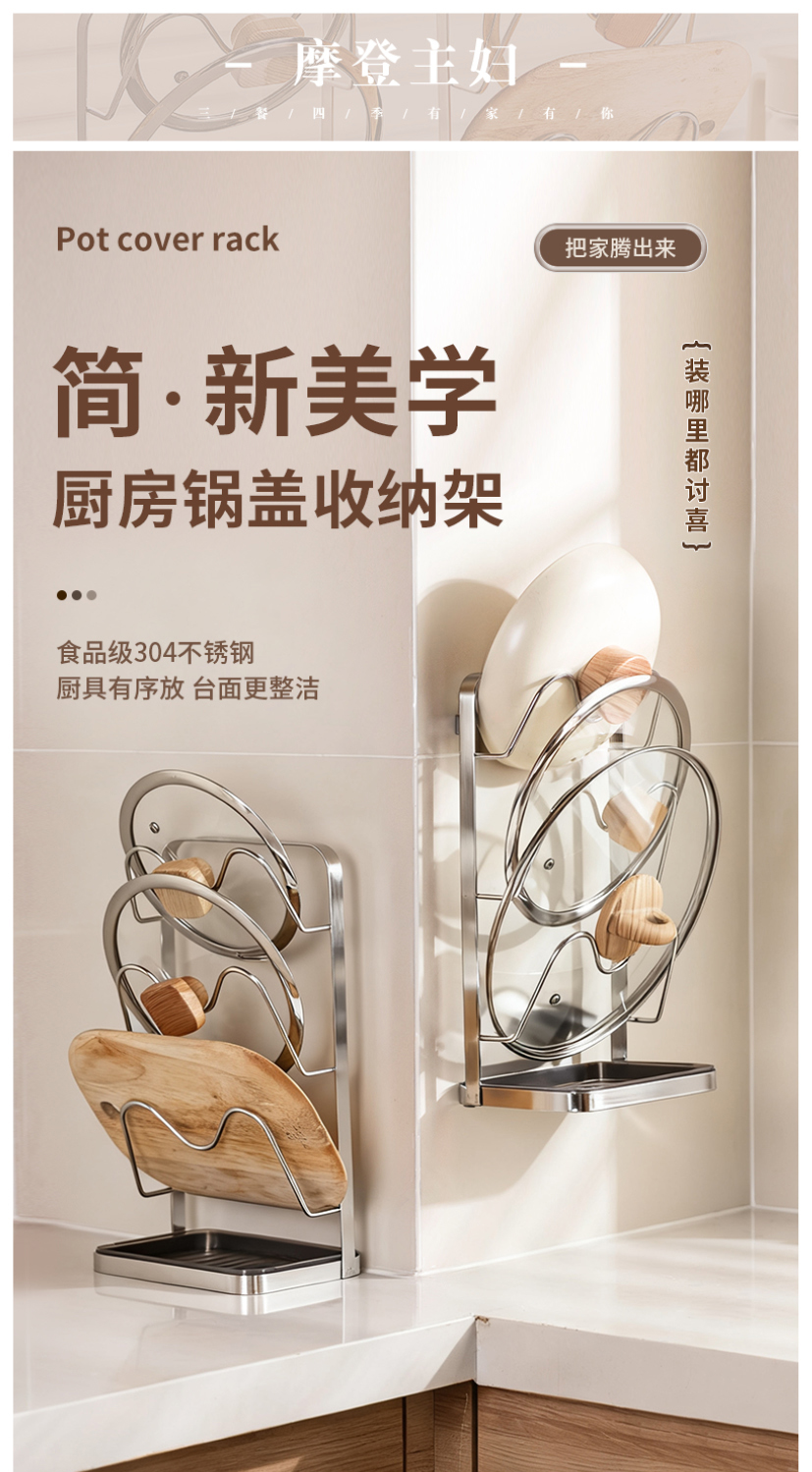 摩登主妇304不锈钢锅盖架台面砧板架壁挂式置物架菜板锅盖放置器