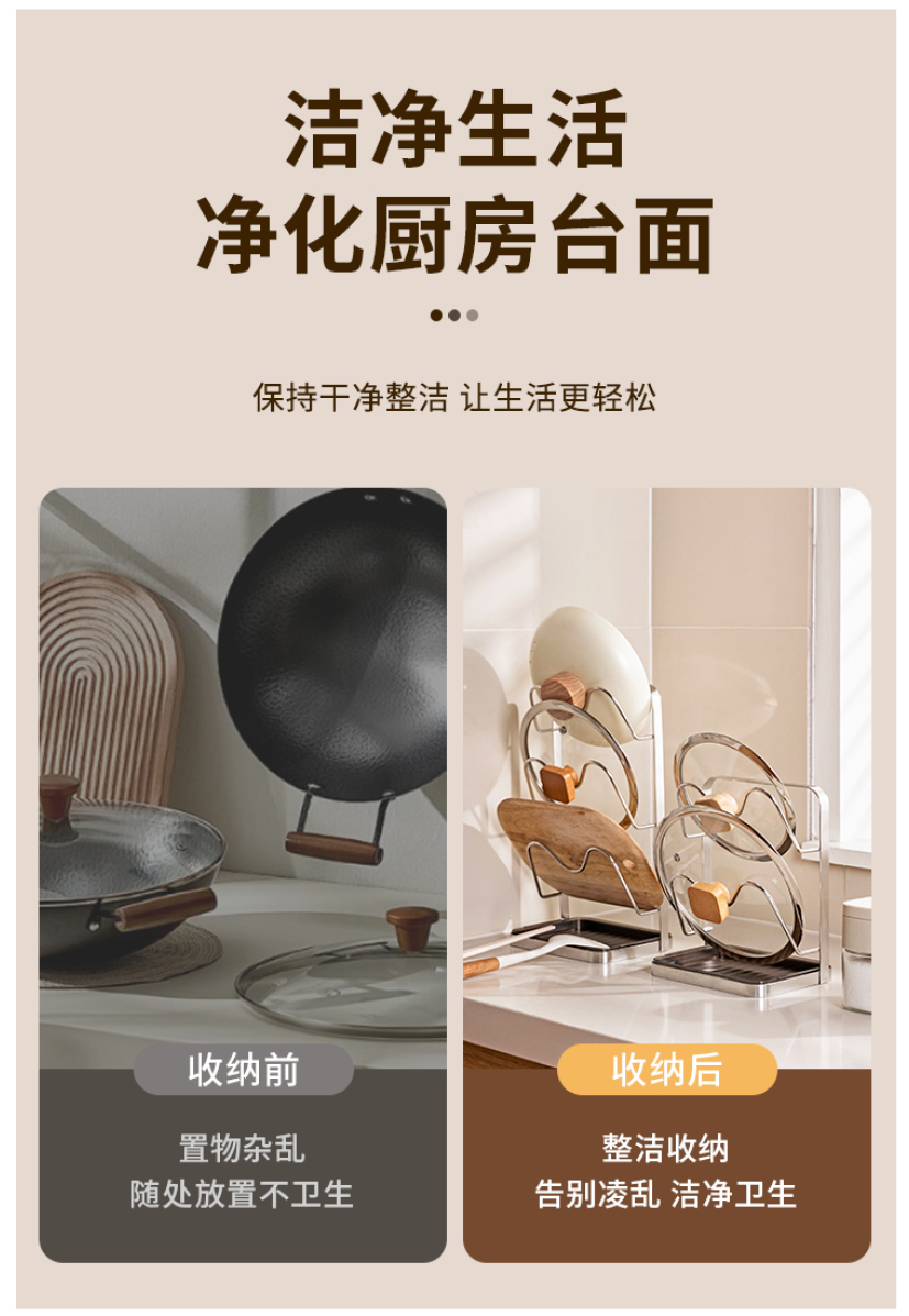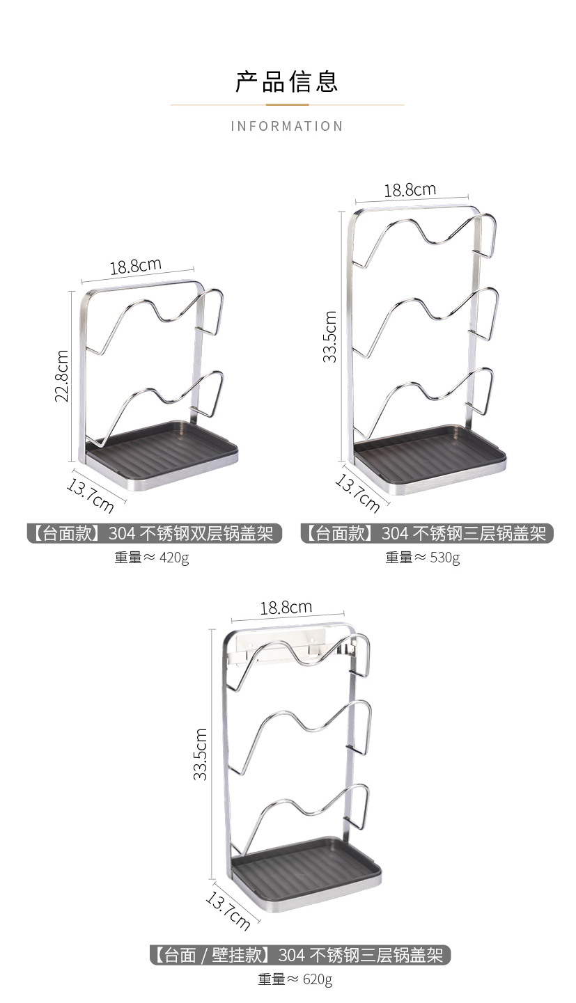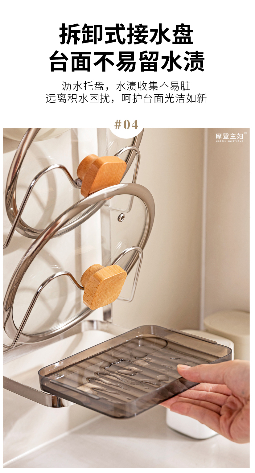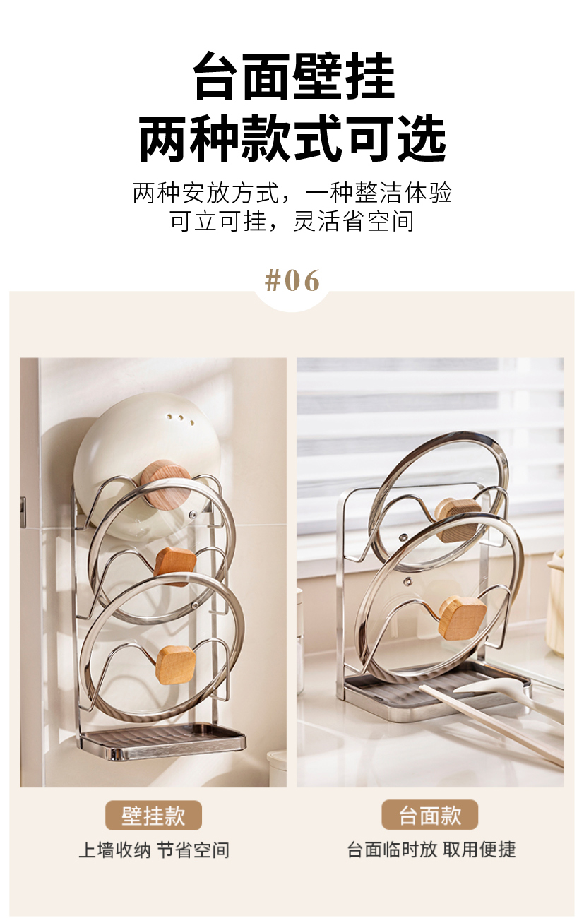 摩登主妇304不锈钢锅盖架台面砧板架壁挂式置物架菜板锅盖放置器