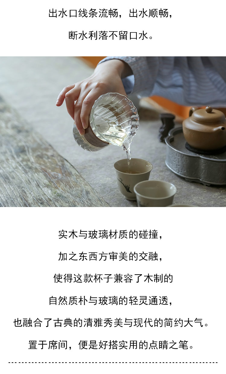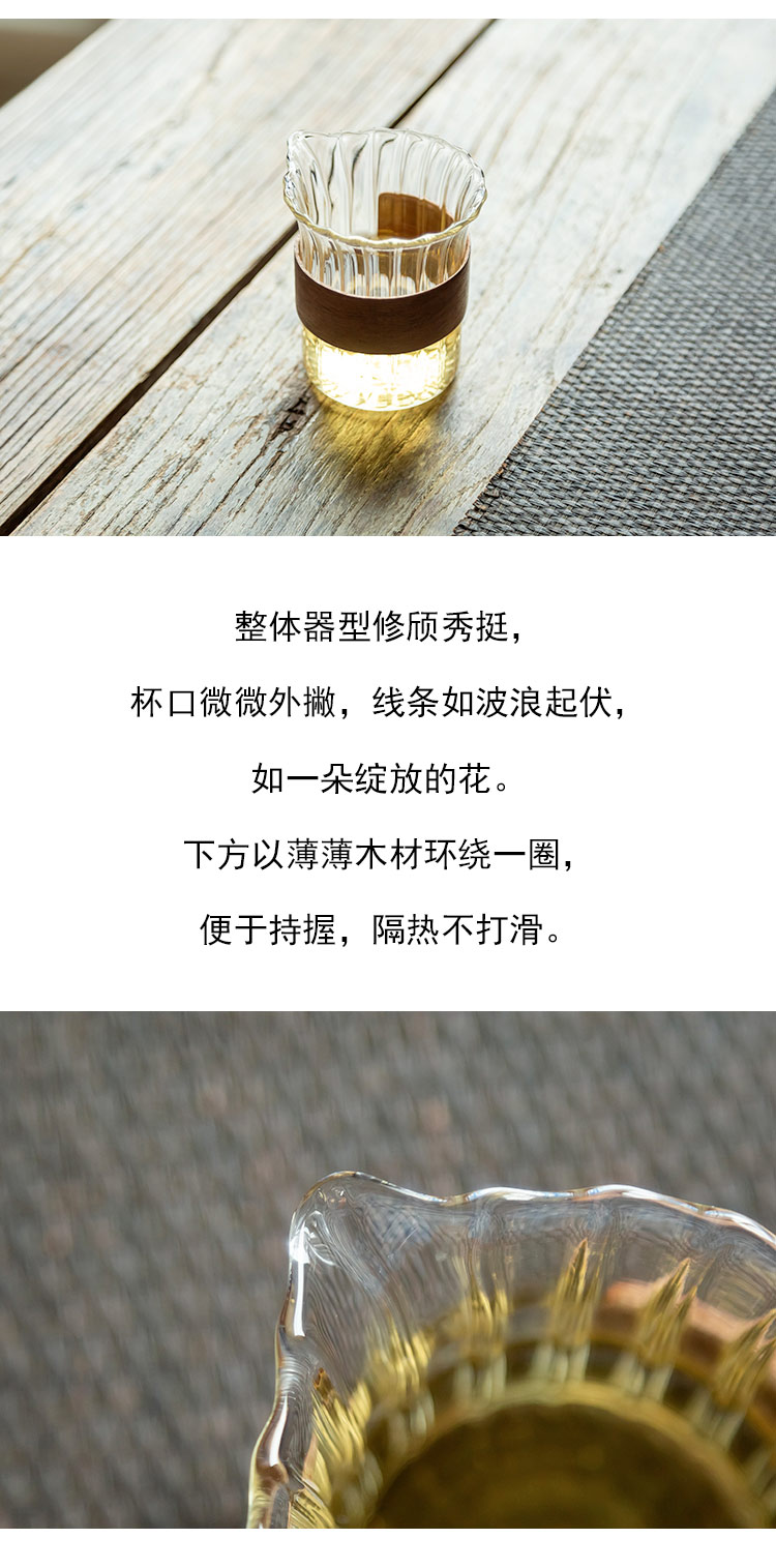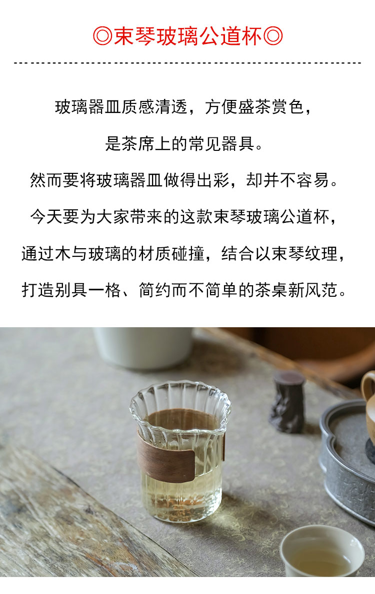 茶香记 竖纹木圈 束琴玻璃公道杯 分茶器 茶道零配 功夫茶具 匀杯