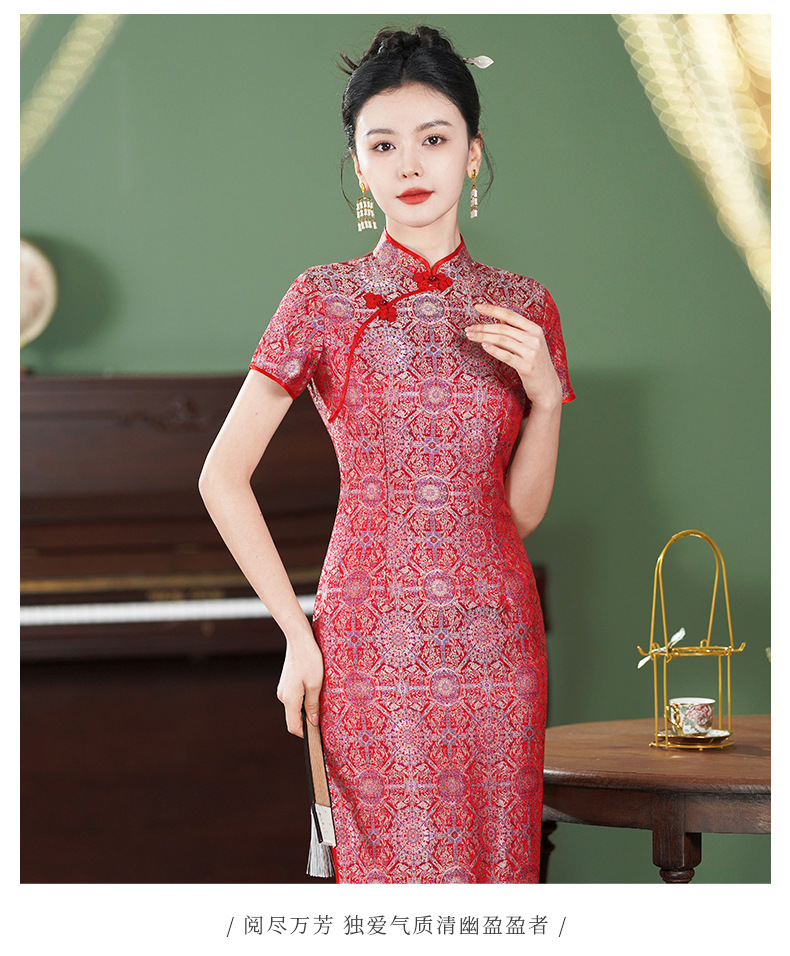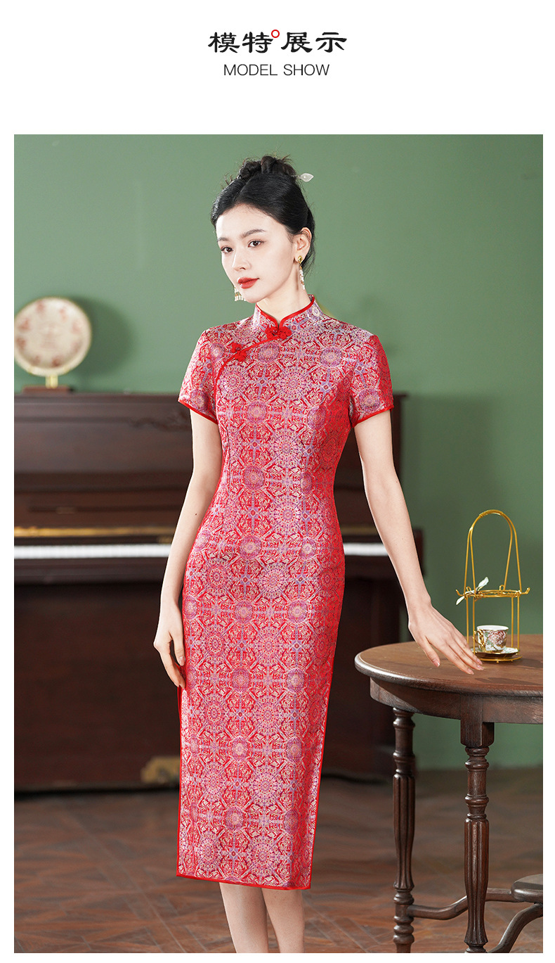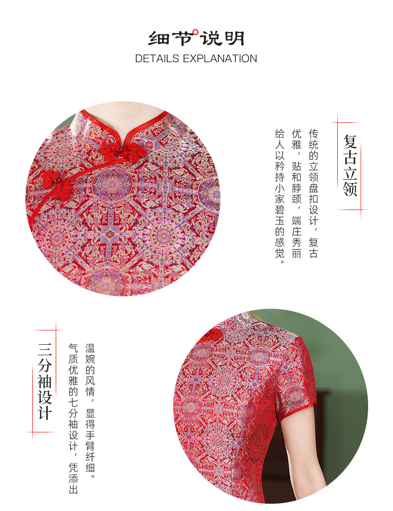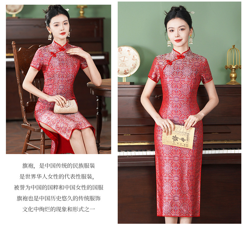 TZRY-6328新款爆款非遗宋锦八达晕复古斜襟旗袍裙日常宴会优雅旗袍