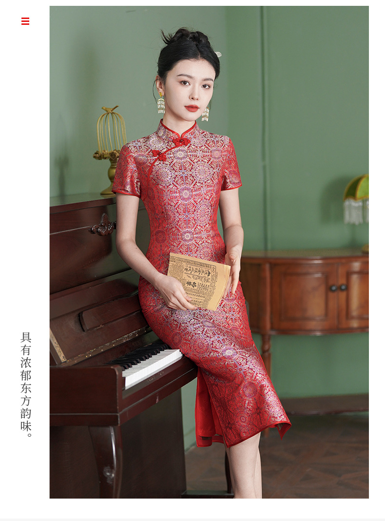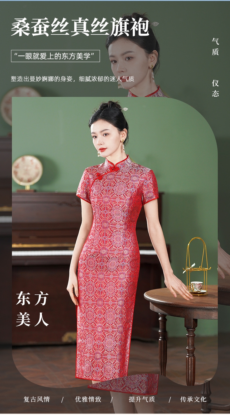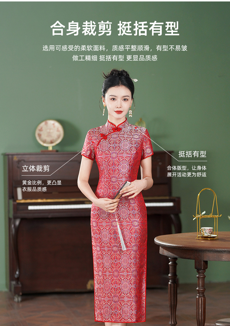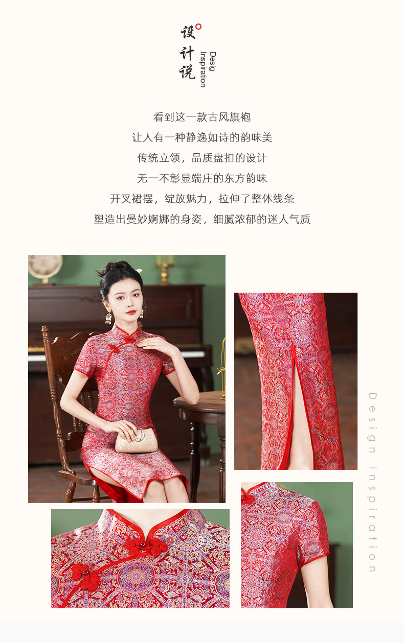 TZRY-6328新款爆款非遗宋锦八达晕复古斜襟旗袍裙日常宴会优雅旗袍