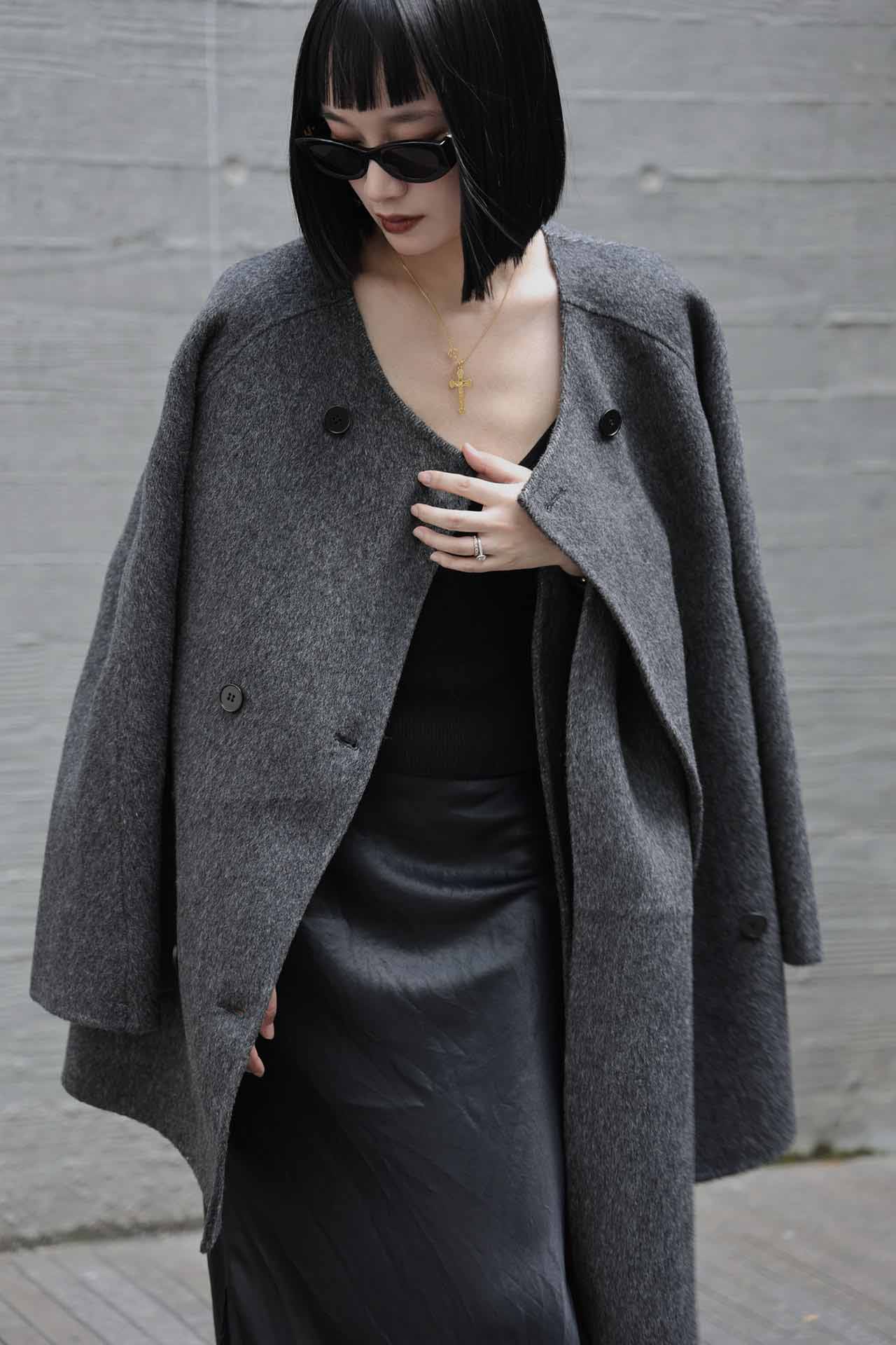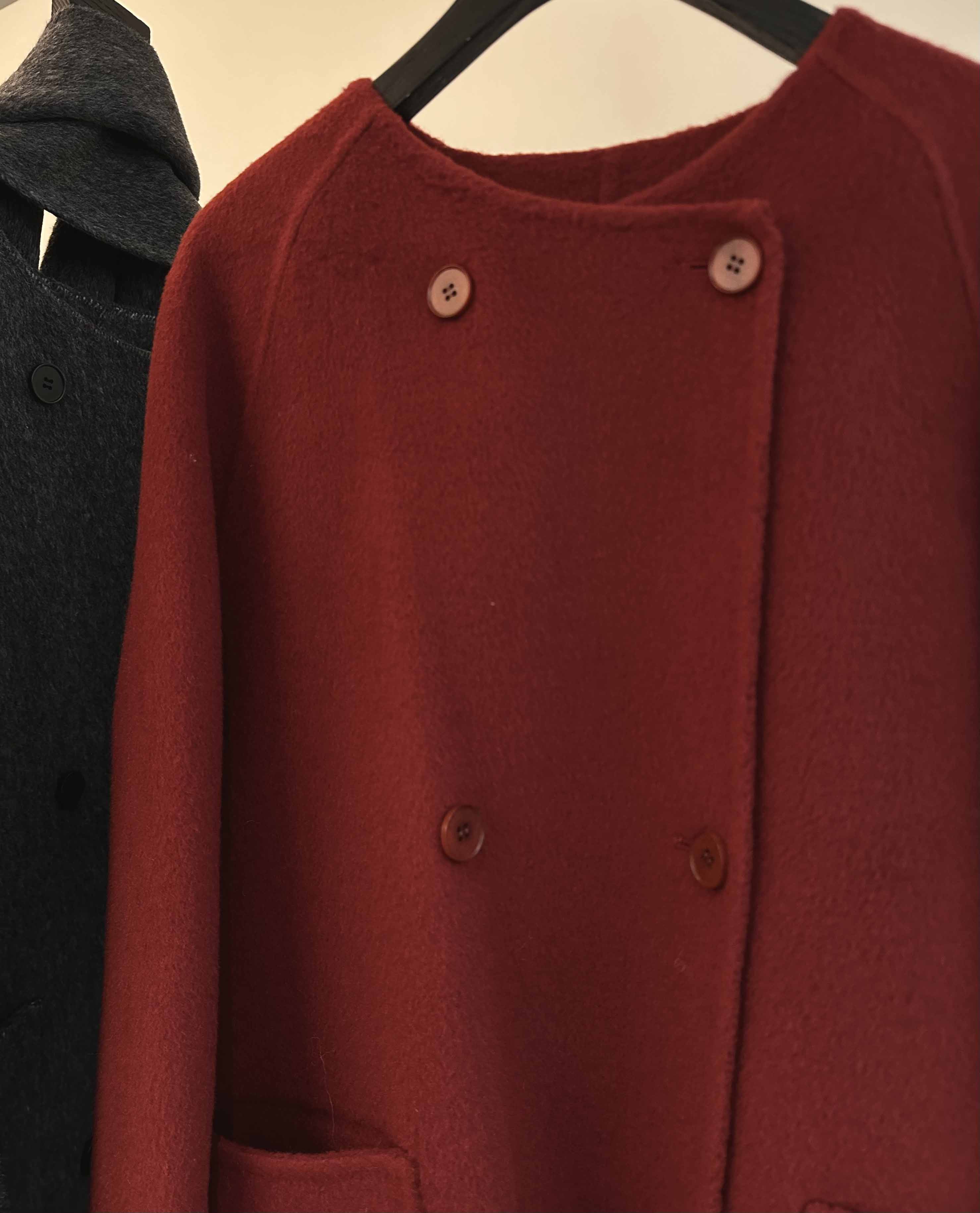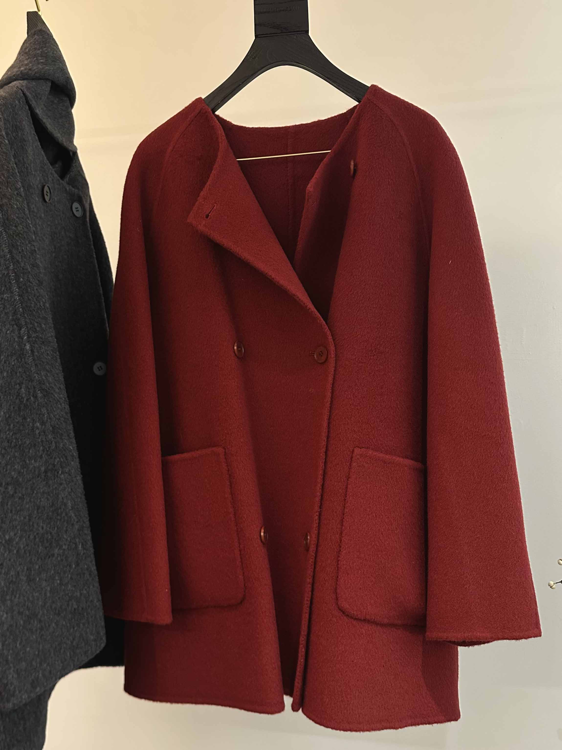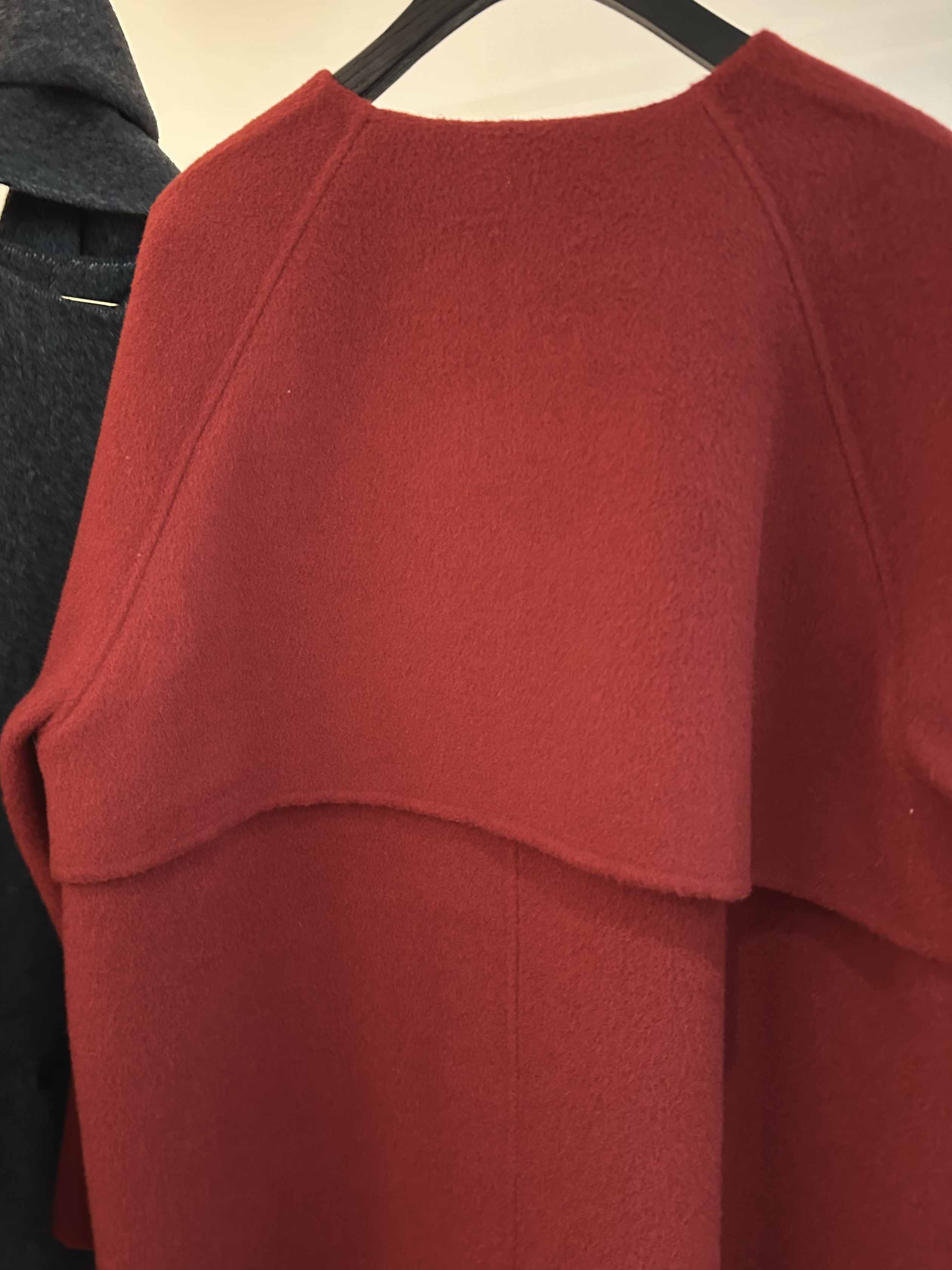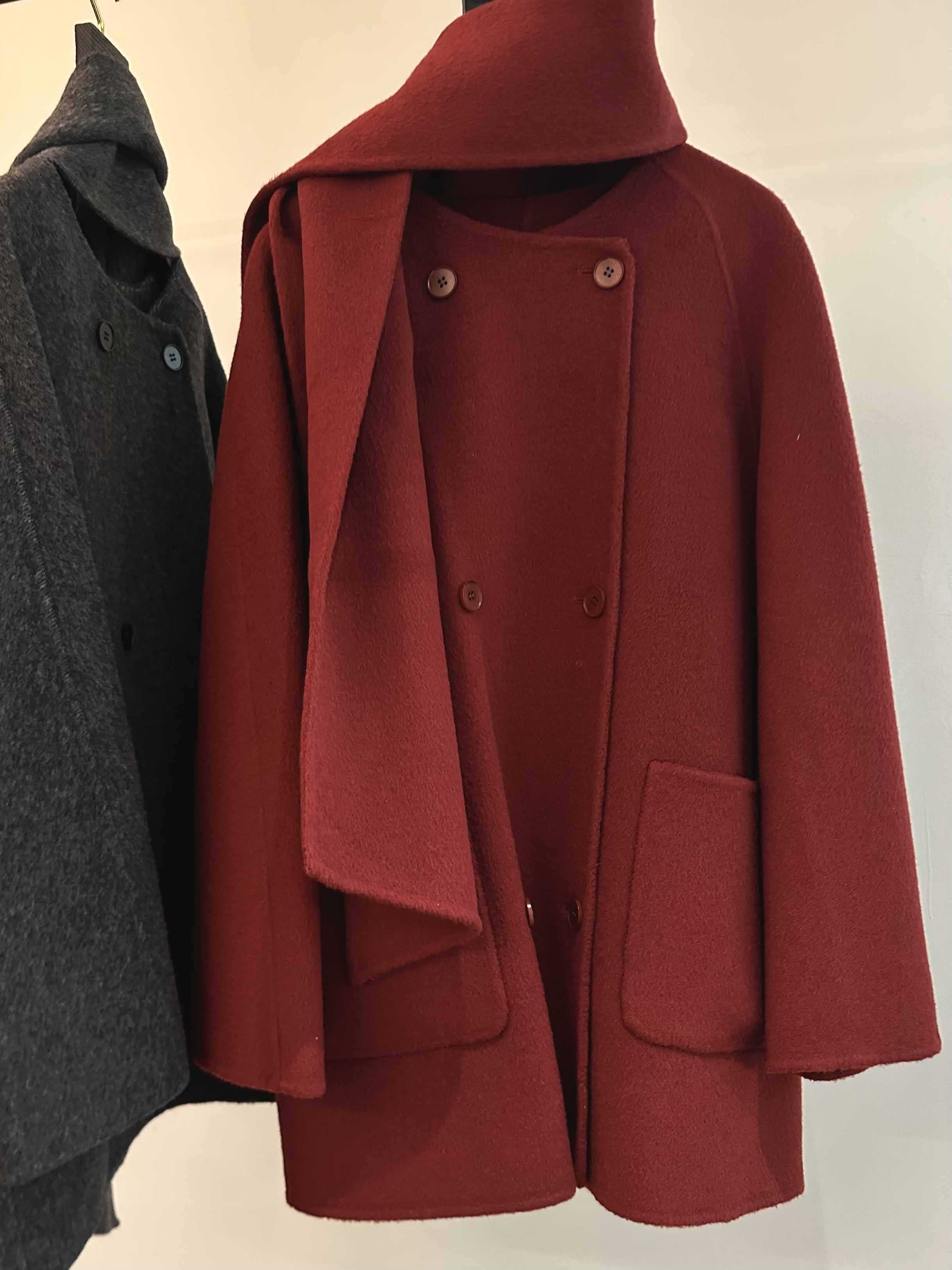 秋冬高级感韩版围巾款骆驼绒大衣· 格雷灰/气质红