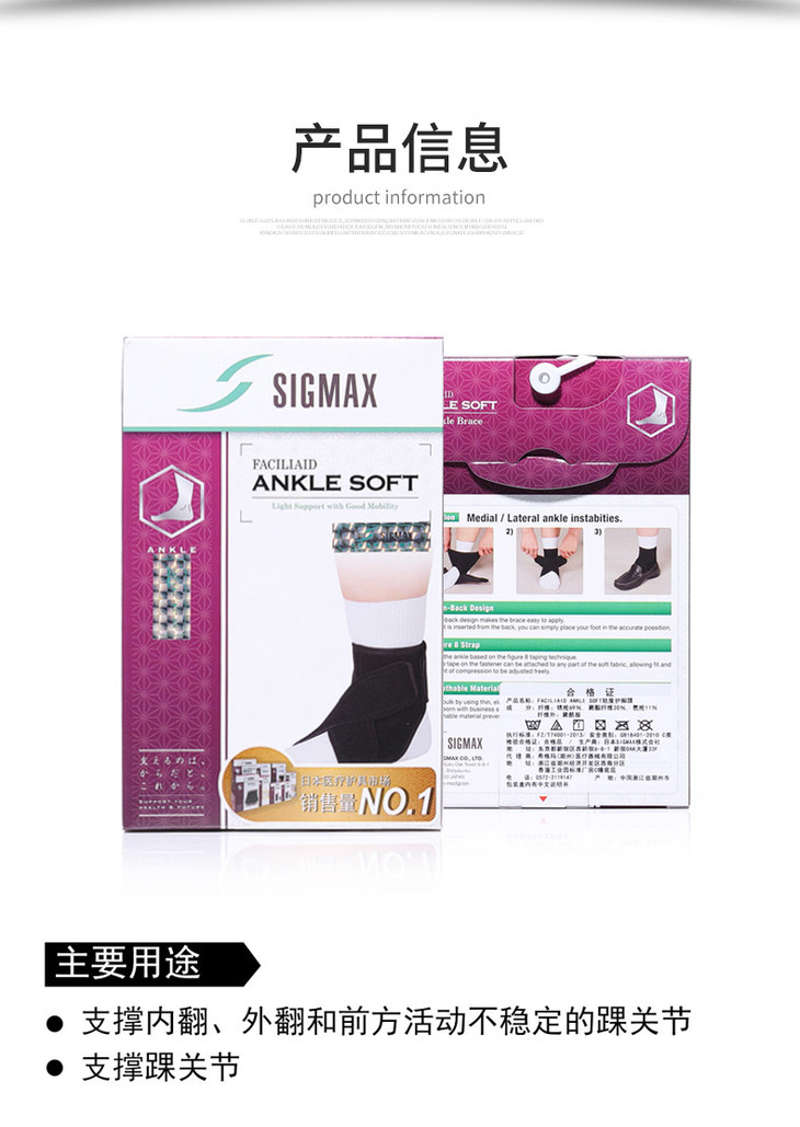 【日本进口护具品牌Sigmax】轻度护脚踝 FACILIAID ANKLE SOFT防护运动扭伤 脚腕护具