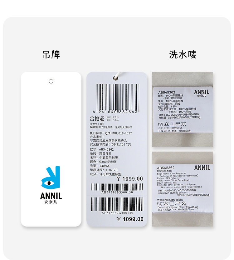 【实体店同款】男童中长款羽绒服冬季新款安奈儿童装AB545362