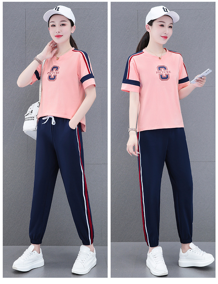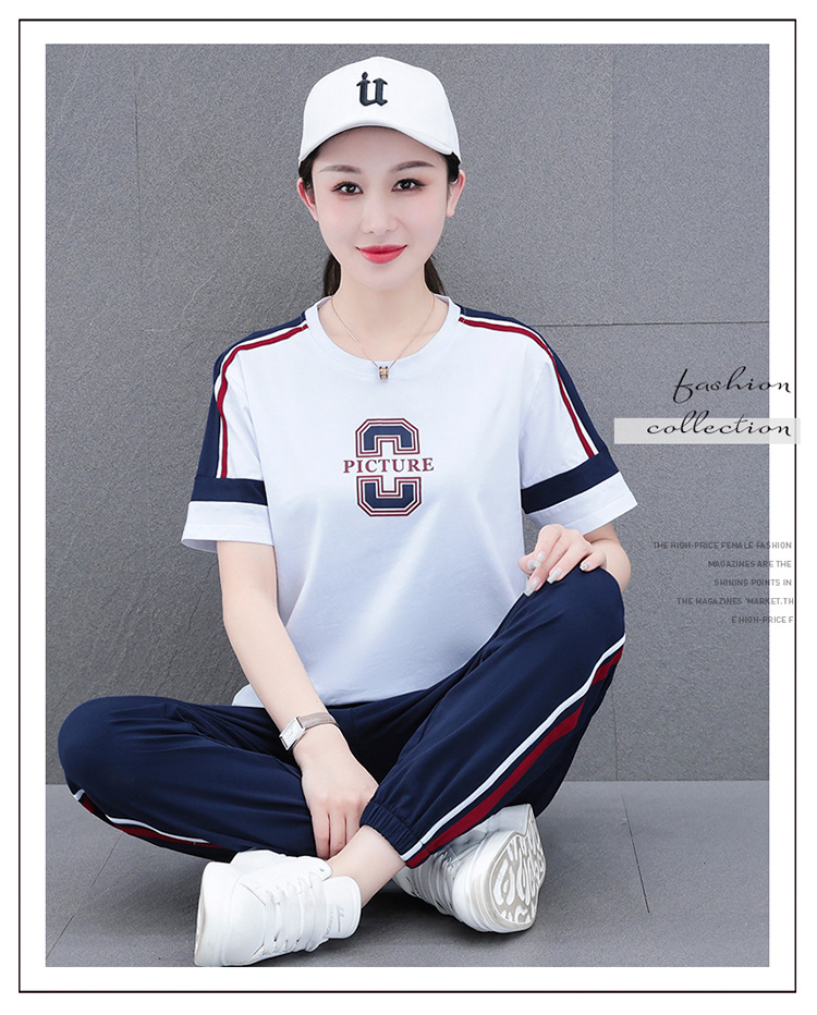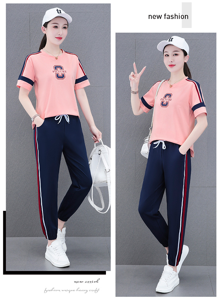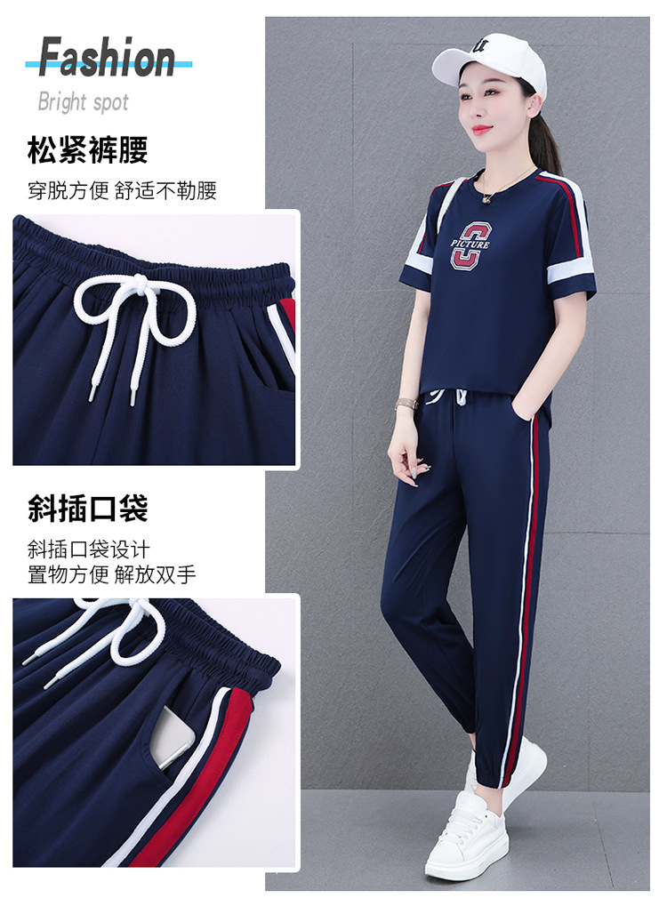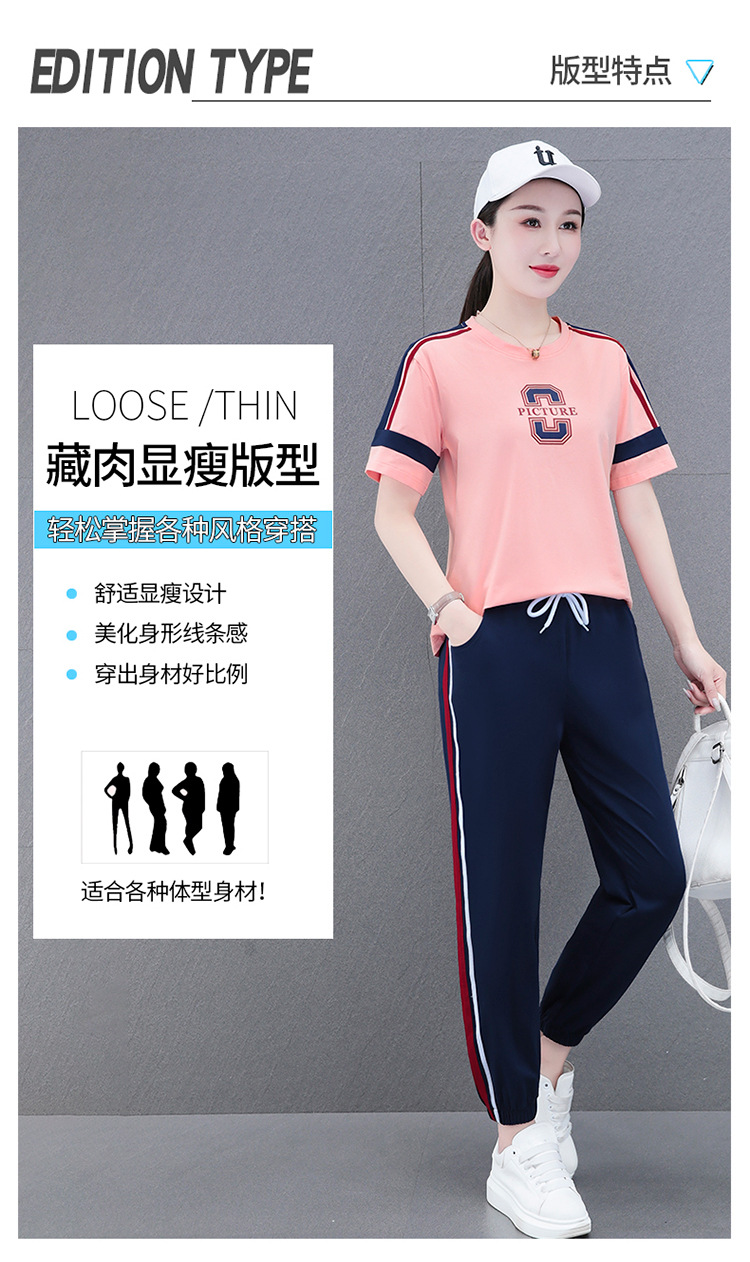 运动服套装女夏装新款,休闲时尚妈妈跑步服宽松短袖两件套TR-211