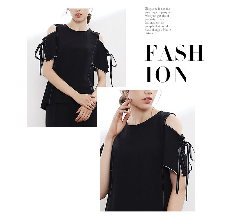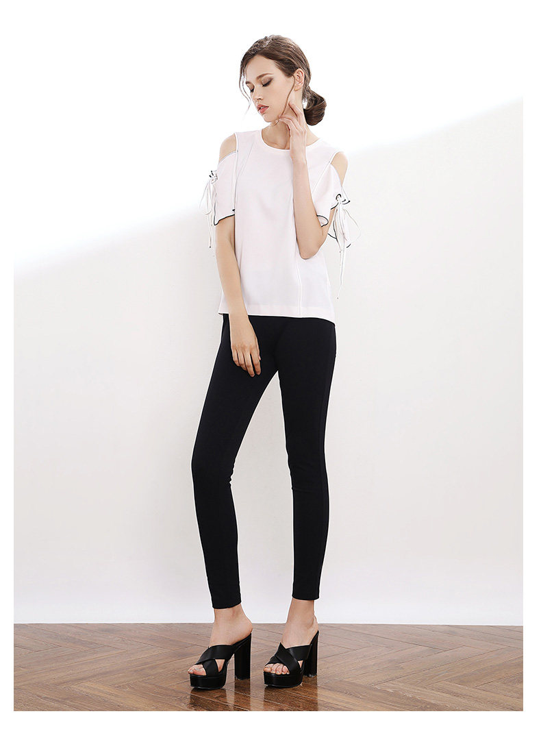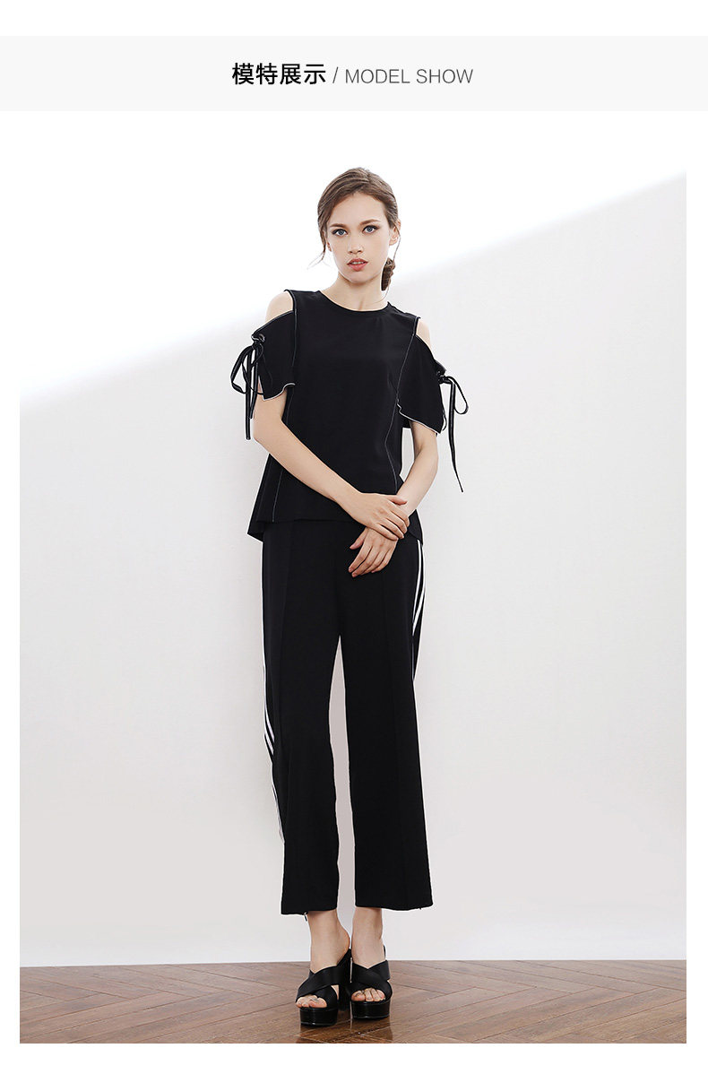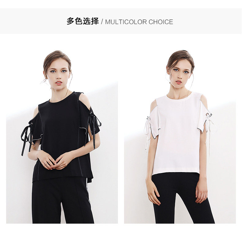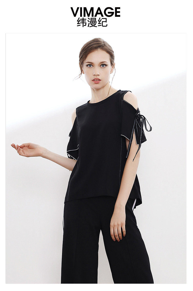 VIMAGE纬漫纪夏季新款女装时尚原创设计个性抽绳露肩修身上衣T恤V913542