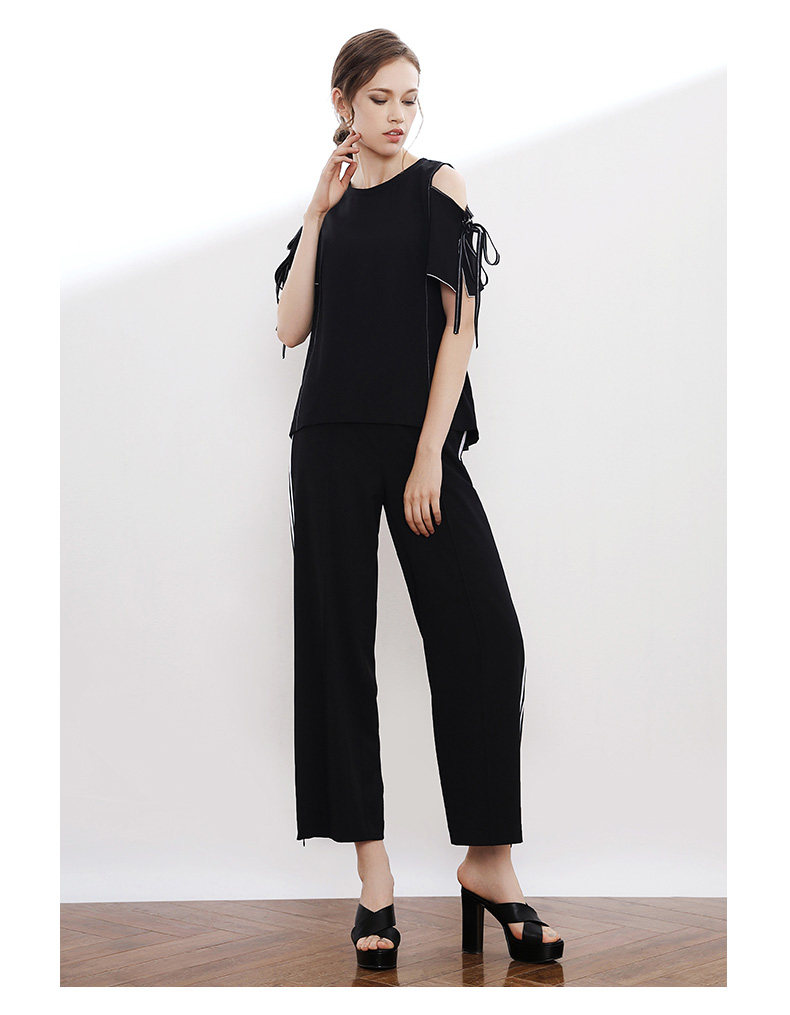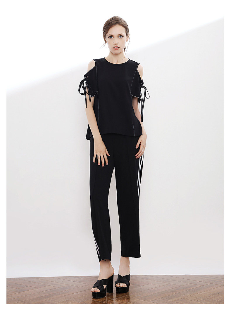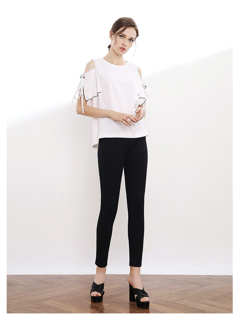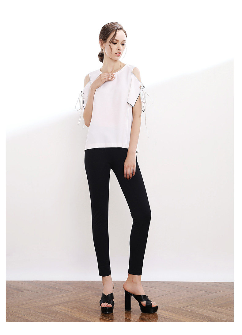 VIMAGE纬漫纪夏季新款女装时尚原创设计个性抽绳露肩修身上衣T恤V913542
