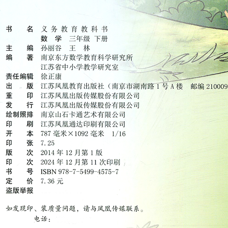 2025春 小学数学课本3下 苏教版 数学书 三年级下册 官网正版学生教材 义务教育教科书 S 江苏凤凰教育出版社旗舰店XG