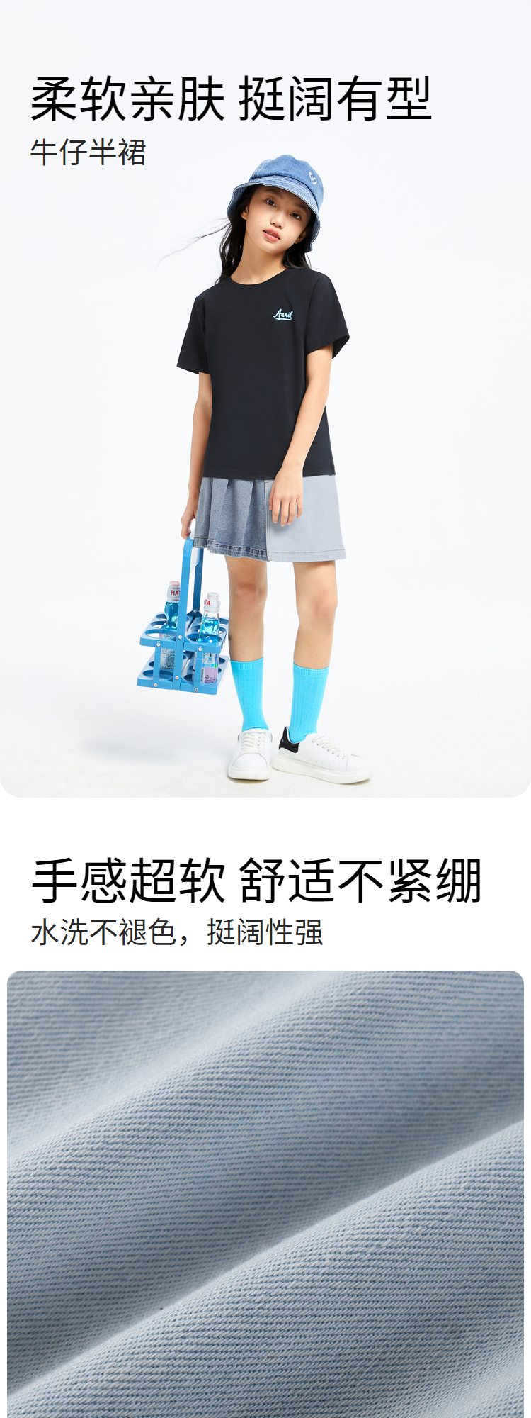 女童挺阔有型牛仔半裙裙子夏季新款安奈儿童装童装小程序专享EG423106