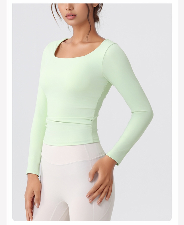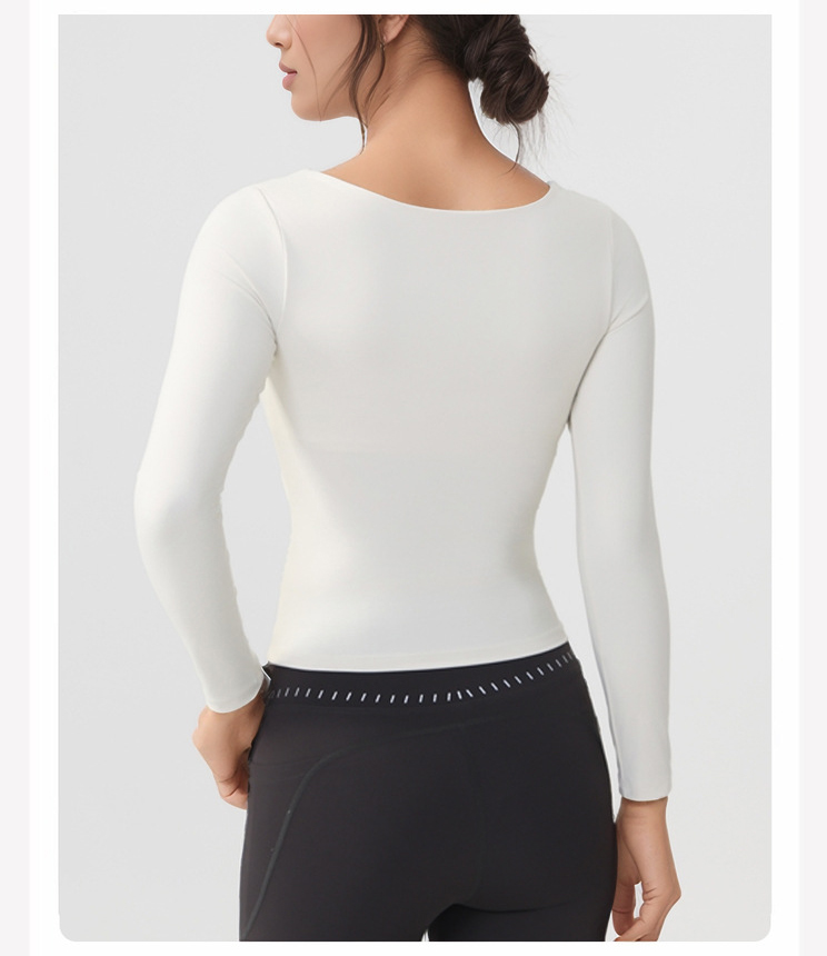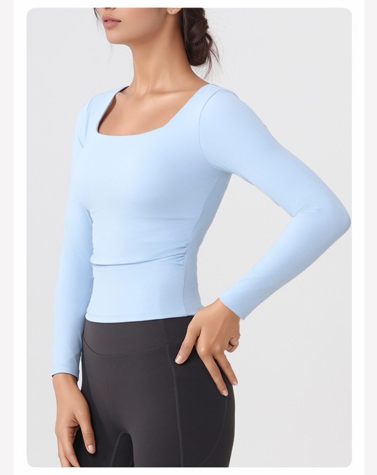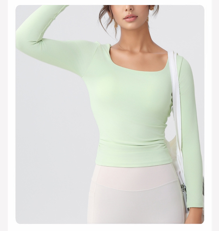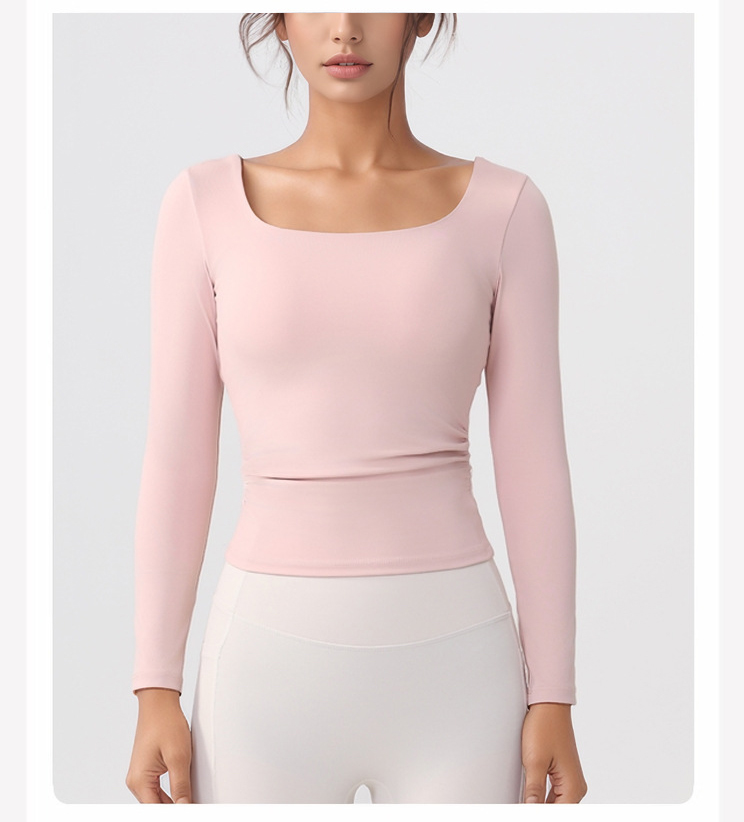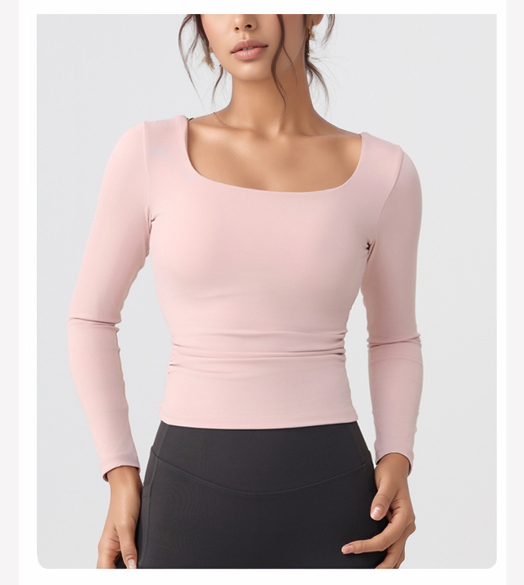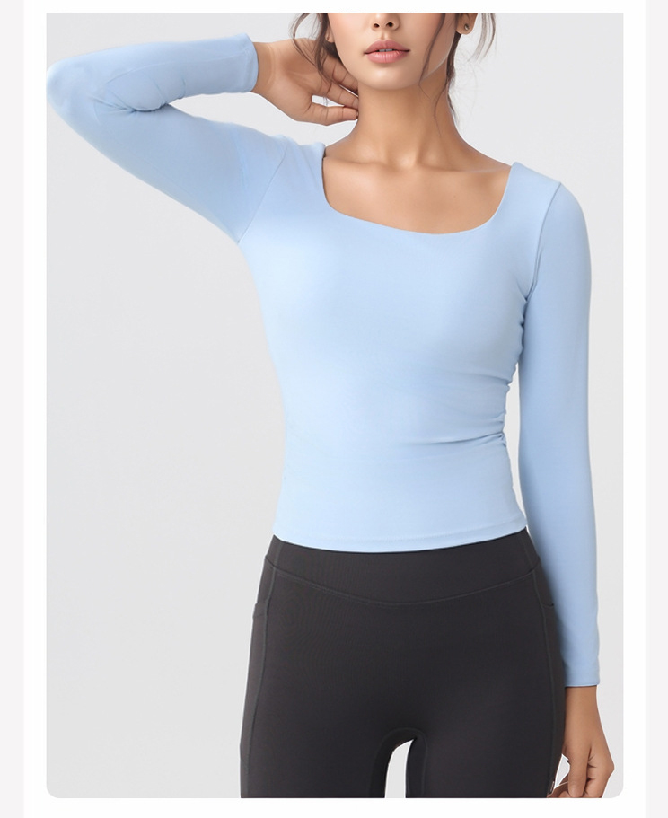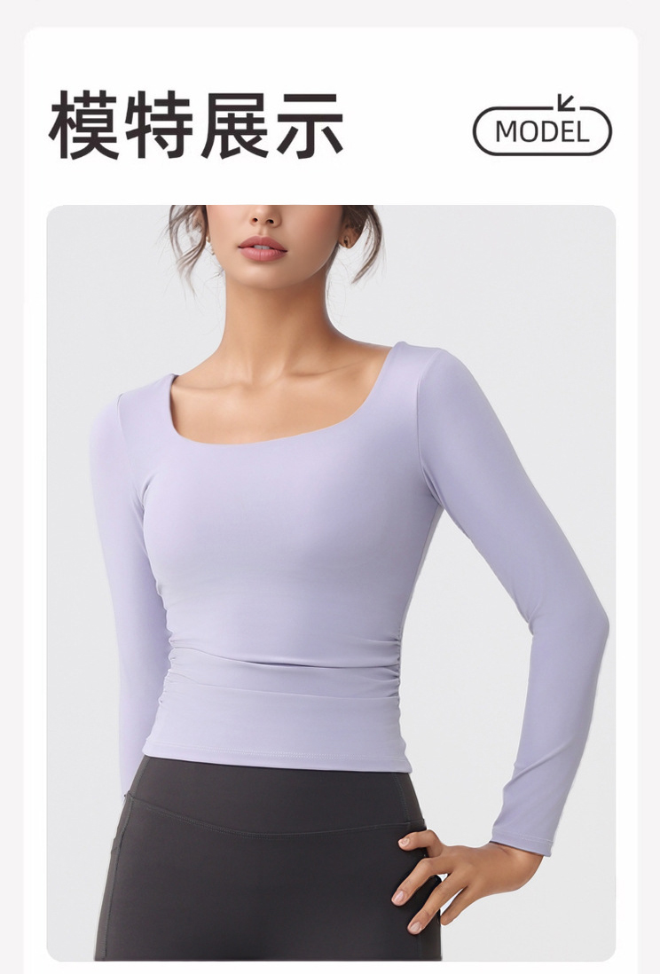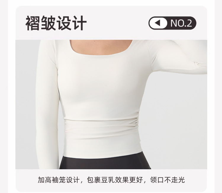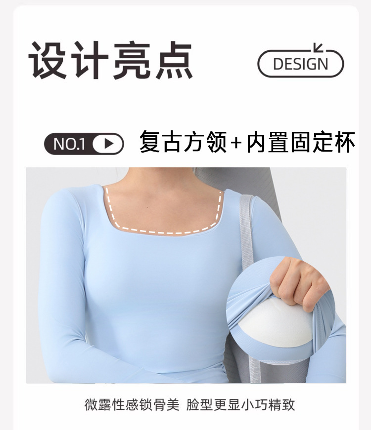 跃牌【美西西系列】lulu性感小方领紧身带胸垫裸感运动健身长袖T恤CX-501