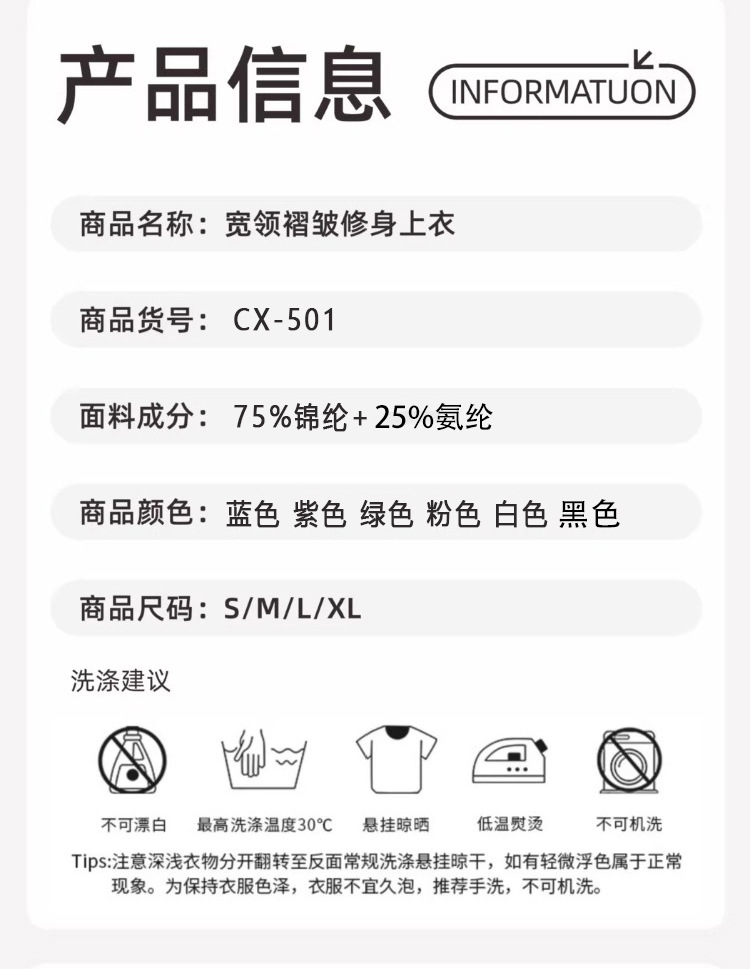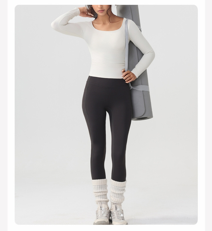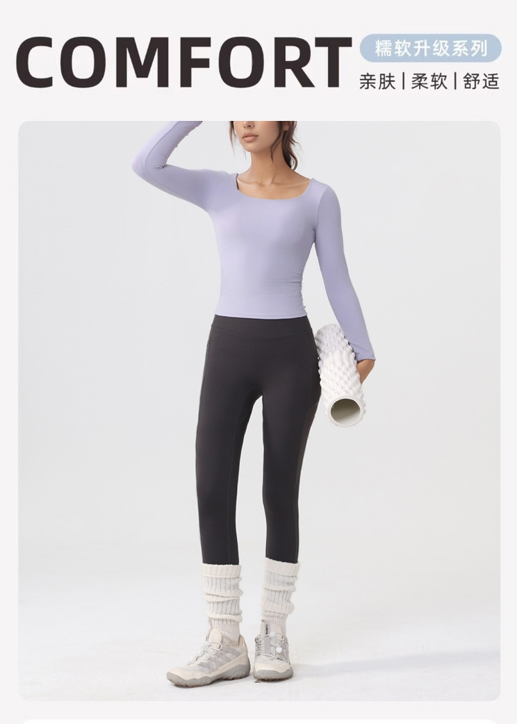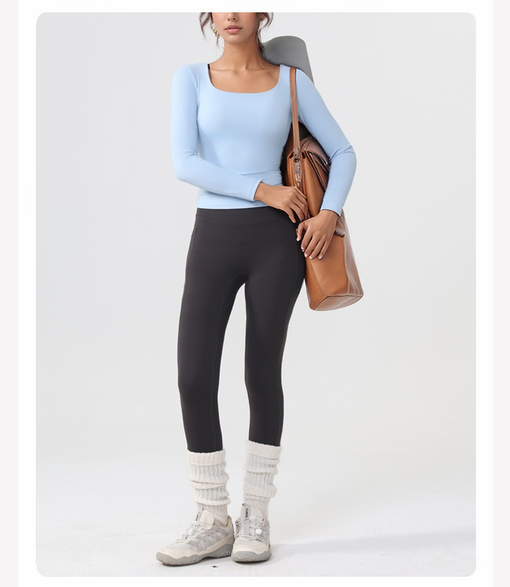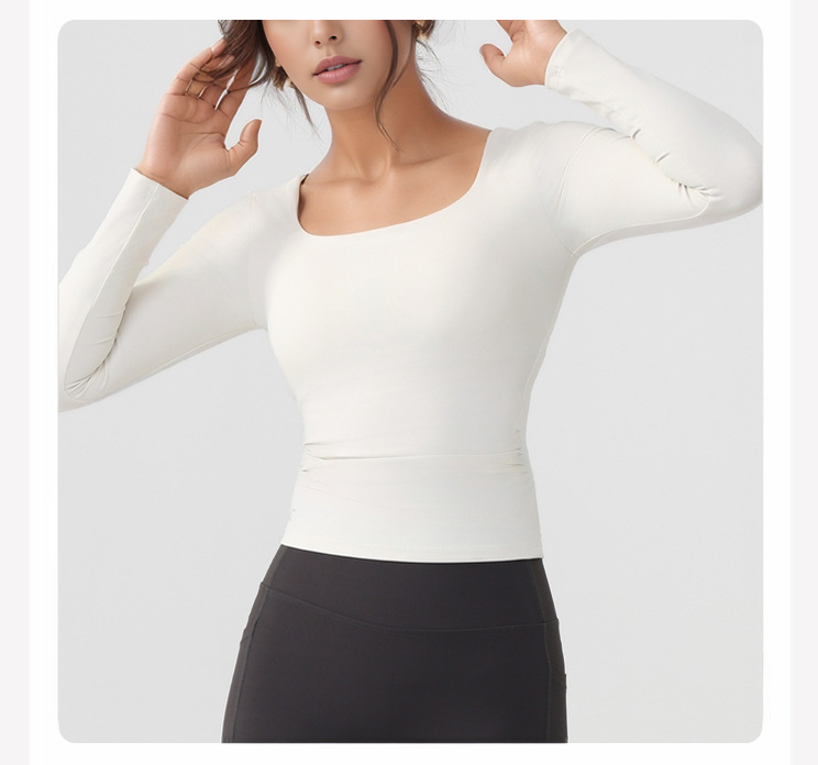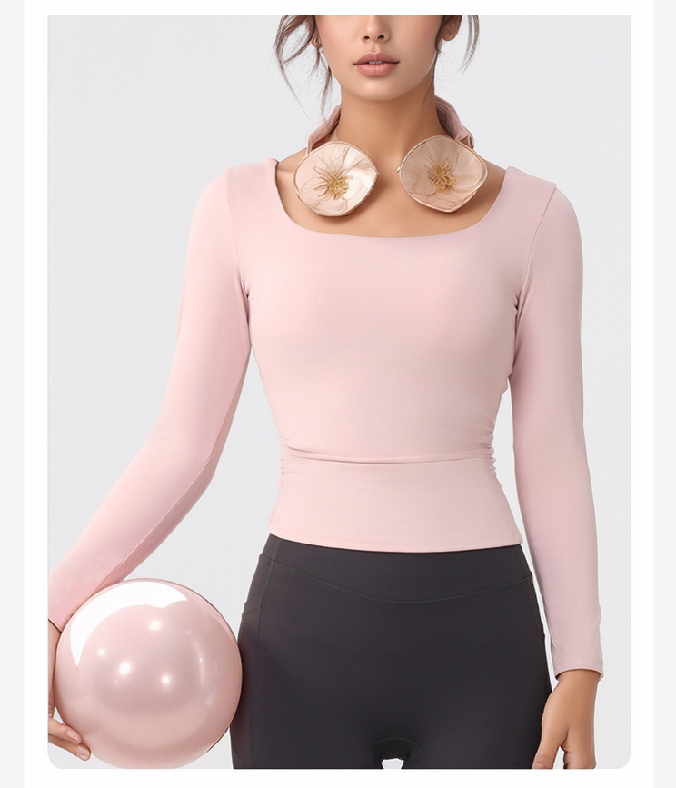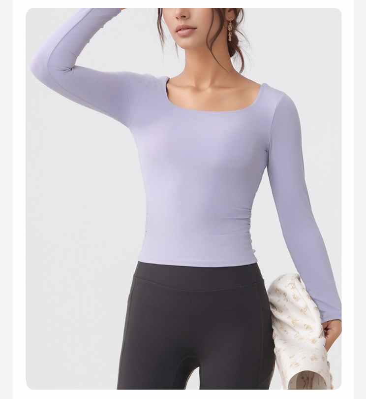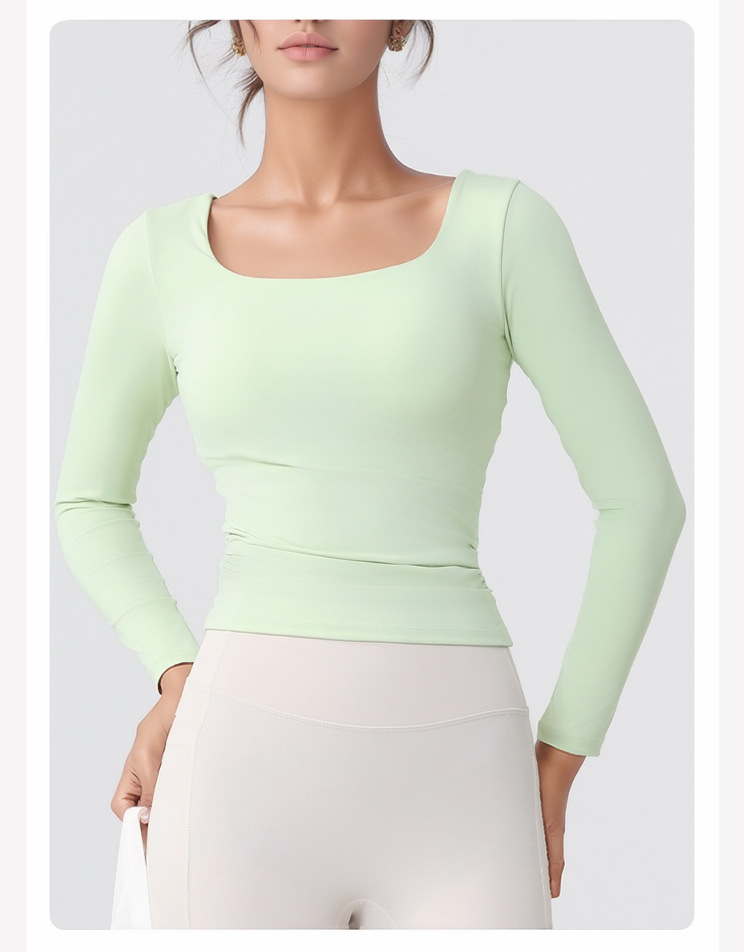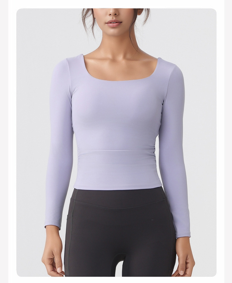跃牌【美西西系列】lulu性感小方领紧身带胸垫裸感运动健身长袖T恤CX-501