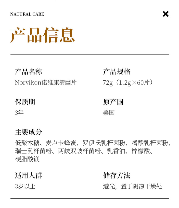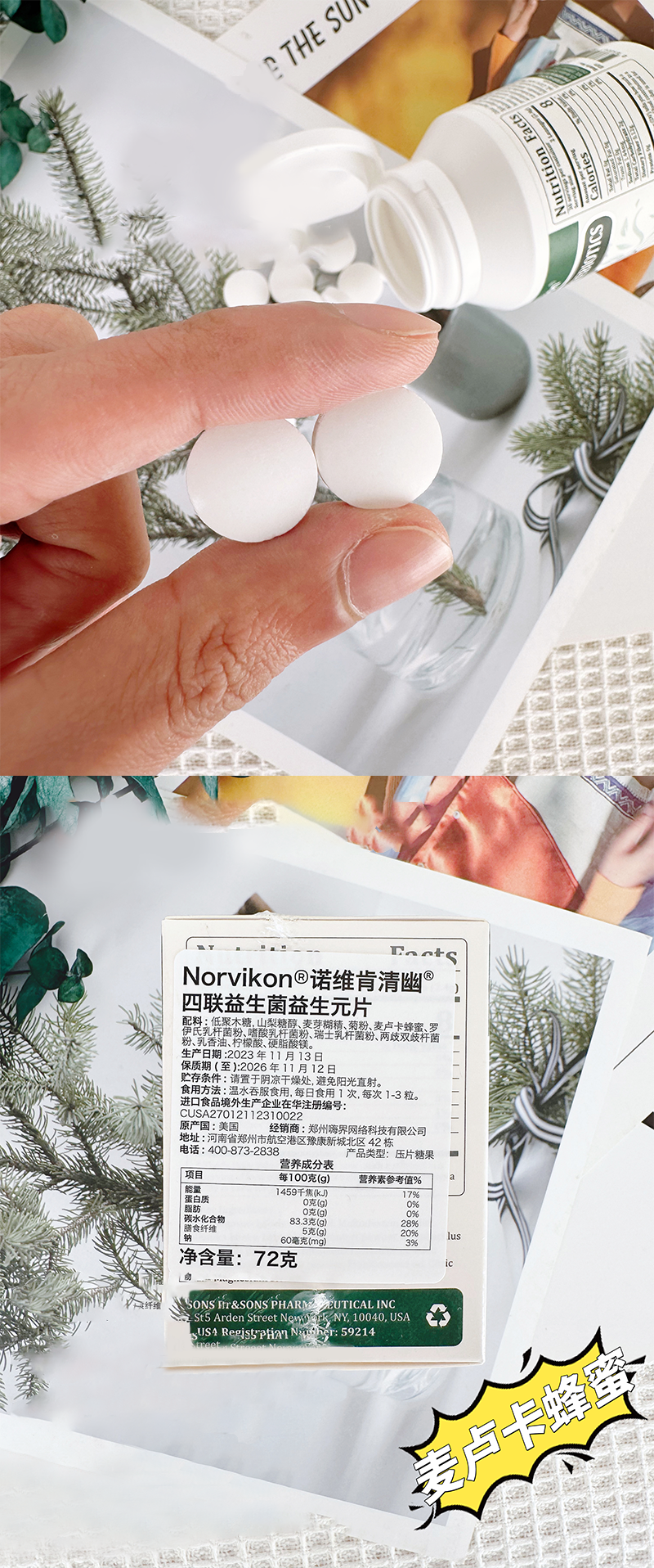 诺维肯四联益生菌益生元片72g(1.2g×60片) 1瓶