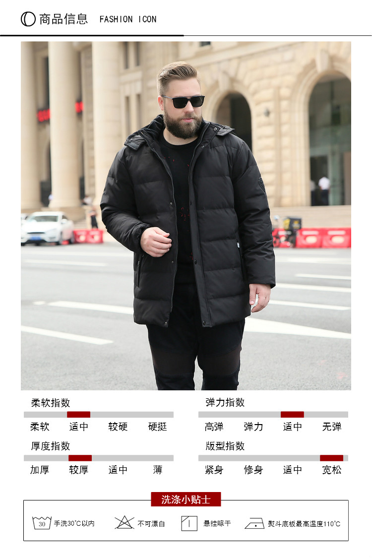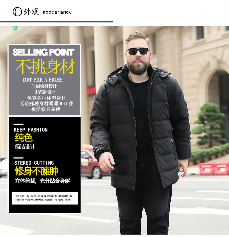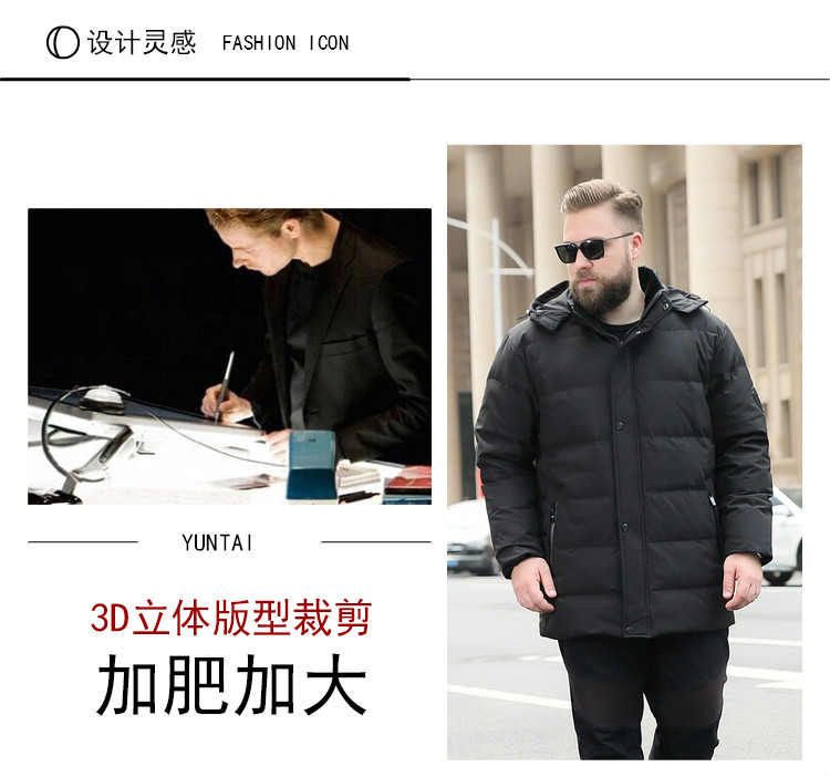 【超大码】【新款DJY】冬季新品中长款羽绒服男士白鸭绒加肥加大码加厚加绒保暖