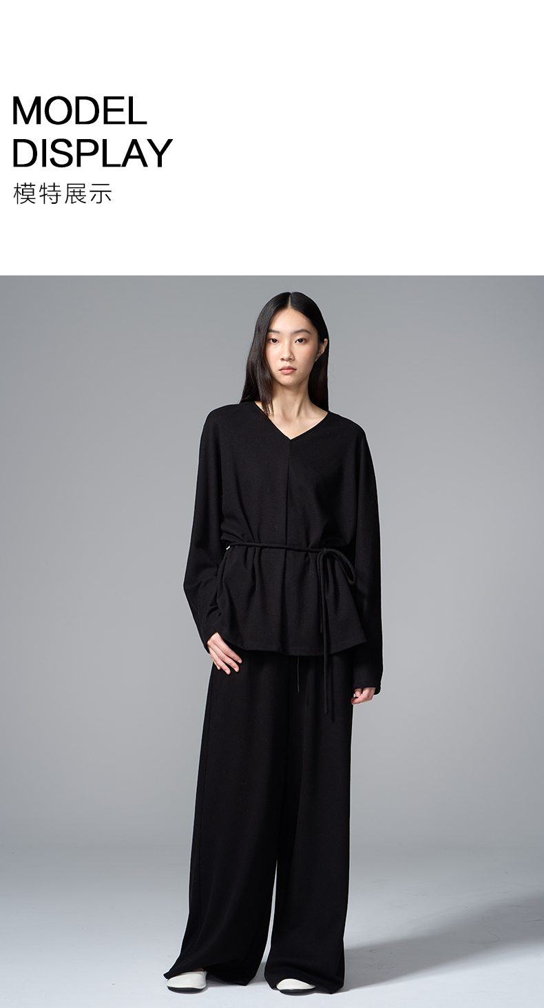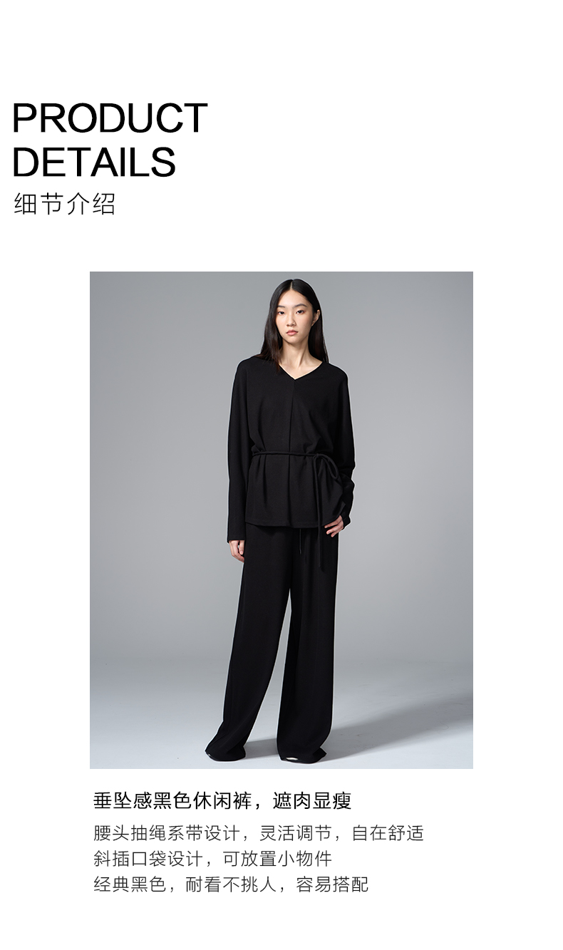 VIMAGE纬漫纪宽松时尚系带设计阔腿裤V2405115