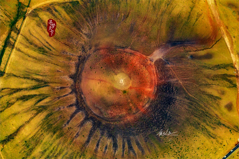 乌兰哈达火山锥+古力脑包玄武岩柱,航拍震撼