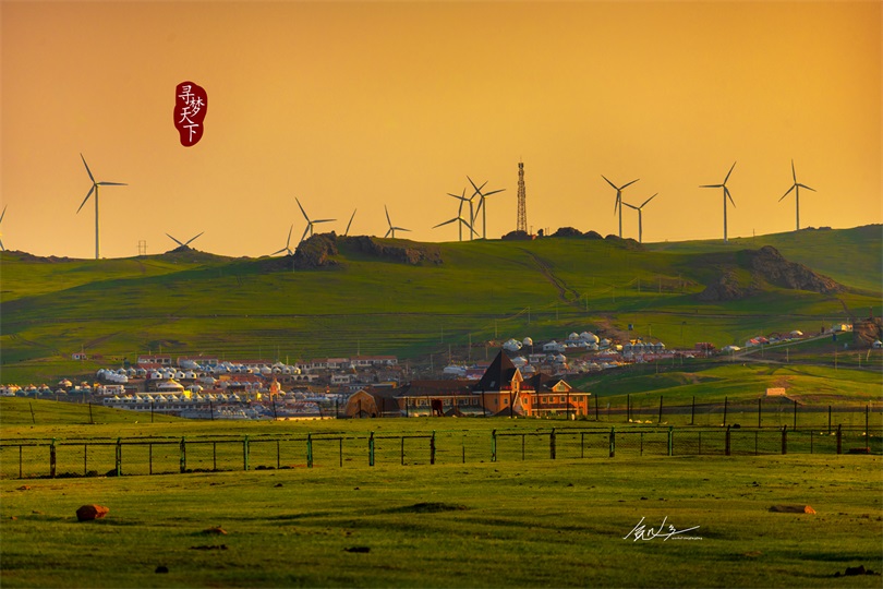 辉腾锡勒越野车狂野穿越,捕捉风车阵与野花牧马
