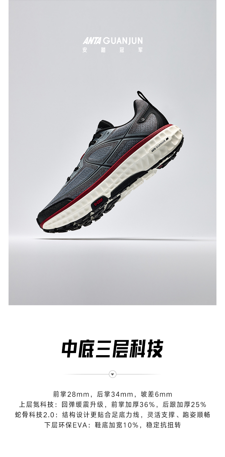 安踏全行2丨冠军户外徒步透气氮科技缓震抓跑滑地防磨缓震耐鞋122545534A