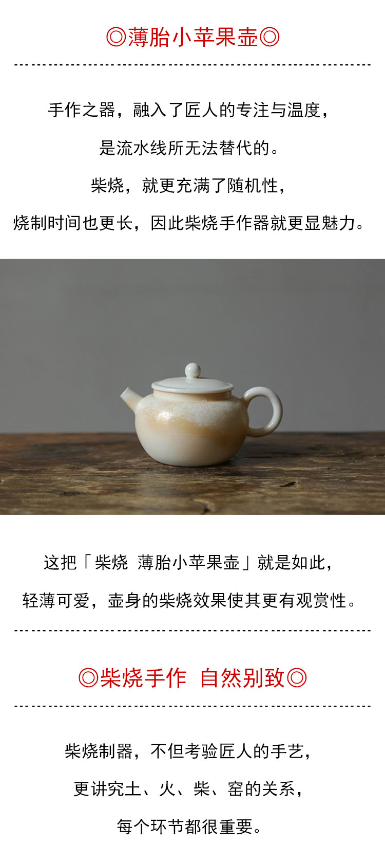 茶香记 朴聚堂柴烧薄胎小苹果壶90ml泡茶壶陶瓷自然别致圆融可爱