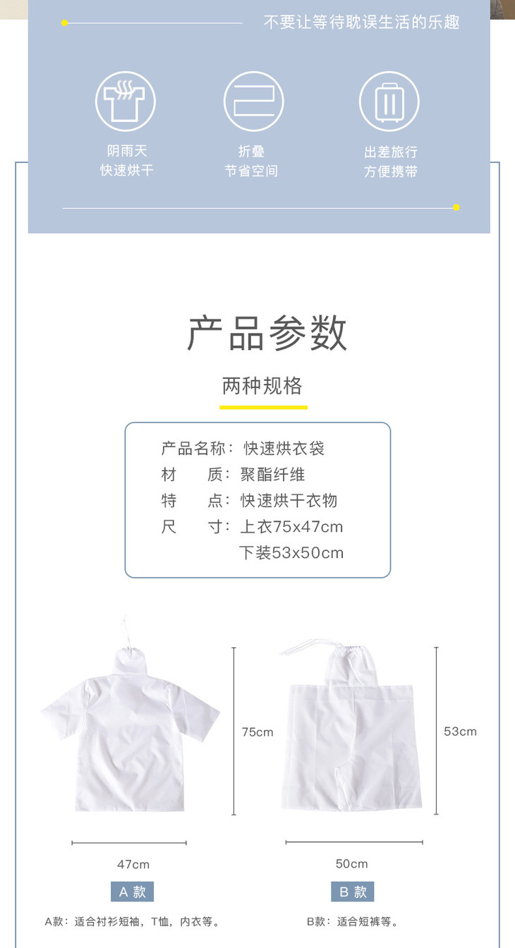 【衣物速干不用等】简单方便的快速烘衣袋!10分钟快速烘干衣物,立马就能穿,再也不怕下雨天!